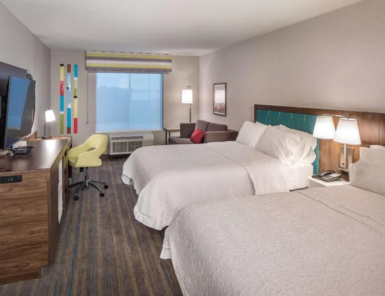 Comfortable Accommodations: Hampton Inn Hastings in Hastings offers clean, comfortable rooms with air-conditioning, free WiFi, and modern amenities. Guests enjoy free on-site parking, a sun terrace, and an indoor swimming pool. Convenient Facilities: The hotel features a lounge, fitness room, and outdoor seating area. Additional services include a 24-hour front desk, concierge, daily housekeeping, and luggage storage. Free WiFi is available throughout the property. Delicious Breakfast: A continental breakfast is served daily, highly appreciated by guests for its quality and variety. Prime Location: Located 25 mi from Central Nebraska Regional Airport, the hotel provides easy access to local attractions. Highly rated for room cleanliness, attentive staff, and excellent service support. Air conditioning, a tea and coffee maker and a safe deposit box are provided in this family room. The unit offers 3 beds.