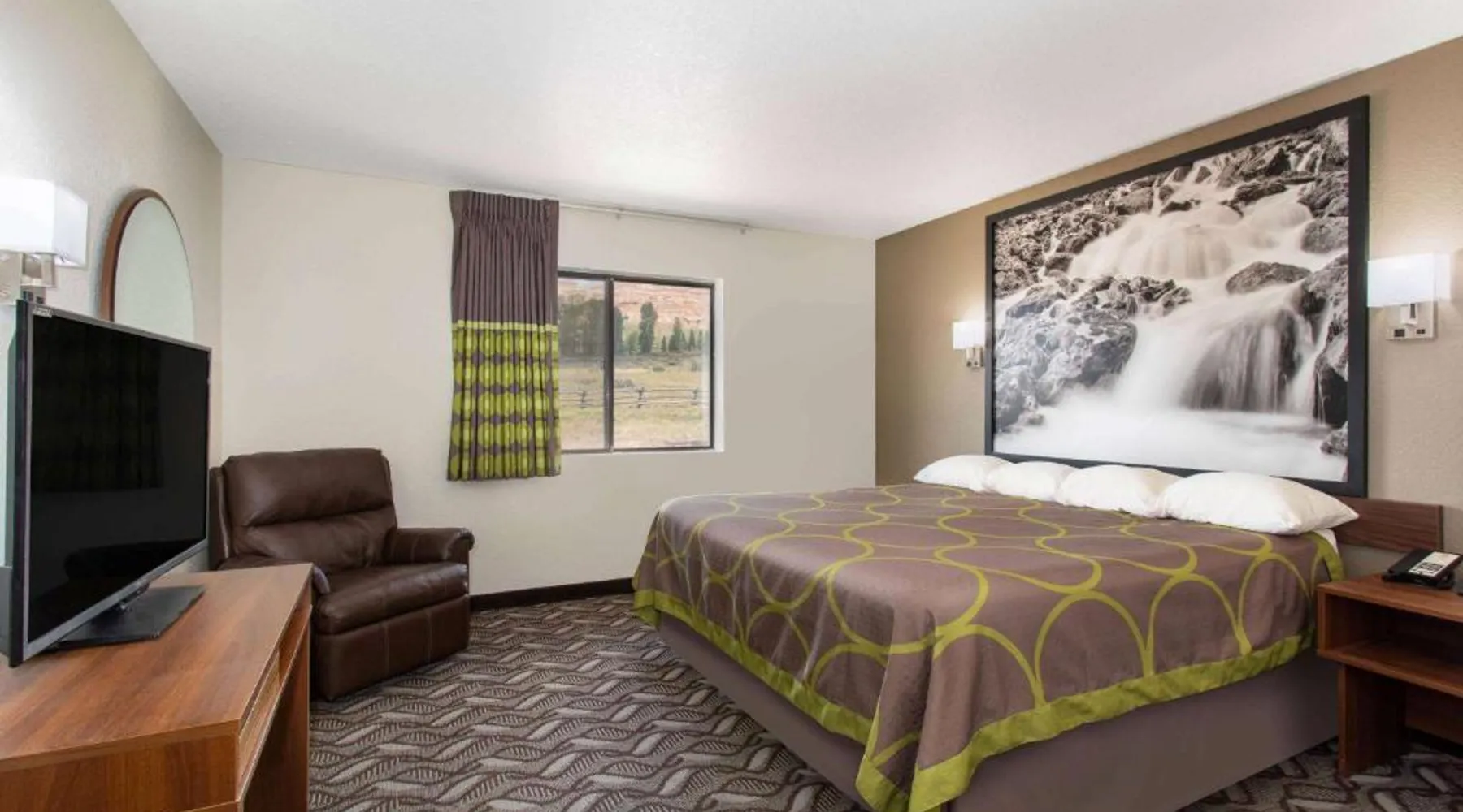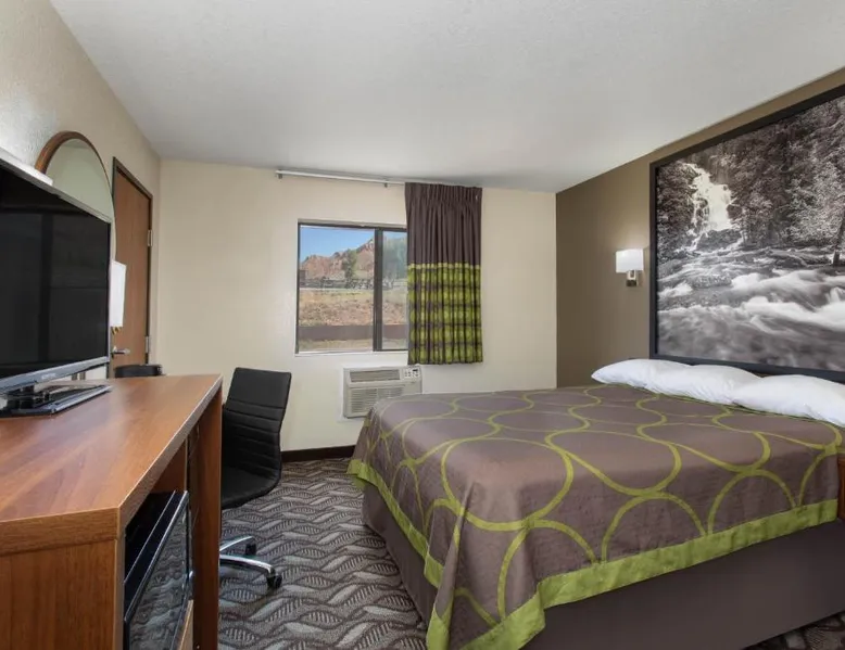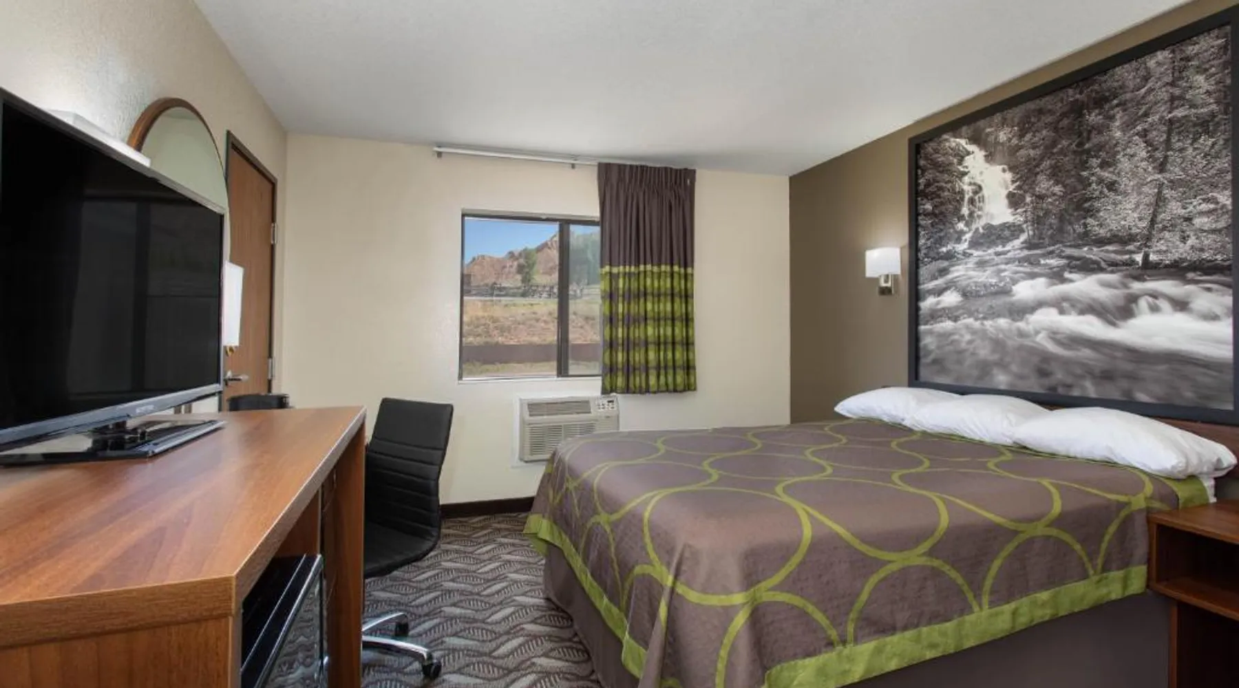 Offering free Wi-Fi in rooms, this Dubois, Wyoming motel is 30 minutes’ drive to the entrance of Teton National Forest. Golfing opportunities at Antelope Hills Golf Course is 5 minutes’ drive away. Offering a mountain view, all rooms include cable TV and an private bathroom. Tea and coffee-making facilities, a refrigerator and microwave are also provided in rooms at Super 8 Dubois. Select rooms feature a sofa bed. A complimentary grab and go breakfast is offered daily for guests’ at Dubois Super 8. Fax and photocopying services are available at the 24-hour reception. Yellowstone Lake and Yellowstone National Forest is 100 miles away. Dubois Municipal Airport is 5 minutes’ drive from Super 8 Dubois. The spacious double room features air conditioning, as well as a private bathroom boasting a bath or a shower. The unit has 1 bed.