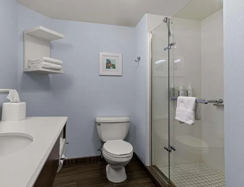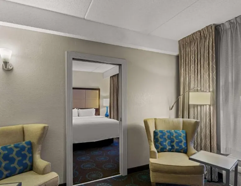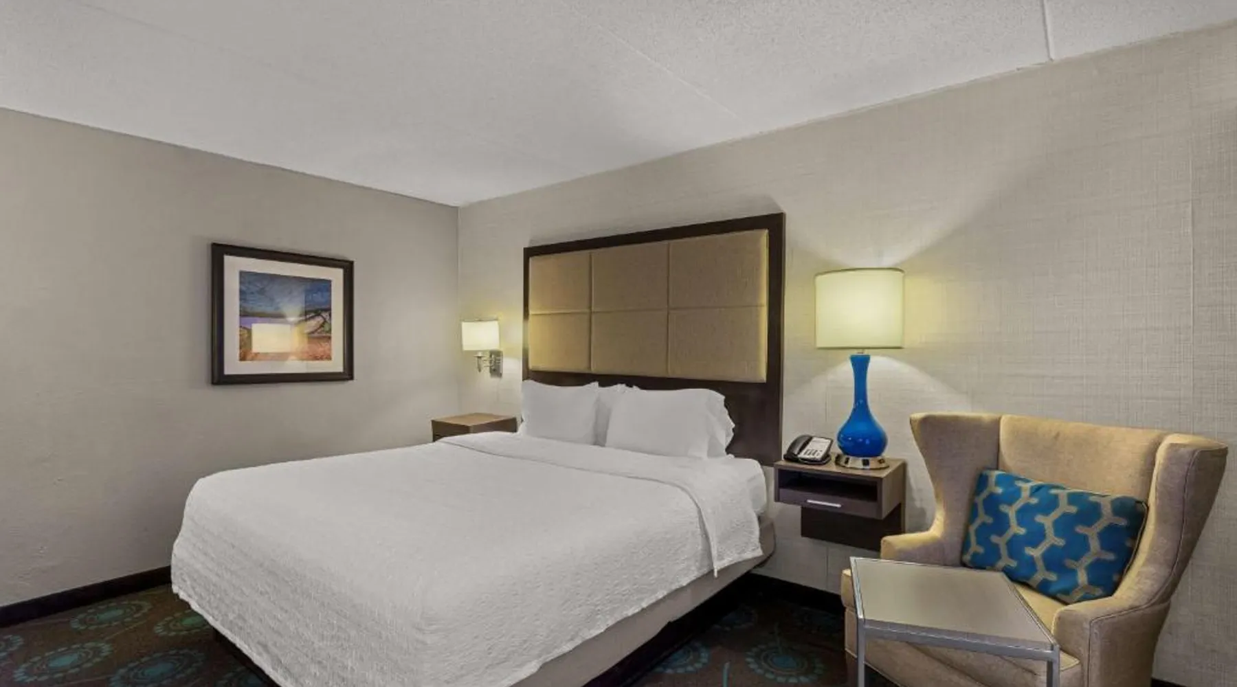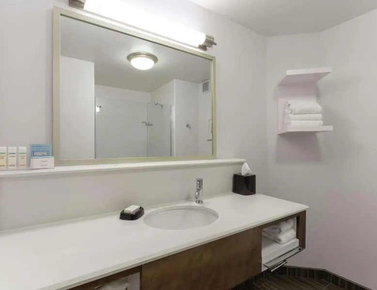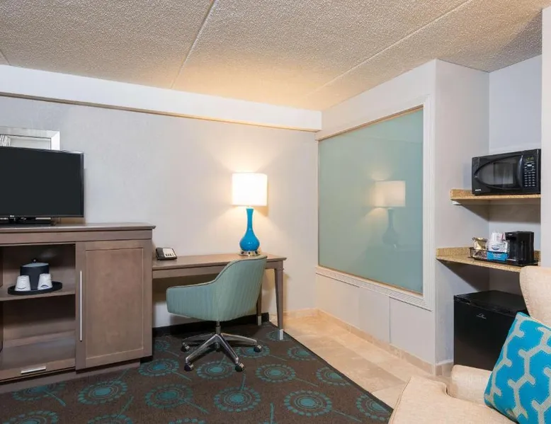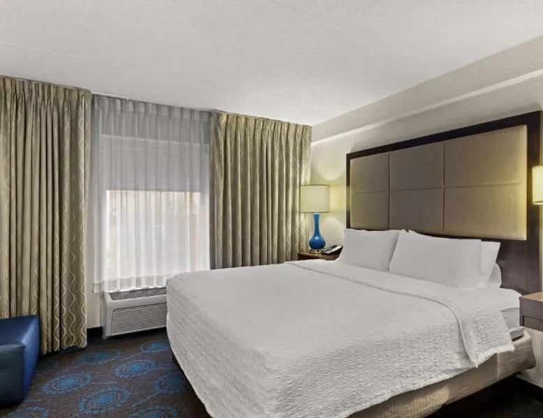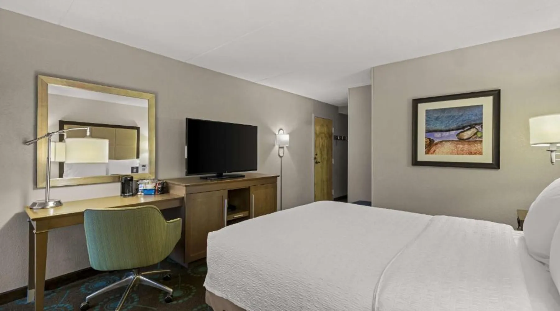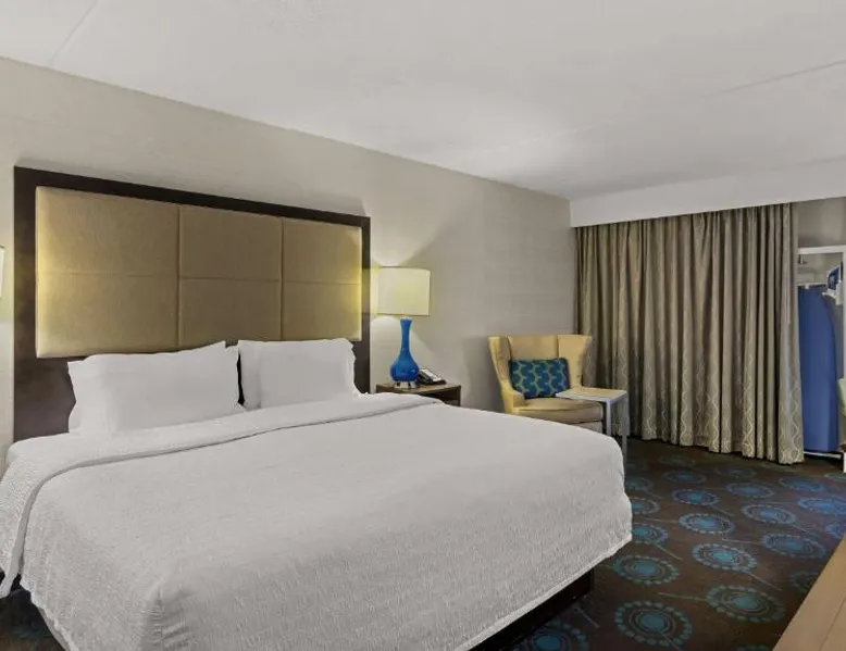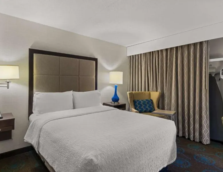Comfortable Accommodations: Hampton Inn Bloomington in Bloomington offers family rooms with air-conditioning, free WiFi, and modern amenities. Each room includes a work desk, refrigerator, and TV, ensuring a pleasant stay. Leisure Facilities: Guests can enjoy a fitness center, sun terrace, and seasonal outdoor swimming pool. Additional facilities include a fitness room, outdoor seating area, and picnic spots, providing ample opportunities for relaxation and leisure. Dining Options: A variety of breakfast options are available, including continental, American, buffet, vegetarian, gluten-free, and kosher. Breakfast selections feature warm dishes, fresh pastries, fruits, and juices, catering to diverse dietary needs. Convenient Location: Located 43 mi from Indianapolis International Airport, the hotel is near attractions such as Bloomington Memorial Stadium (18-minute walk) and Simon Skjodt Assembly Hall (1.1 mi). Guests appreciate the attentive staff, room cleanliness, and comfortable beds. This room includes cable TV, a mini-fridge and tea- and coffee-making facilities.