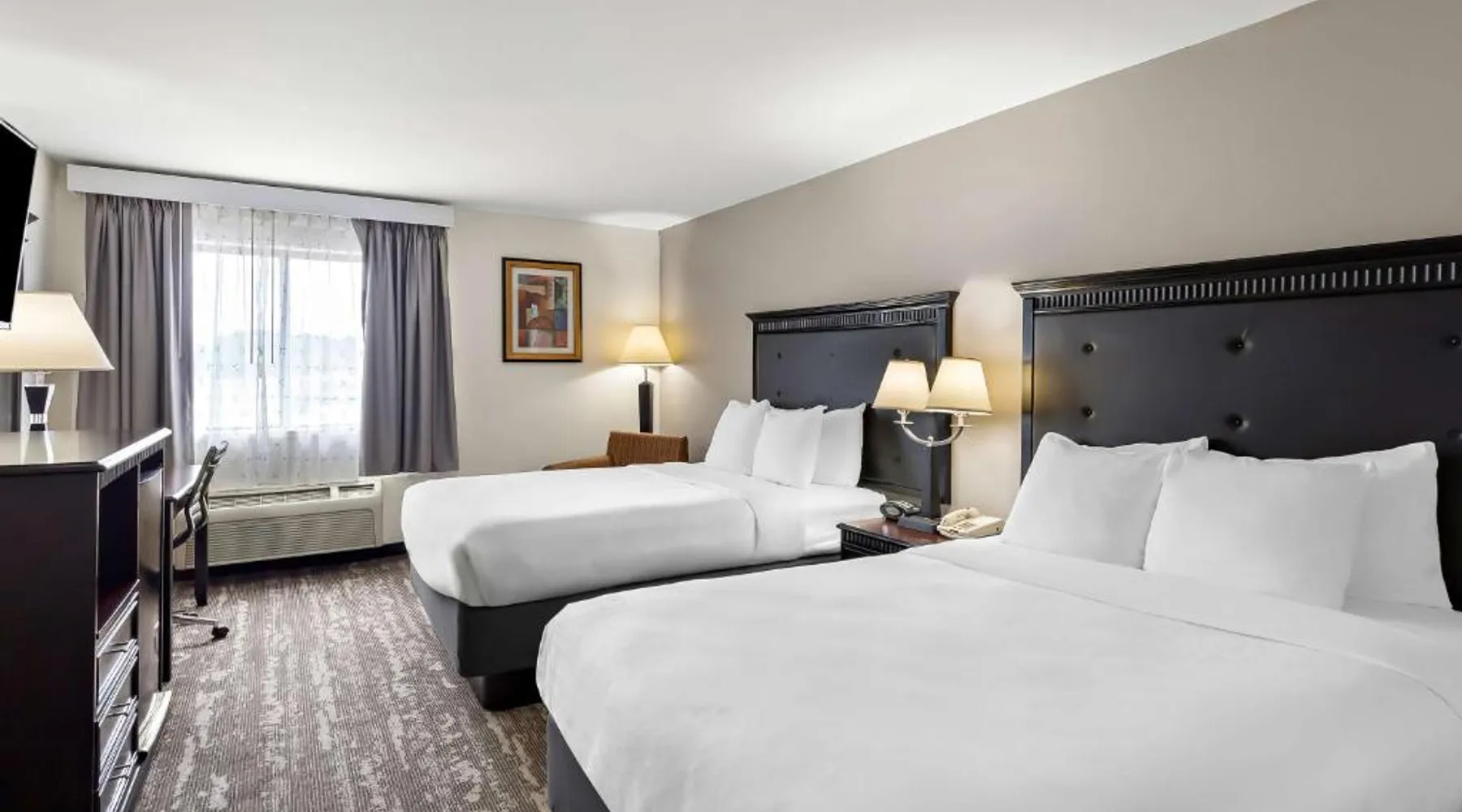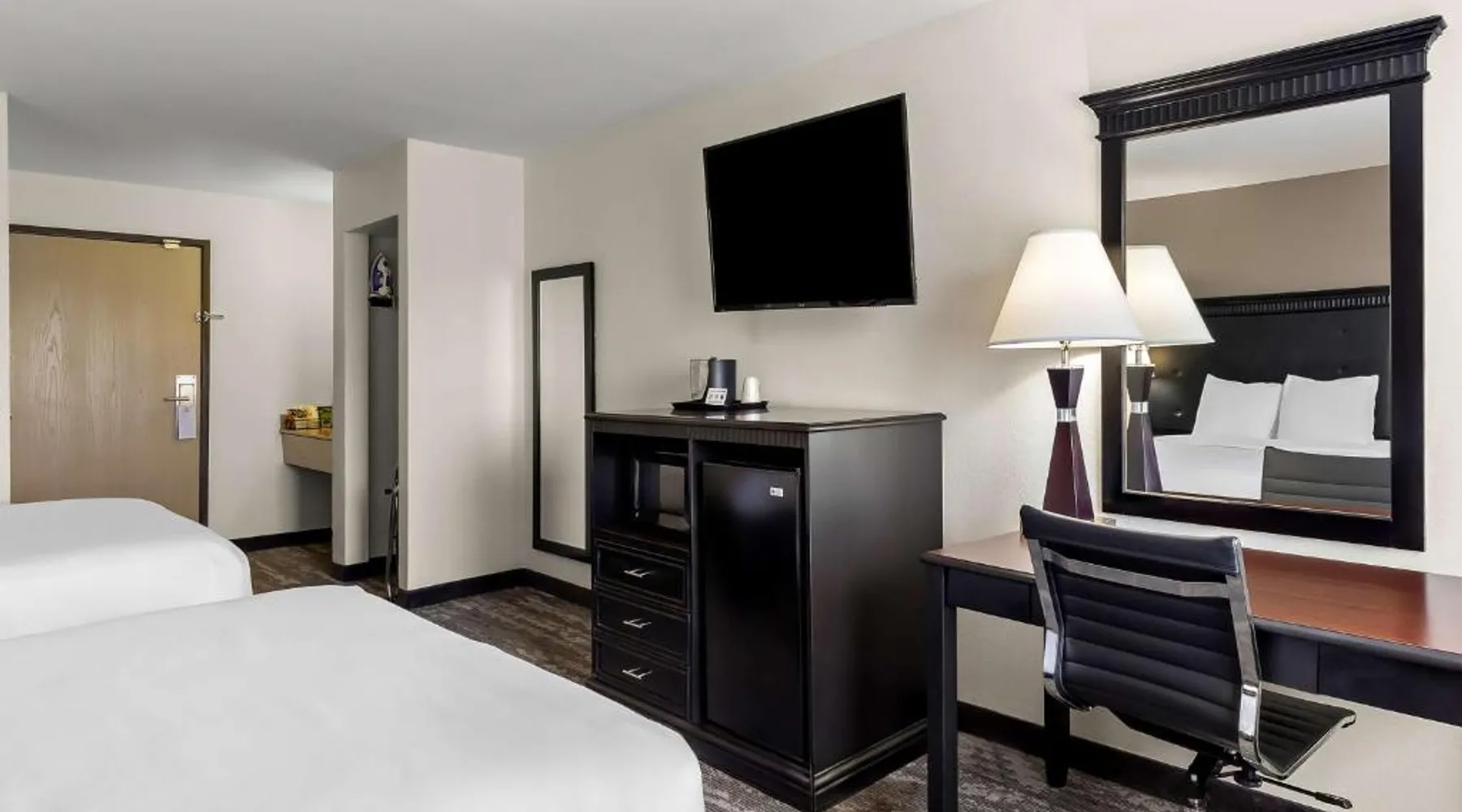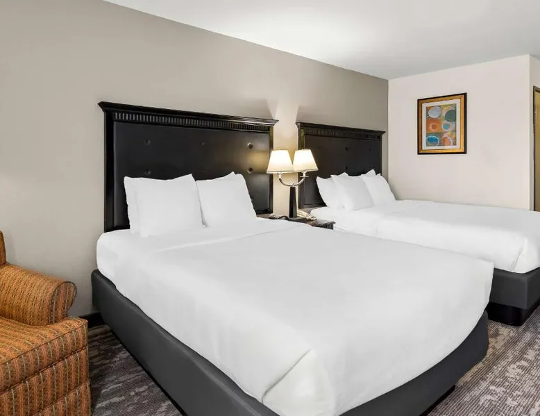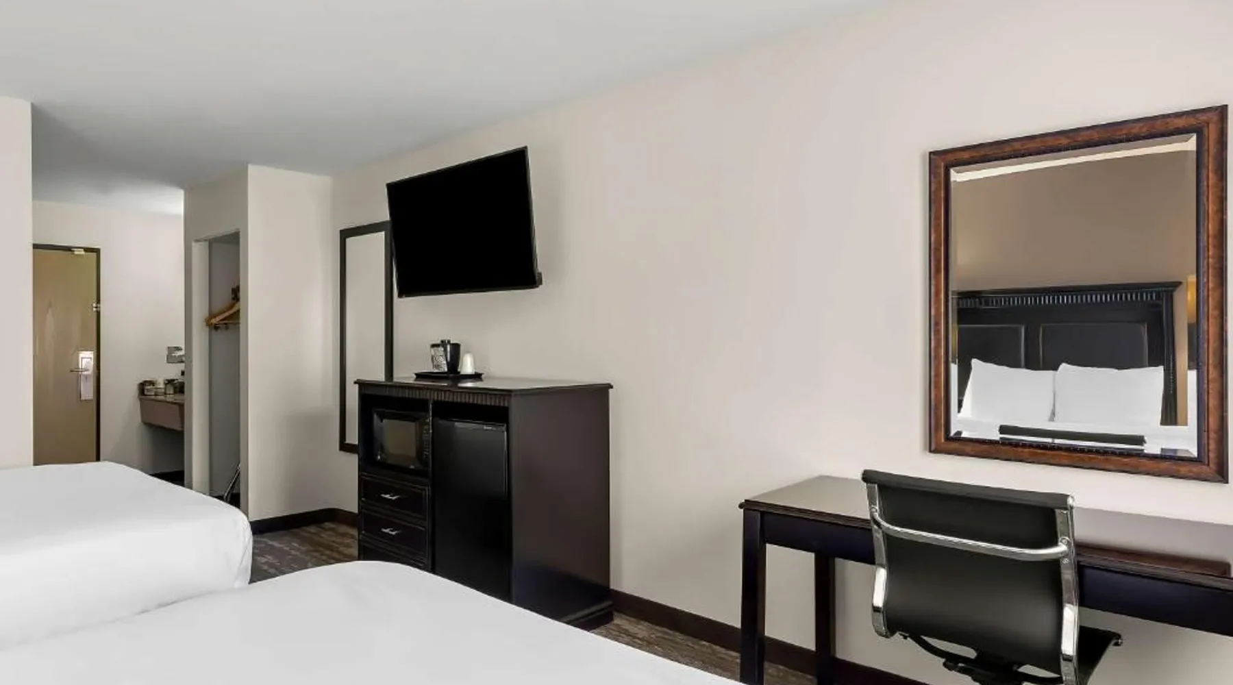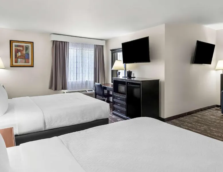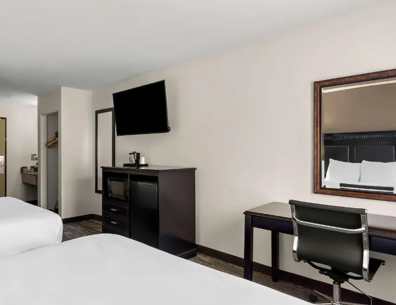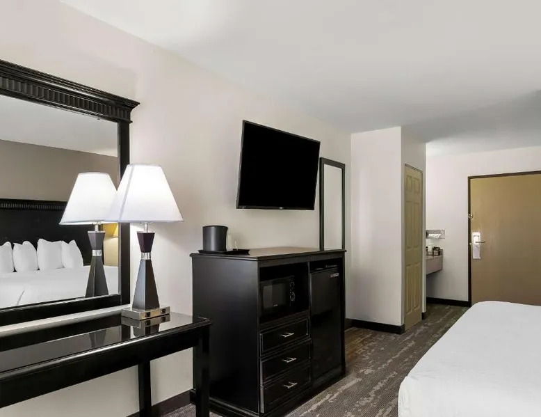 This Carbondale hotel is 3 miles from Southern Illinois University. It serves a deluxe breakfast buffet every morning and features an indoor pool. Free Wi-Fi access and cable TV are included in every room at the Best Western-Saluki Inn. They all have a microwave, refrigerator and coffee maker and are furnished with a work desk. Guests can work out in the fitness center or play in the game room at the Saluki Inn Best Western. The front desk is staffed 24 hours a day. Crab Orchard Lake is a 10-minute drive from the hotel. Giant City State Park is 10 miles away. This family room offers a flat-screen TV with cable channels. The unit offers 4 beds.