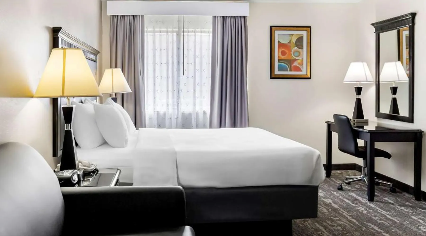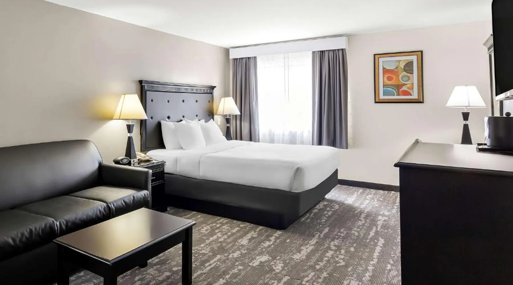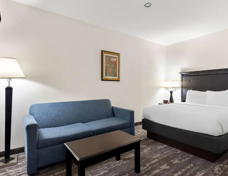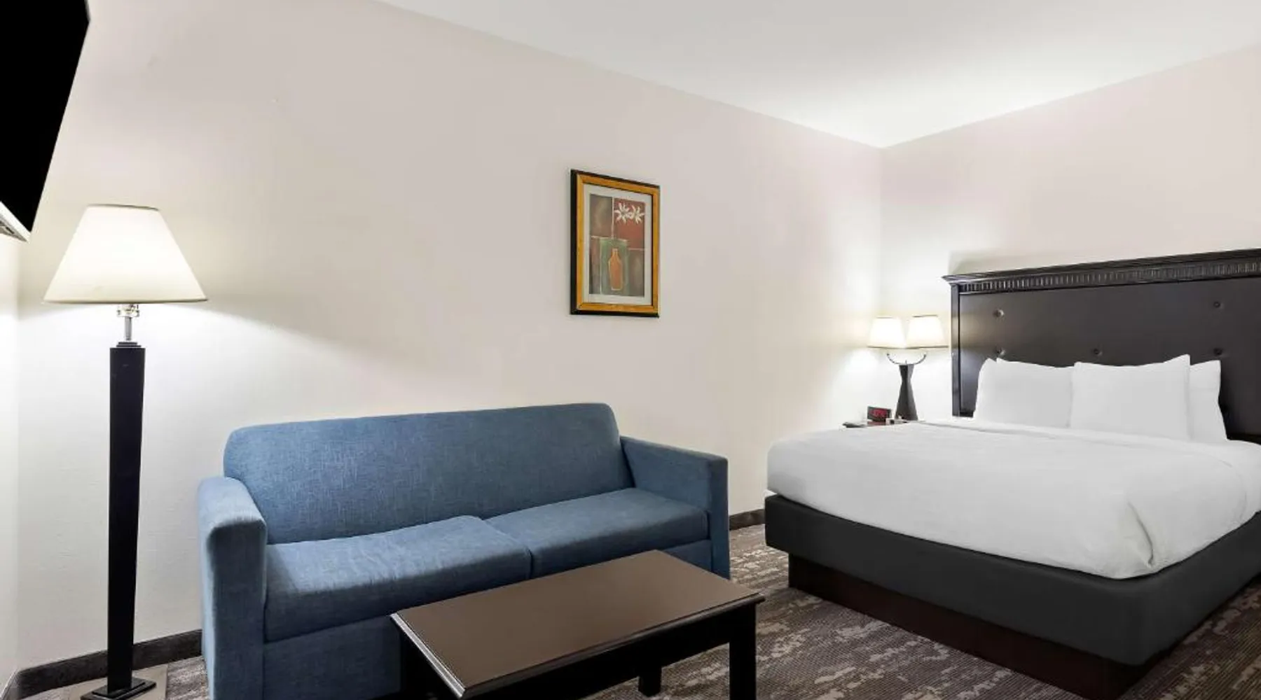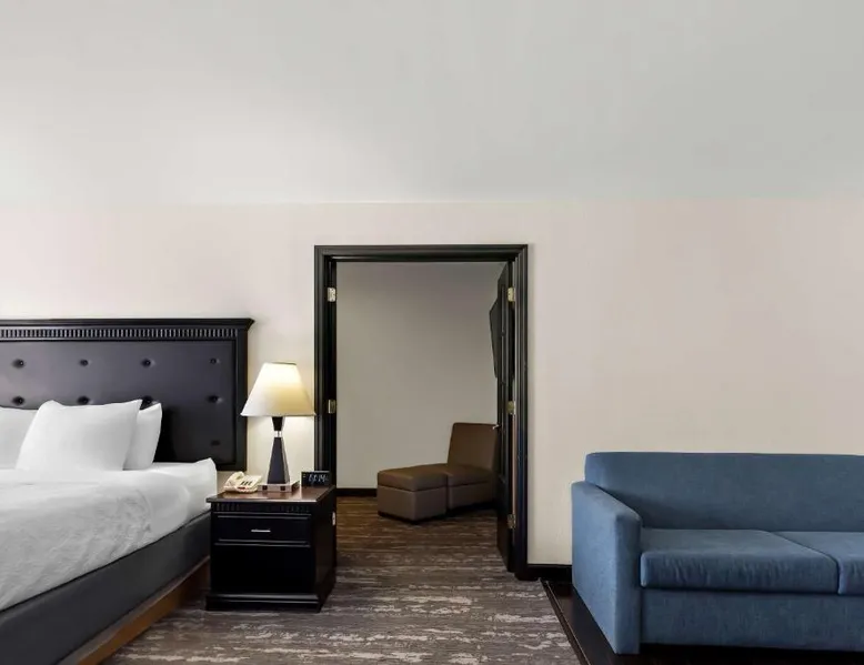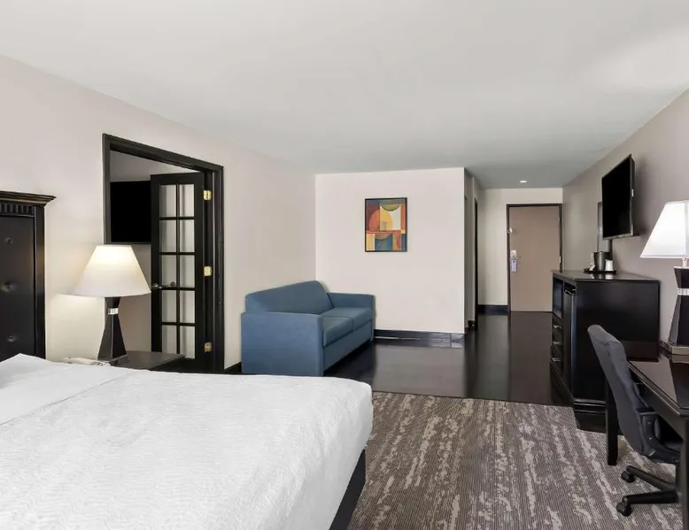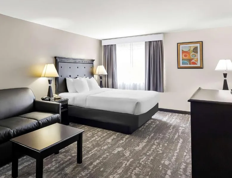 This Carbondale hotel is 3 miles from Southern Illinois University. It serves a deluxe breakfast buffet every morning and features an indoor pool. Free Wi-Fi access and cable TV are included in every room at the Best Western-Saluki Inn. They all have a microwave, refrigerator and coffee maker and are furnished with a work desk. Guests can work out in the fitness center or play in the game room at the Saluki Inn Best Western. The front desk is staffed 24 hours a day. Crab Orchard Lake is a 10-minute drive from the hotel. Giant City State Park is 10 miles away. This family room offers a flat-screen TV with cable channels. The unit offers 4 beds.