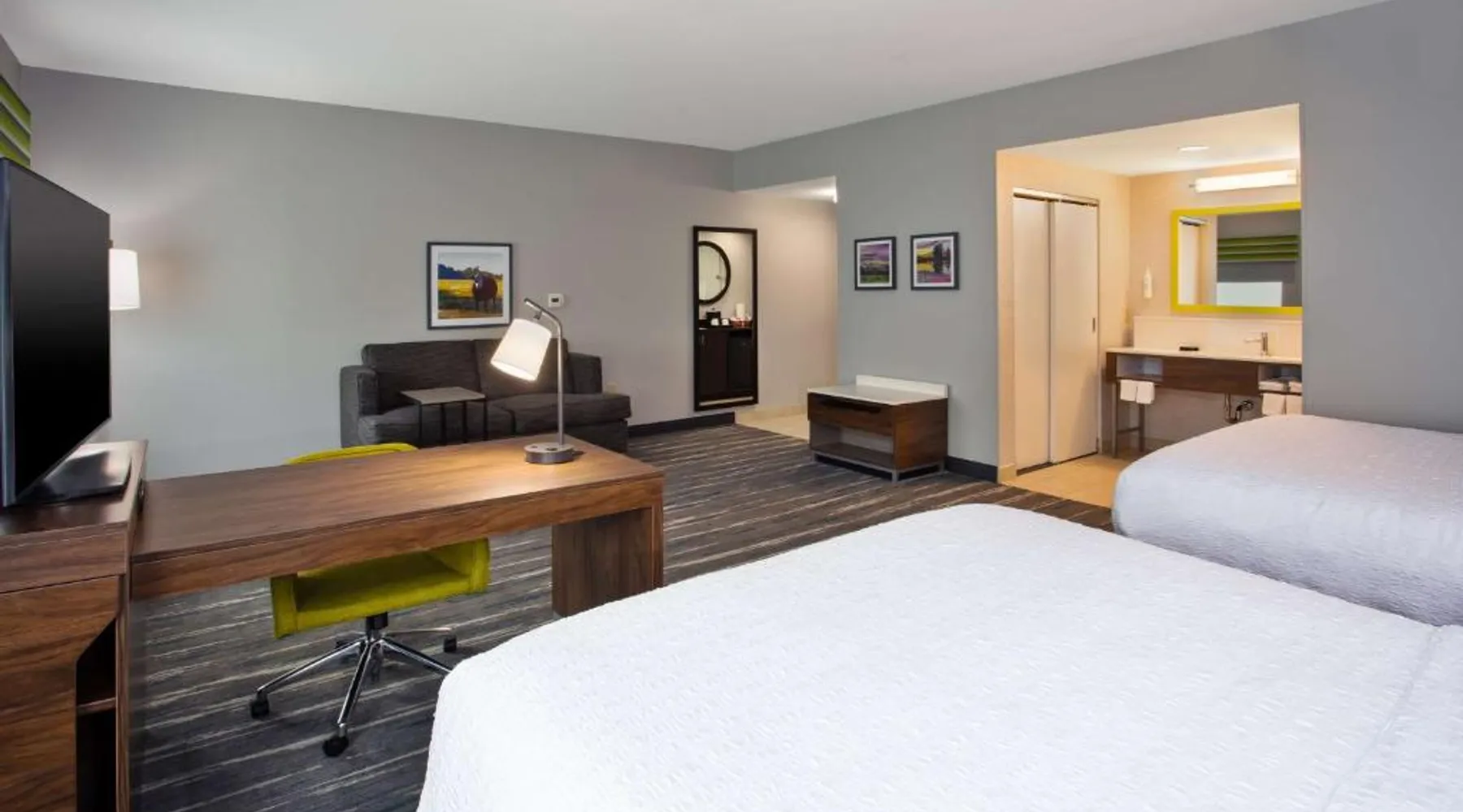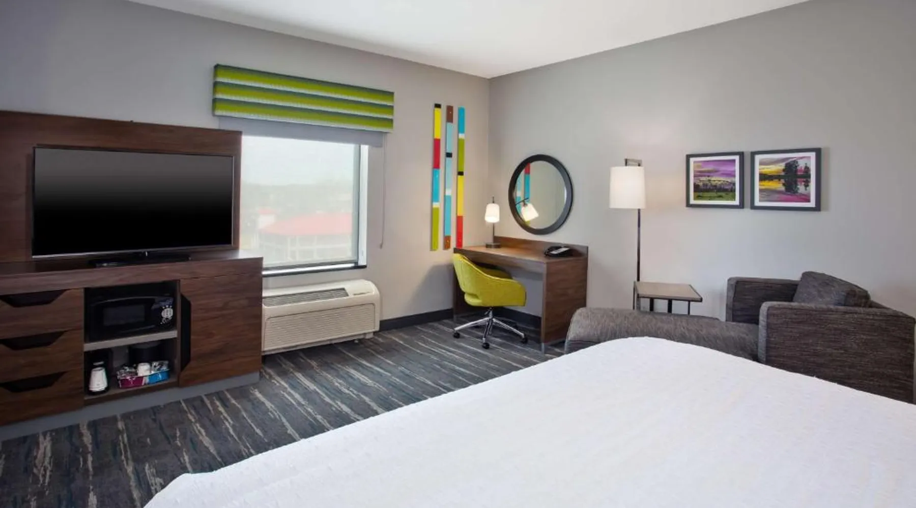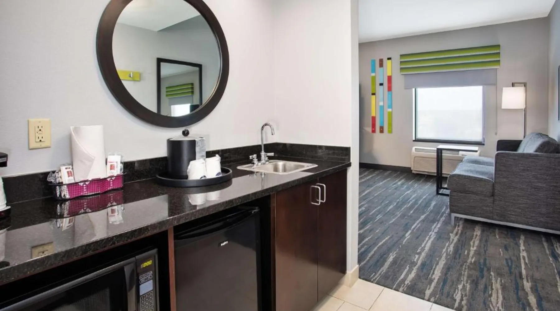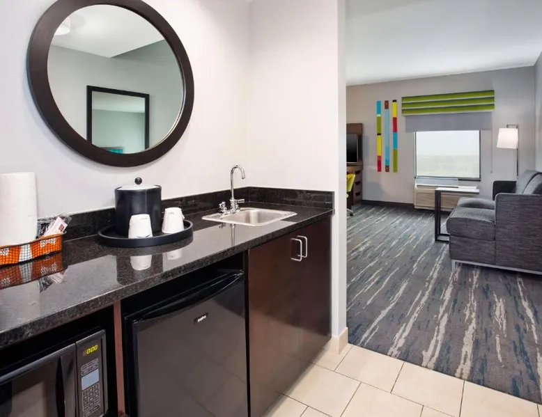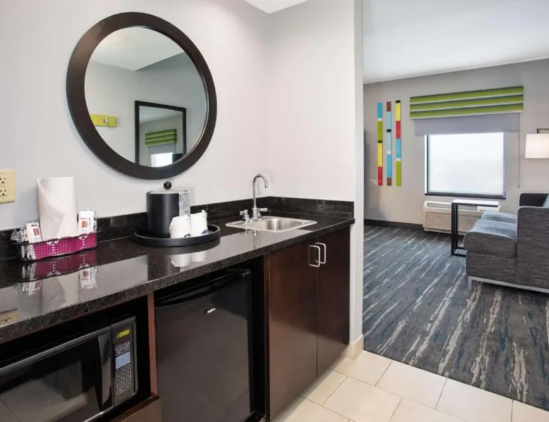 Comfortable Accommodations: Rooms feature free WiFi, air-conditioning, and modern amenities including a tea and coffee maker, hairdryer, refrigerator, microwave, and TV. Additional comforts include sofa beds, free toiletries, and showers. Facilities and Services: Guests can enjoy a fitness center, indoor swimming pool, and lounge. The hotel offers a 24-hour front desk, minimarket, daily housekeeping service, and paid on-site private parking. Dining Options: A continental buffet breakfast is served with warm dishes, juice, fresh pastries, and fruits. Location and Attractions: Located in Athens, the hotel is 19 mi from Huntsville International Airport. Nearby attractions include Robert Beaty Historic District (2.7 mi), The Athens Shop (2.8 mi), and Big Spring Park (3.1 mi). Highly rated for room cleanliness, breakfast, and staff support. This spacious studio features a cable TV, microwave, and small refrigerator.