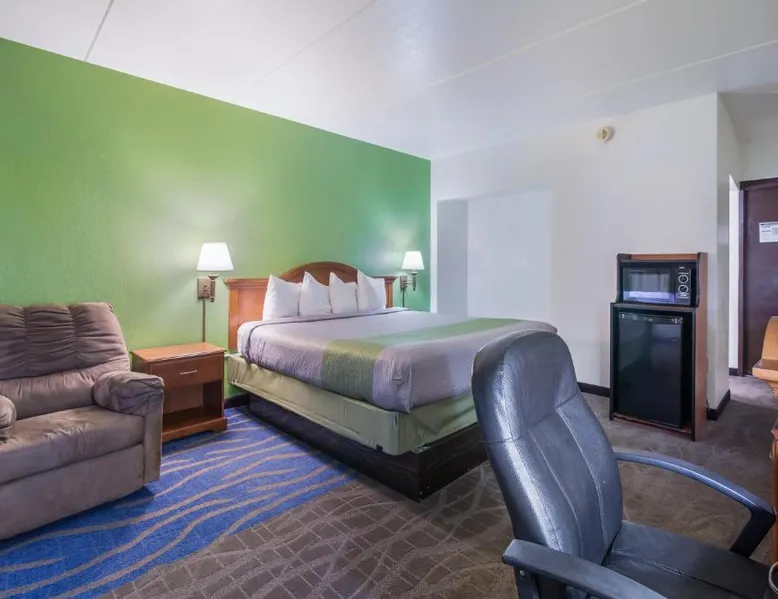 Comfortable Accommodations: Badlands Inn & Suites in Dickinson offers air-conditioned rooms with private bathrooms, baths, refrigerators, microwaves, and TVs. Each room includes a bath and a refrigerator, ensuring a pleasant stay. Exceptional Facilities: Guests can enjoy a fitness center, bar, and free WiFi. The hotel provides a 24-hour front desk, housekeeping service, and a business area, catering to all needs. Convenient Location: Located 6.8 mi from Dickinson Theodore Roosevelt Regional Airport, the hotel offers free on-site private parking. Guests appreciate the host, value for money, and convenient location. This air-conditioned single room is consisted of of a flat-screen TV with cable channels and a private bathroom. The unit has 1 bed.