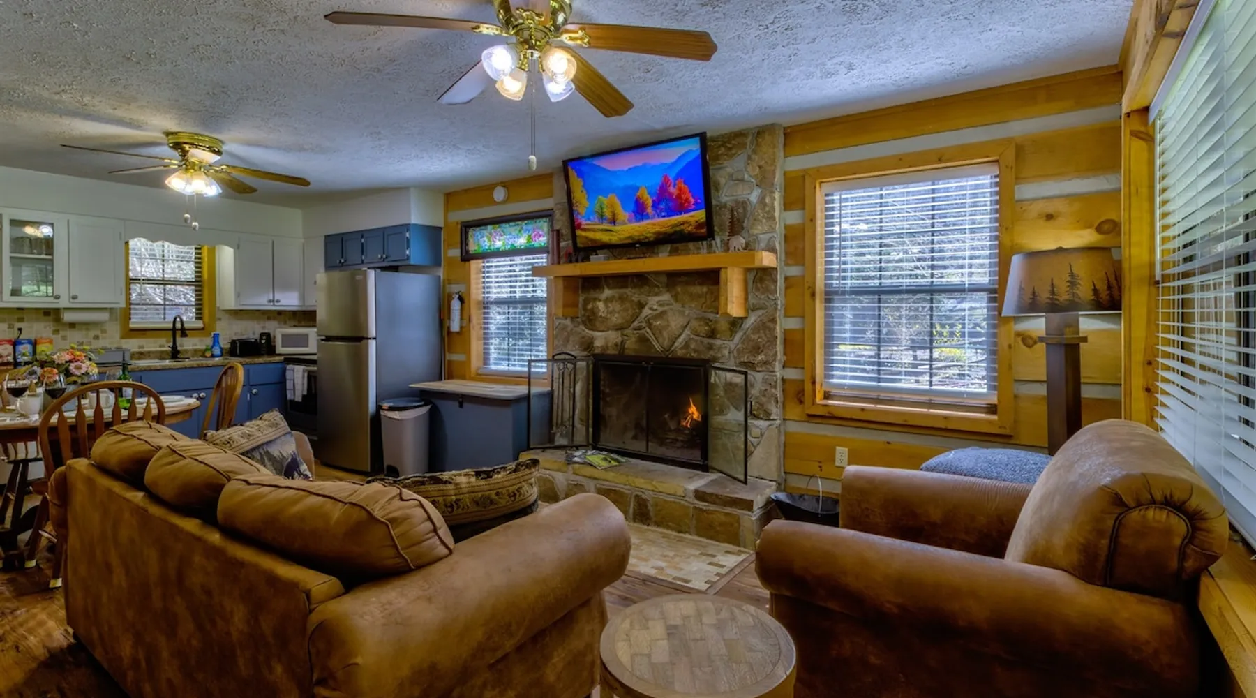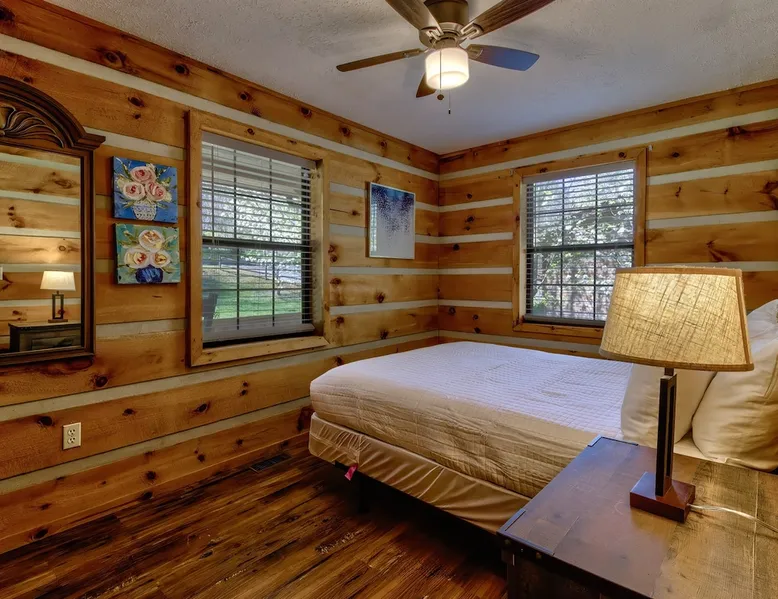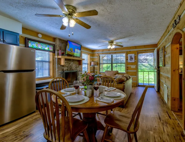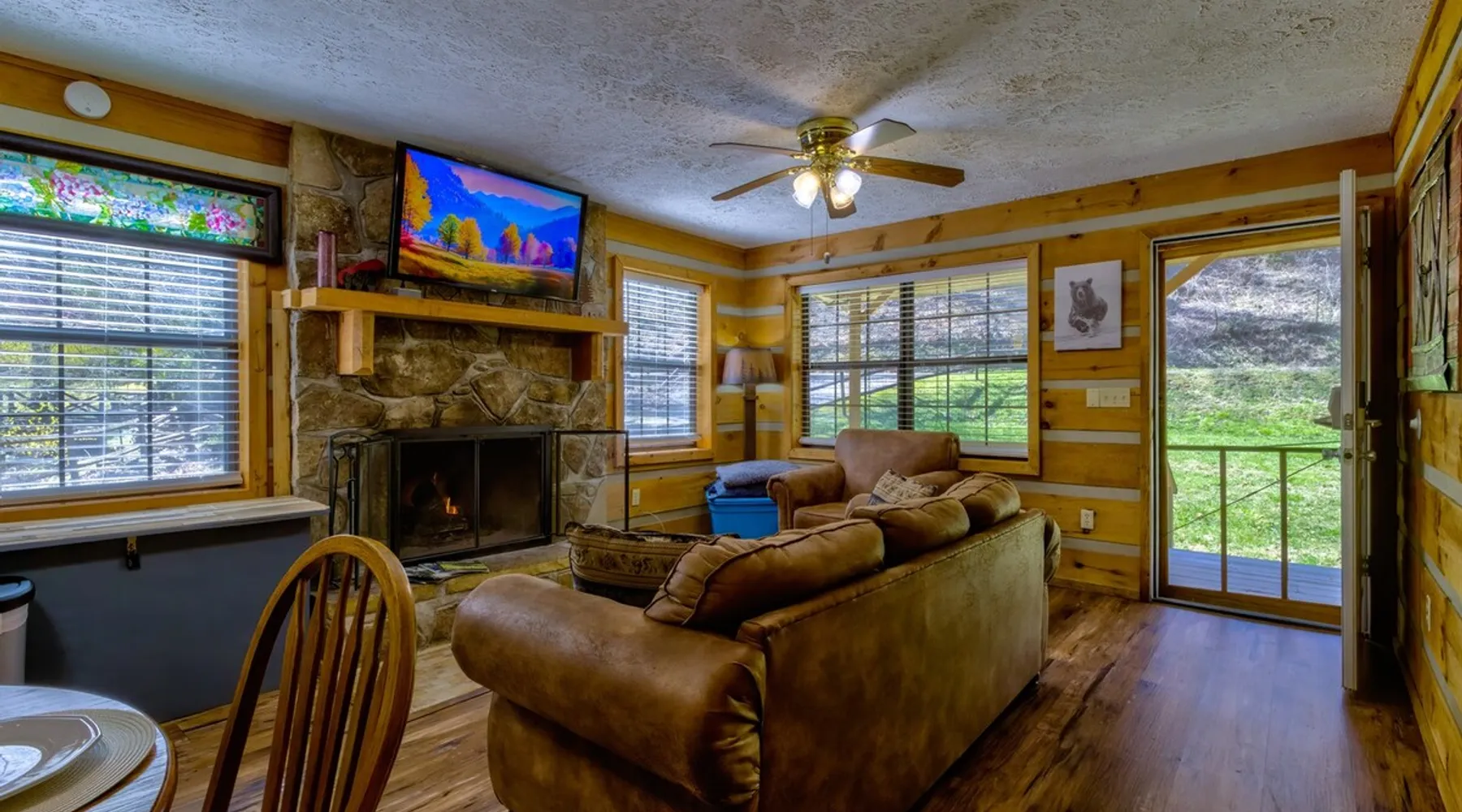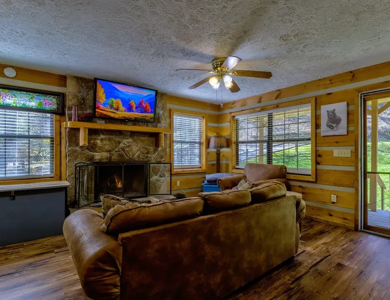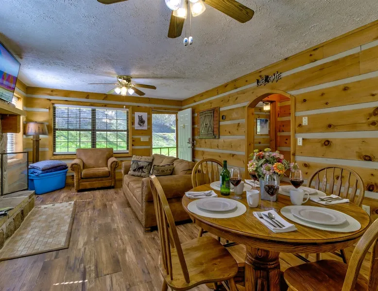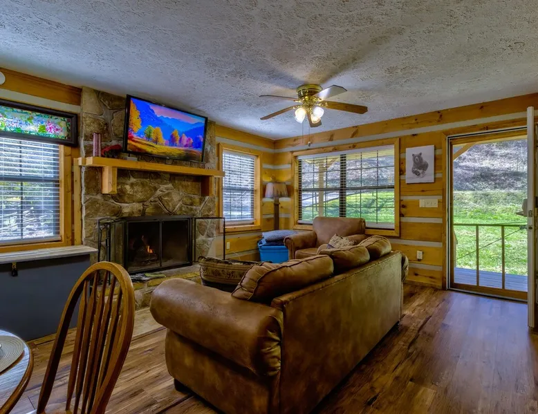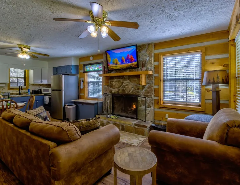3.6 Miles to Great Smoky Mountains NP | Easy Drive | Creek Views | Fireplace | Enclosed Jacuzzi • Peaceful Side of the Smokies: Just 3.6 mi from the park entrance, with no steep roads—perfect for easy access. • Crackling Fireplace & Creekside Charm: Cozy up indoors or listen to nature just outside • Sleeps 2–4: Two Queen bedrooms + living room sleeper sofa • Full Kitchen & High-Speed Roku TV + Wi Fi: Everything you need for comfort and entertainment • Indoor Jacuzzi Tub: Relax and unwind. The space Escape the everyday to your own tranquil cabin retreat nestled in Townsend, TN—often dubbed the “Peaceful Side of the Smokies.” With a buzzing fireplace, creekside setting, and soothing Jacuzzi, it’s romance, relaxation, or family comfort at its finest. Sleeping Layout Room Sleeping Option Bedroom 1 Queen bed Bedroom 2 Queen bed Living Room Queen sleeper sofa Perfect for couples, small families, or groups seeking cozy comfort. Amenities • Full kitchen — cook breakfast before heading into the park • Indoor Jacuzzi tub — pure relaxation after hiking • Fiery fireplace — perfect for chilly evenings • Roku TV + High-speed Wi-Fi — entertainment-ready • Smart lock check-in — seamless access • Washer + dryer, A/C, heating, linens, and more included Guest access Upon your arrival, you can head directly to your cabin without the need to stop by our office for check-in. To make your experience even more convenient, we will send you a personalized door code prior to your arrival. This code will grant you access to your cabin, and you are welcome to share it with the rest of your party. Our aim is to ensure a seamless and hassle-free start to your stay, allowing you to settle in and begin enjoying your time right away.