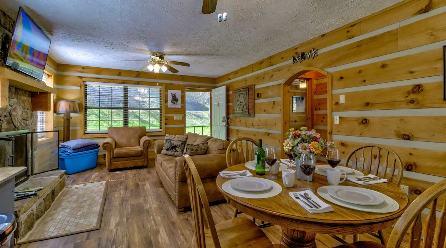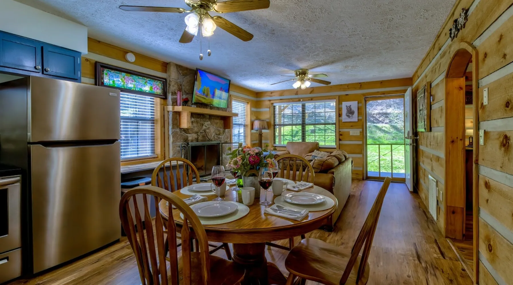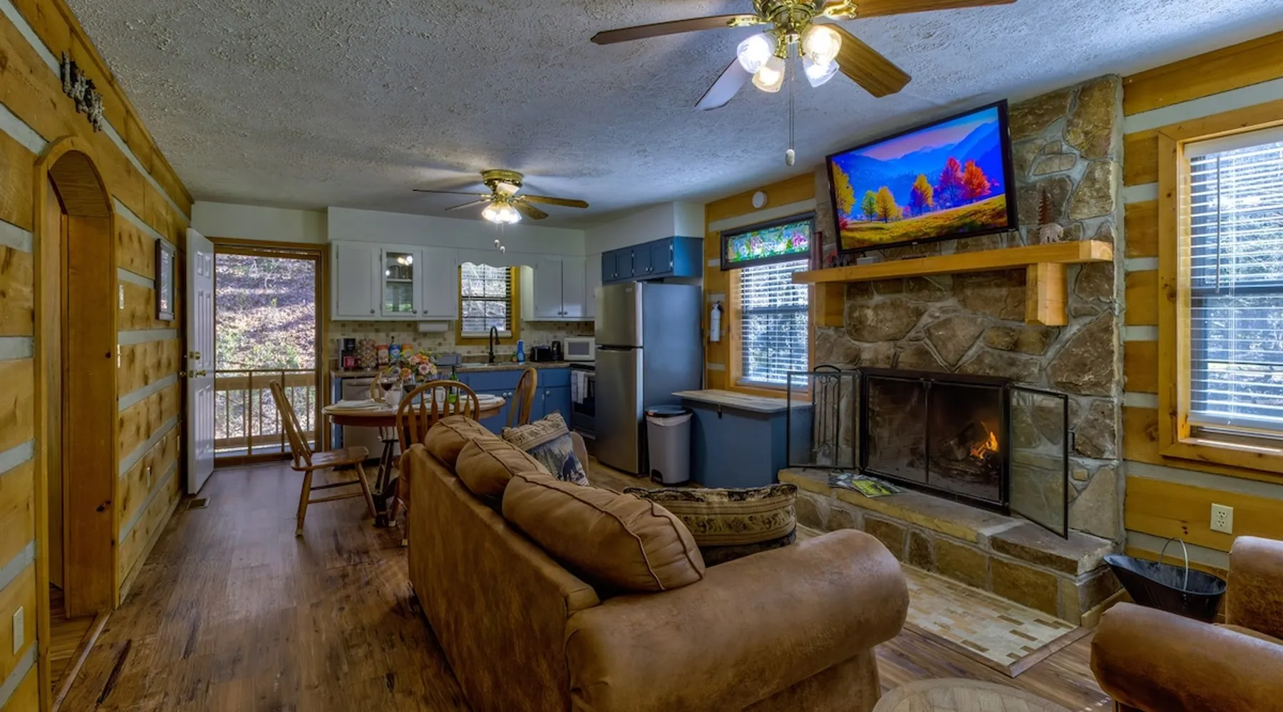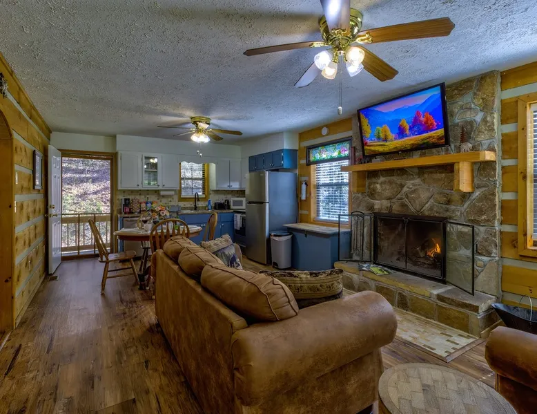 3.6 Miles to Great Smoky Mountains NP | Easy Drive | Creek Views | Fireplace | Enclosed Jacuzzi • Peaceful Side of the Smokies: Just 3.6 mi from the park entrance, with no steep roads—perfect for easy access. • Crackling Fireplace & Creekside Charm: Cozy up indoors or listen to nature just outside • Sleeps 2–4: Two Queen bedrooms + living room sleeper sofa • Full Kitchen & High-Speed Roku TV + Wi Fi: Everything you need for comfort and entertainment • Indoor Jacuzzi Tub: Relax and unwind. The space Escape the everyday to your own tranquil cabin retreat nestled in Townsend, TN—often dubbed the “Peaceful Side of the Smokies.” With a buzzing fireplace, creekside setting, and soothing Jacuzzi, it’s romance, relaxation, or family comfort at its finest. Sleeping Layout Room Sleeping Option Bedroom 1 Queen bed Bedroom 2 Queen bed Living Room Queen sleeper sofa Perfect for couples, small families, or groups seeking cozy comfort. Amenities • Full kitchen — cook breakfast before heading into the park • Indoor Jacuzzi tub — pure relaxation after hiking • Fiery fireplace — perfect for chilly evenings • Roku TV + High-speed Wi-Fi — entertainment-ready • Smart lock check-in — seamless access • Washer + dryer, A/C, heating, linens, and more included Guest access Upon your arrival, you can head directly to your cabin without the need to stop by our office for check-in. To make your experience even more convenient, we will send you a personalized door code prior to your arrival. This code will grant you access to your cabin, and you are welcome to share it with the rest of your party. Our aim is to ensure a seamless and hassle-free start to your stay, allowing you to settle in and begin enjoying your time right away.