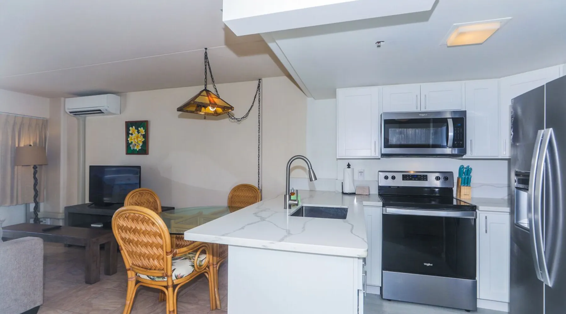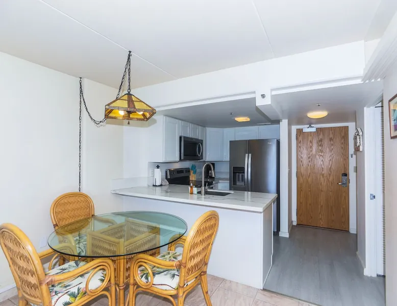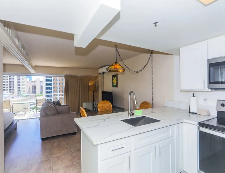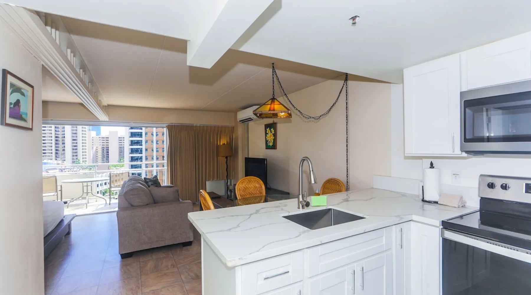Full kitchen and bathroom renovation completed in December 2023! Enjoy new stainless-steel appliances in the kitchen and a luxury shower experience in the bathroom! This condo is located within the iconic Ilikai Hotel on the 9th floor. You will feel right at home in this Hawaiian get-away as you enjoy your view of the lagoon and the Pacific Ocean! Catch the fireworks every Friday night off your private lanai. The space 1 Bedroom Standard Lagoon View on the 9th Floor! This unit features tile flooring throughout, a full kitchen, a king bed and pull-out sofa bed, and free wifi. You will feel right at home in this Hawaiian get-away as you enjoy your view of the lagoon and the Pacific Ocean! Just a quick walk away, is Hilton Hawaiian Village with fireworks every Friday evening. The Duke Kahanamoku Lagoon is nearby and perfect for the little ones to play & for you to sun bathe. Located nearby is Ala Moana Beach Park and Magic Island, making the perfect spot to BBQ, exercise, or sun bathe. You'll be happy to have chosen Hawaii as everyday & night you'll often see fantastic rainbows and glorious ocean views from the lanai. Registration Details 260100070161, 936, TA-181-805-4656-01