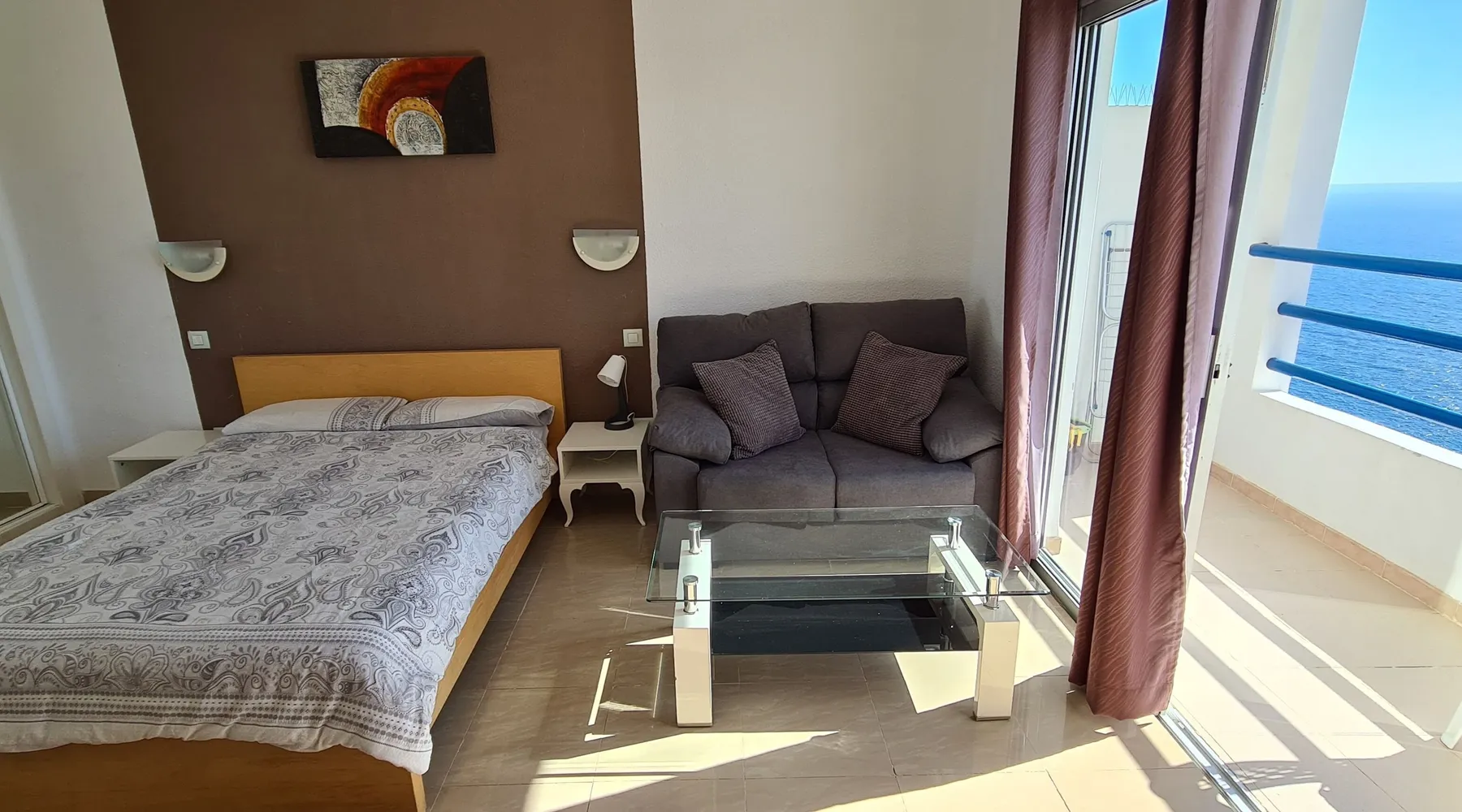 Lovely ocean view studio apartment located in Playa Paraiso, Tenerife. This studio has amazing ocean views. It is well located close to supermarket, restaurants and bus stop, taxi rank. There is also a beach just 200 meters away. Tenerife Sur airport is 25 minutes by taxi.