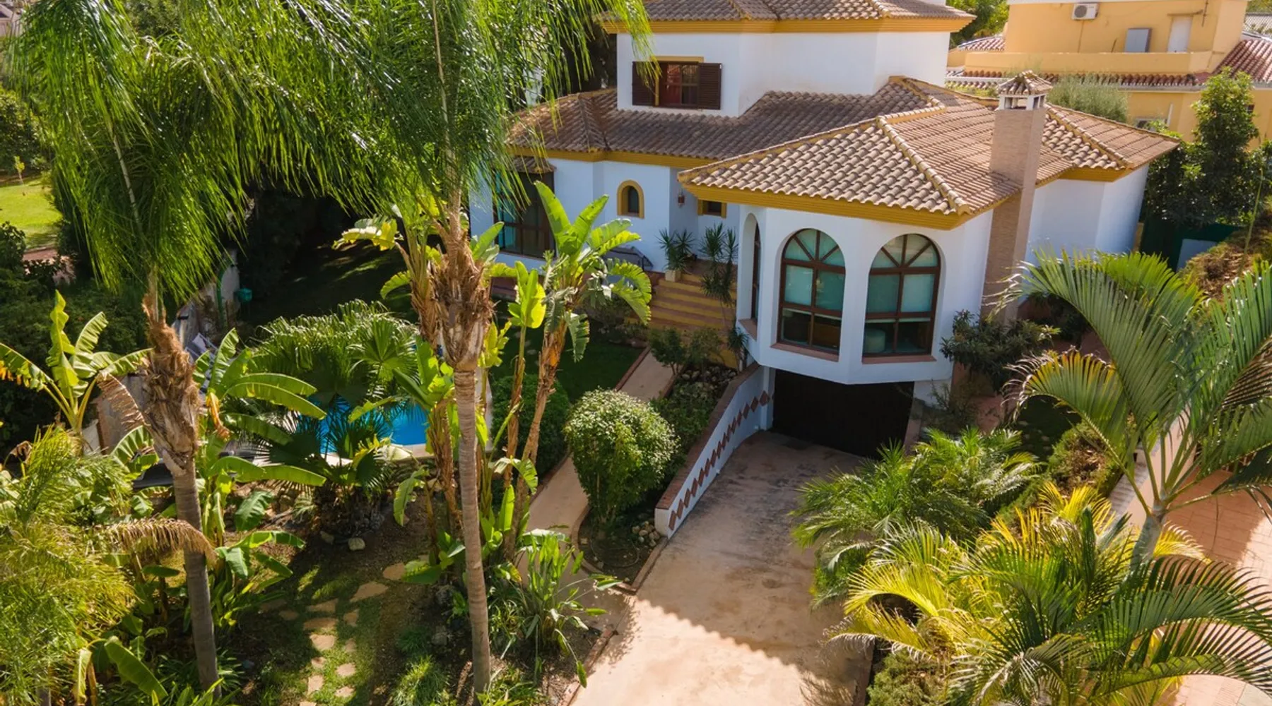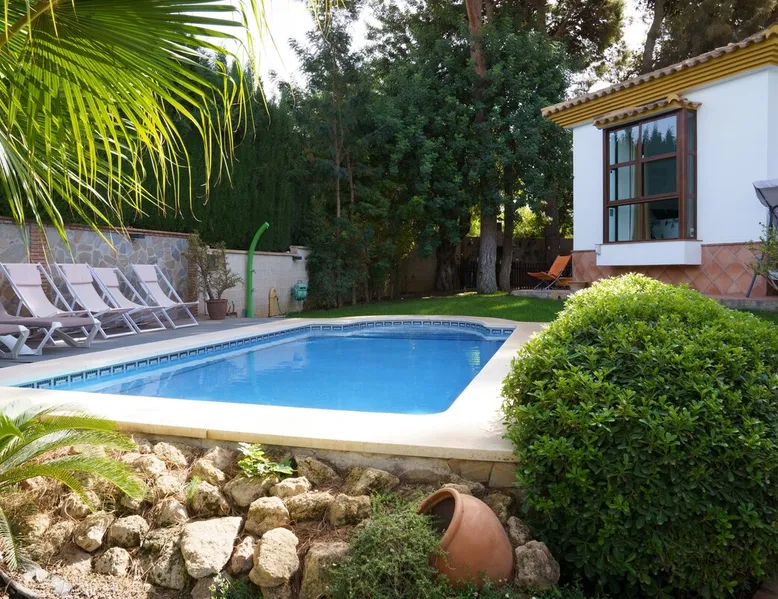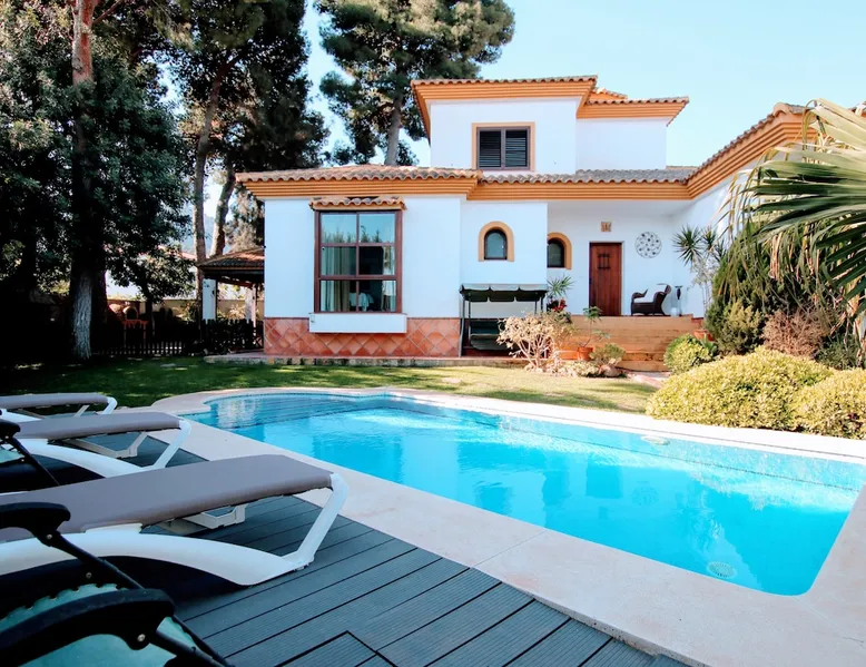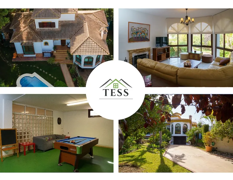 VILLA RIO NILO is a detached and magnificent property recently refurbished, situated in Los Manantiales Urbanization, considered one of the most sought-after areas of Alhaurín de la Torre. This is a great location of total tranquillity and privacy. The town centre, shops, restaurants and supermarkets are approximately less than 1km from the Villa. The space Layout details of VILLA Rio Nilo are listed below: MAIN FLOOR -KITCHEN - A perfect space to practice your best recipes. Amongst the existing appliances there is an oven, a combo fridge/freezer, microwave and dishwasher. The kitchen is also equipped with small appliances and a table that seats up to 6 people. Through the kitchen there is also access to backyard which takes you to the BBQ area. -LIVING/DINING ROOM: Tastefully designed and spacious living room which features a 6-seater corner sofa, 42' Full HD TV, Non-Functional fireplace, centralized Hot/Cold air conditioning, and large windows with views of the garden and pool. Additionally, in this area, there is a nice dining table for mealtime, comfortably seating up to 8 guests. WIFI connection is available through-out the house, as well as centralised air conditioning on the first and second floors. -TOILET: In the main corridor, there is a toilet with a wash basin. -BATHROOM A: Consists of a complete bathroom with a shower stall. -BEDROOM A: Consists of two single beds (90x200cm) with a built-in wardrobe, centralized air conditioning and ceiling fan. -BEDROOM B: Consists of double bed (150x200cm), with a built-in wardrobe, centralized air conditioning, En-suite bathroom with a shower and a large window overlooking the garden and pool. TOP FLOOR -BEDROOM C: Walking up the circular staircase you will find the 2nd master bedroom which consists of a double bed (150x200cm), a walk-in closet, centralized air conditioning, bathroom with a bathtub, and a window overlooking the garden and pool. (The bathtub is not used as a jacuzzi as it non-functional due to Sanitary Regulations.) Lower-Level BASEMENT -ENTERTIANMENT ROOM: A spacious living room with a 55-inch SMART TV, 3+2-seater sofa, and a dining table for up to 6 people. -TOILET B: There is a toilet with a washing machine and dryer. -BEDROOM D: Consists of a double bed (150x200cm) with a built-in wardrobe and window. -BEDROOM E: Consists of two single beds (90x190cm) and bunk-beds, a built-in wardrobe and a window letting in natural light. Board games are available for children. -GAME ROOM: A fun area where you can find a billiard table, foosball, darts, and a ping-pong table. A refrigerator for snacks and drinks. OUTDOOR Garden and Pool Area There is a huge terrace surrounding the entire property with two separate areas within it: - Garden area, with a non-heated swimming pool open all year round, where you can take a dip in the summer to alleviate the high temperatures. - BBQ area, in the summer season, there is nothing better than preparing food outdoors. Enjoy the best meats prepared on our wood-fire barbecue or in the traditional style, with a table for up to 12 guests to enjoy a pleasant outdoor meal. PARKING: The residence has 2 parking spaces located on the same plot. We are talking about a high-class property that will delight anyone who wishes to stay here for either a long weekend or a Fun in the Sun holiday. In addition, we offer our clients the following optional services: - Transfer service to and from the airport. - Car rental service. - Boat rental service. - Hiring of chef and in-house cooking. - Hiring of local excursions and activities. - Golf and paddle tennis. - Yoga classes. - Massage service. - Extra cleaning and linen service. Registration Details Andalucia - Regional registration number VUT/MA/55427