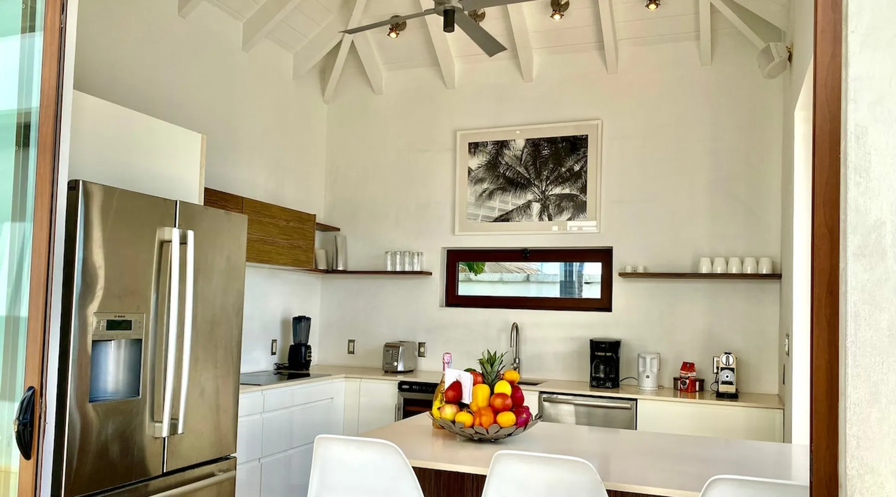 This property is locates right on the beach at Cades Bay, don´t look at the Goggle map, because it´s showing the wrong location. You can also visit Facebook to see the right location. Look for Chrishi Beach Club. The space A beautiful unique luxury beach house in a contemporary architecture, offering high-end two bedrooms. Set on a higher level of the beach overlooking the Caribbean sea with it's stunning sunsets every night. The house is highly specified and comprehensively fitted throughout including full kitchen with quality appliances, electrical window treatments, electrical mosquito screening, air conditioning and ceiling fans, WI-FI, cable TV and Bose sound system, entry security system. The Beach House is furnished with stylish, delicate, modern furniture and with fine color combinations. The House also comes with everyday House Keeping, Concierge Service, Pick up service, Room service and more..... Check out the pictures! Zenith Nevis is set on a wonderful island in the Caribbean. Often called the queen of the Caribbean. This island boasts a tremendous combination of history, culture, nature and leisure activities. This is the true & real Caribbean. The people are super friendly, it’s safe, it’s beautiful, it’s quiet, it’s unspoiled. Zenith Nevis is a small boutique business and provide on-going management. We are not a large faceless commercial organization. Our pricing structure reflects tremendous value from it’s stunning location and is hard to find on a equivalent property on the island. We came on a visit by boat many years ago and hardly seem to have been away since. Nevis is the heart and soul of the Caribbean, an exotic tropical volcanic island with an abundance of palm-fringed beaches, warm sparkling sea, English-speaking and life-loving locals, a wealth of land and water based activities, a great choice of delicious international cuisines, and a background soundtrack of soul & reggae. No wonder we decided to make Nevis our paradise. There is no quarantine in St.Kitts & Nevis for fully vaccinated guests over 12 years old. You will need a PCR test to enter the country. This villa can be rented with the Lighthouse and the Guestroom & the Tropicana suite on the property for a group of 10 people. Guest access There is space for 4 plus an extra child/youth. We also have a crib.