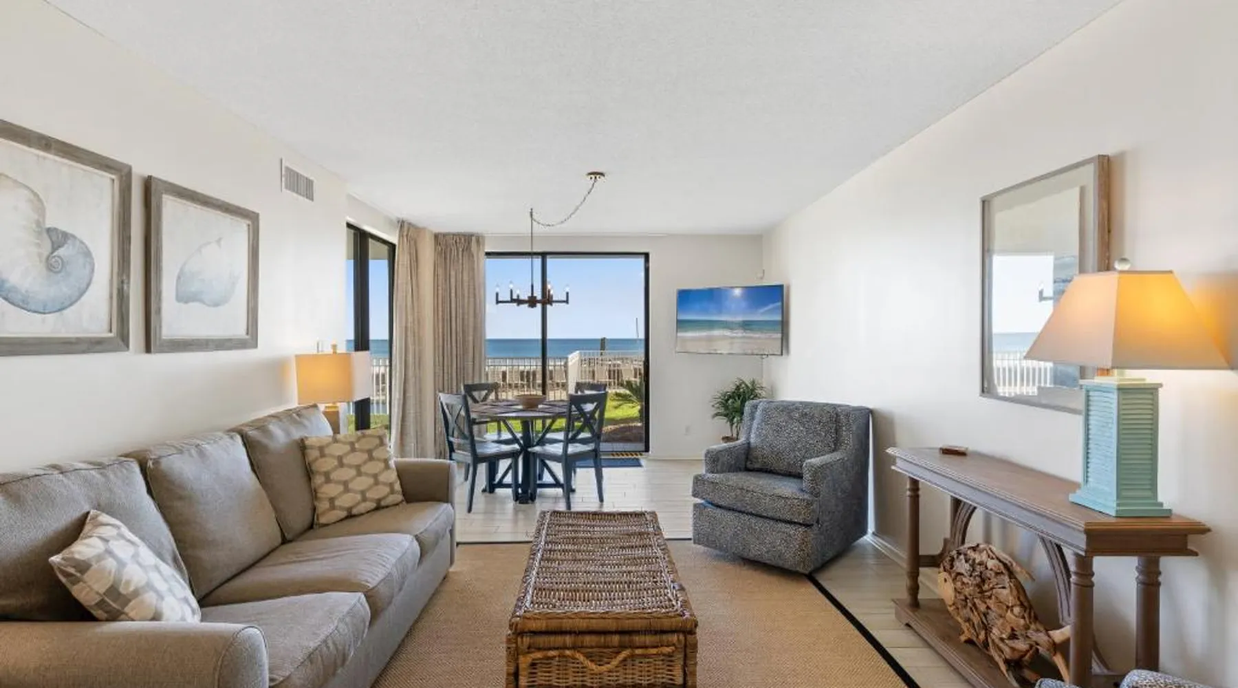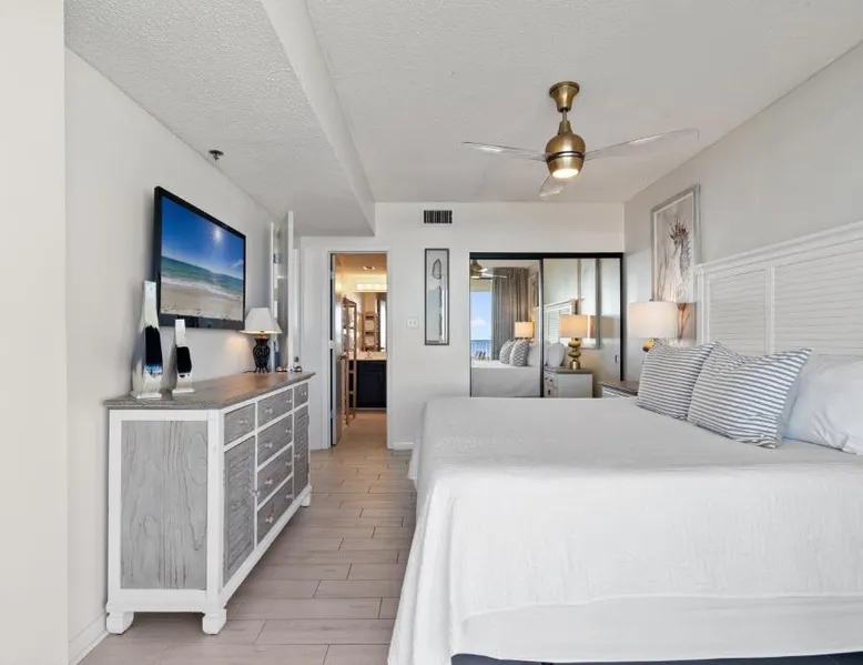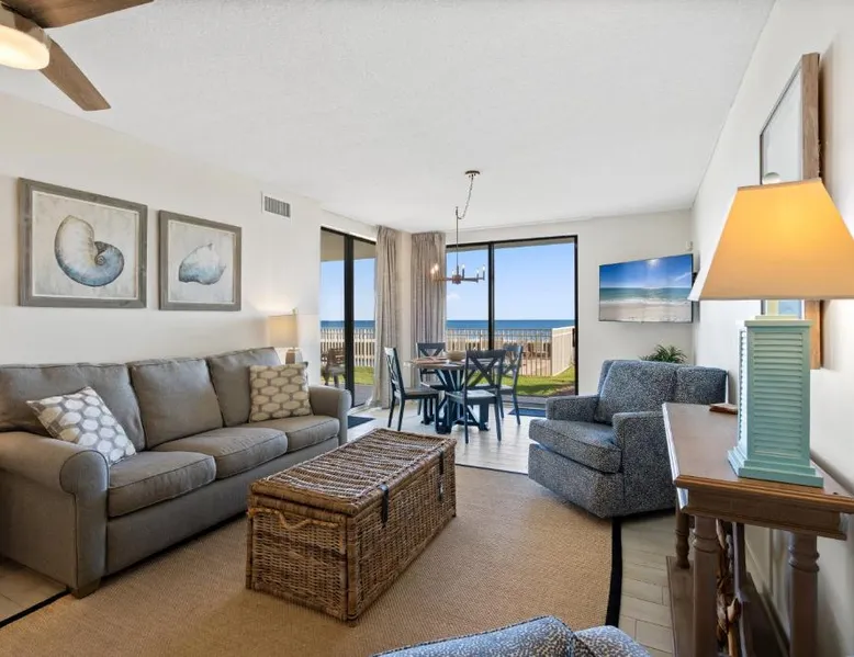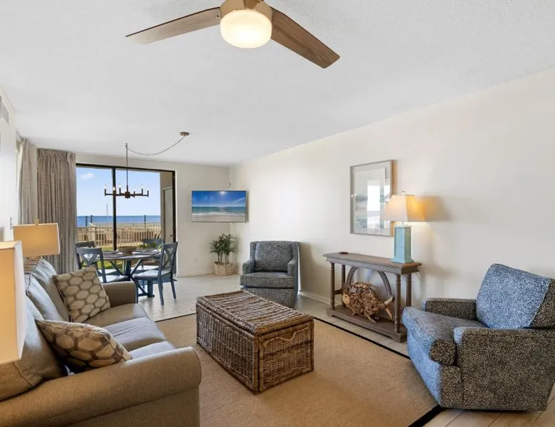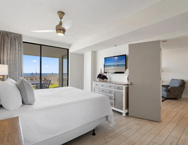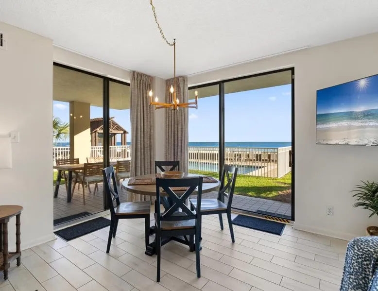 Beachfront Location: Romar Place 103 in Orange Beach offers direct beachfront access with stunning sea views. Guests can relax on the sandy shores or enjoy the inviting waters. Spa and Wellness: The holiday home features a spa and wellness center, indoor swimming pool, sauna, and hot tub. Free WiFi is available throughout the property, ensuring connectivity for all visitors. Leisure Facilities: Additional amenities include a fitness room, waterpark, and children’s playground. The spacious layout accommodates families comfortably, providing ample space for relaxation and entertainment. Nearby Attractions: Orange Beach is just a few steps away, while Gulf State Park Fishing Pier lies 3.7 mi from the property. Other attractions such as Alabama Gulf Coast Zoo and The Park at OWA are within 14 mi. Pensacola International Airport is 32 mi distant. Guests will find a stovetop, a refrigerator, a dishwasher and kitchenware in the well-equipped kitchen. The apartment also includes a barbecue. The spacious air-conditioned apartment features a TV with cable channels, a washing machine, a coffee machine, a dining area as well as sea views. The unit has 5 beds.
