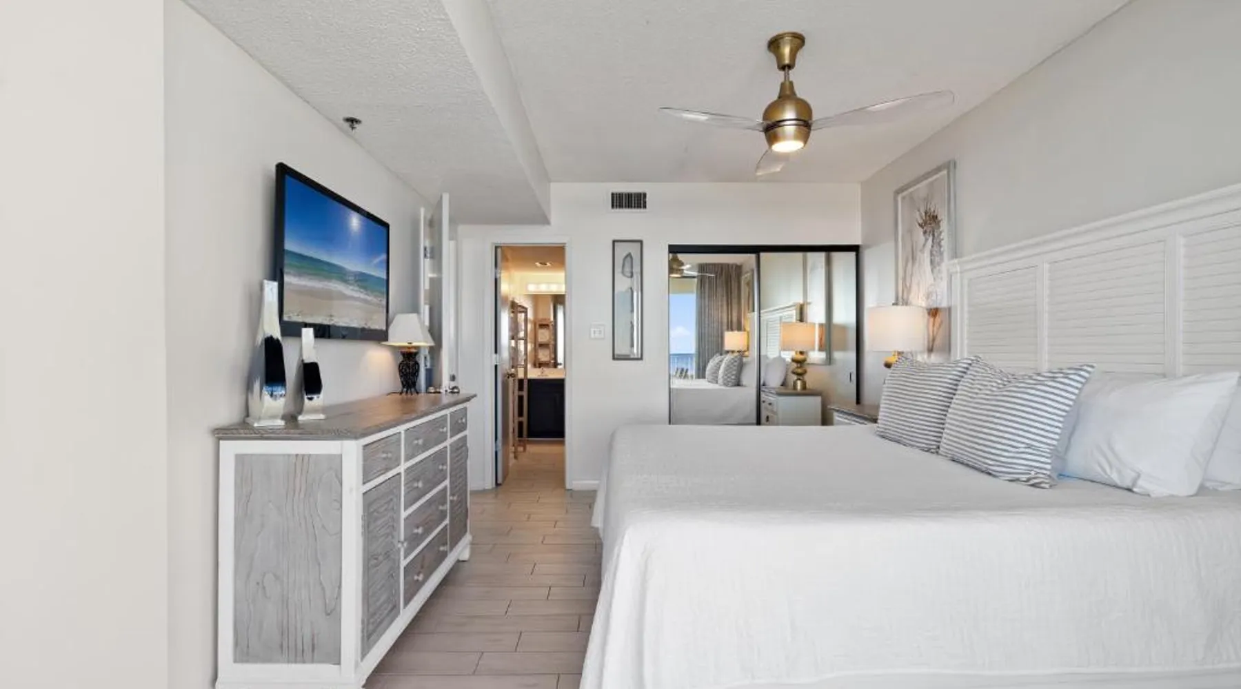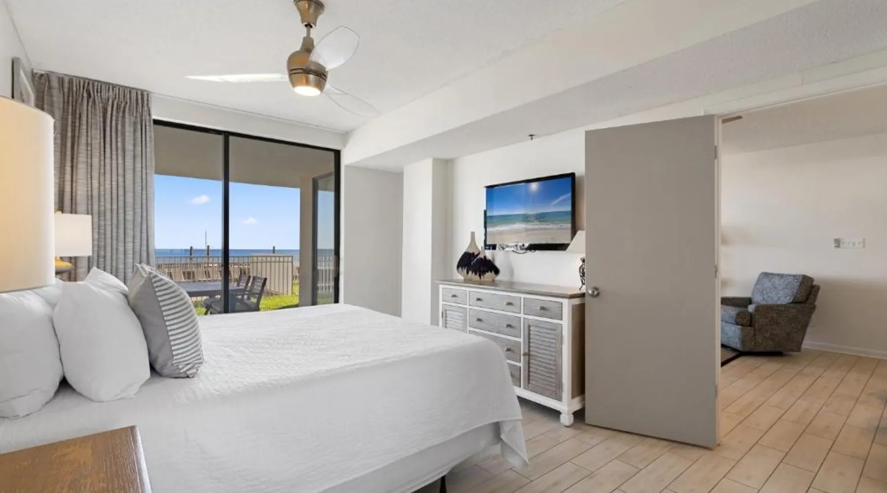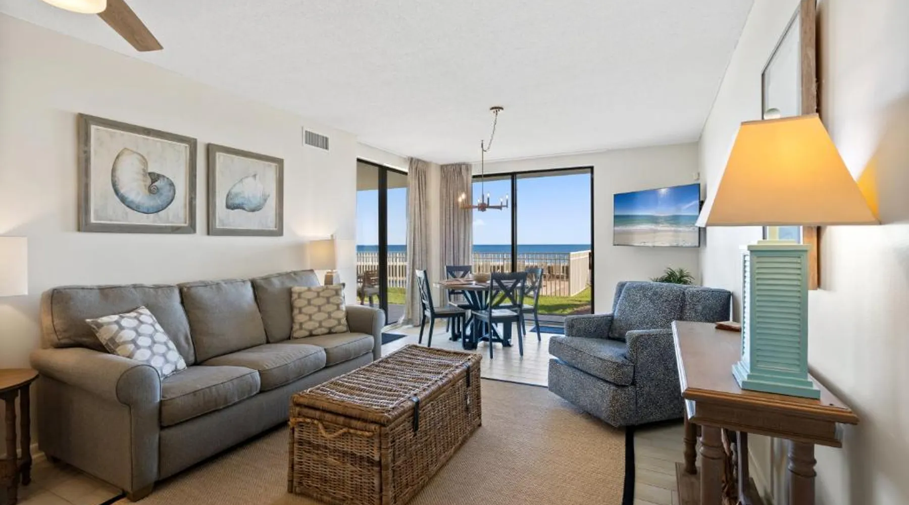 Beachfront Location: Romar Place 103 in Orange Beach offers direct beachfront access with stunning sea views. Guests can relax on the sandy shores or enjoy the inviting waters. Spa and Wellness: The holiday home features a spa and wellness center, indoor swimming pool, sauna, and hot tub. Free WiFi is available throughout the property, ensuring connectivity for all visitors. Leisure Facilities: Additional amenities include a fitness room, waterpark, and children’s playground. The spacious layout accommodates families comfortably, providing ample space for relaxation and entertainment. Nearby Attractions: Orange Beach is just a few steps away, while Gulf State Park Fishing Pier lies 3.7 mi from the property. Other attractions such as Alabama Gulf Coast Zoo and The Park at OWA are within 14 mi. Pensacola International Airport is 32 mi distant. Guests will find a stovetop, a refrigerator, a dishwasher and kitchenware in the well-equipped kitchen. The apartment also includes a barbecue. The spacious air-conditioned apartment features a TV with cable channels, a washing machine, a coffee machine, a dining area as well as sea views. The unit has 5 beds.