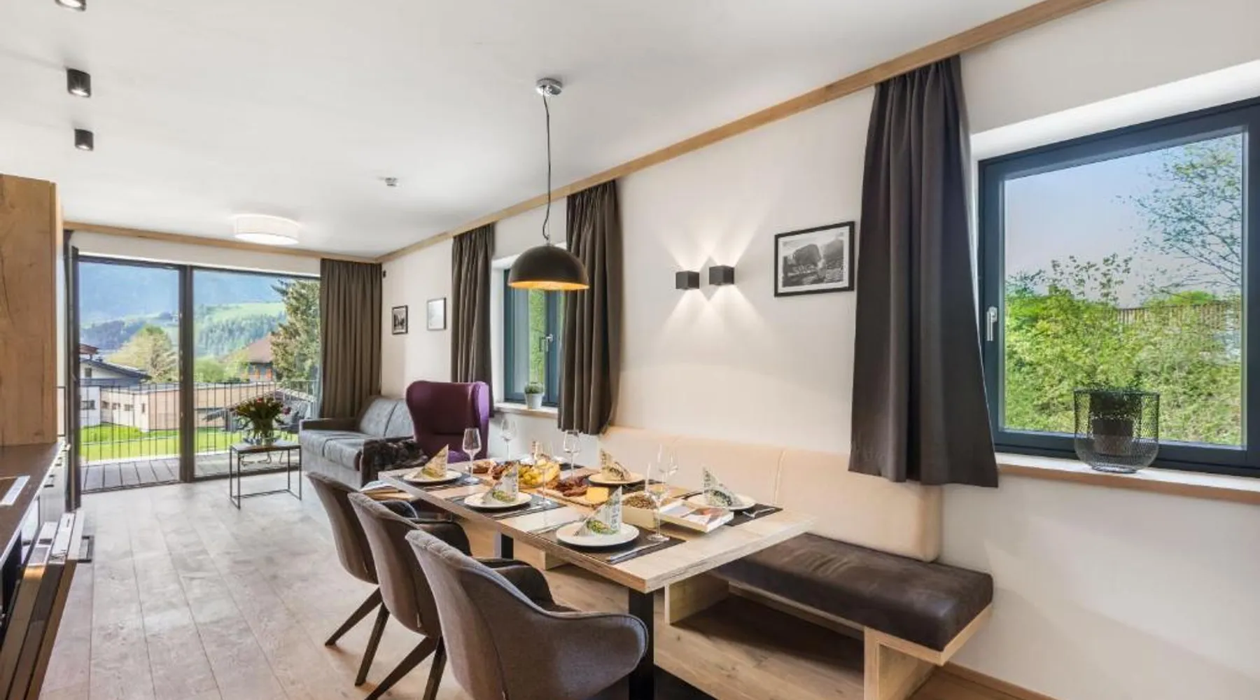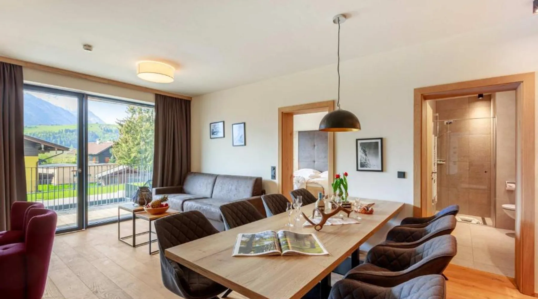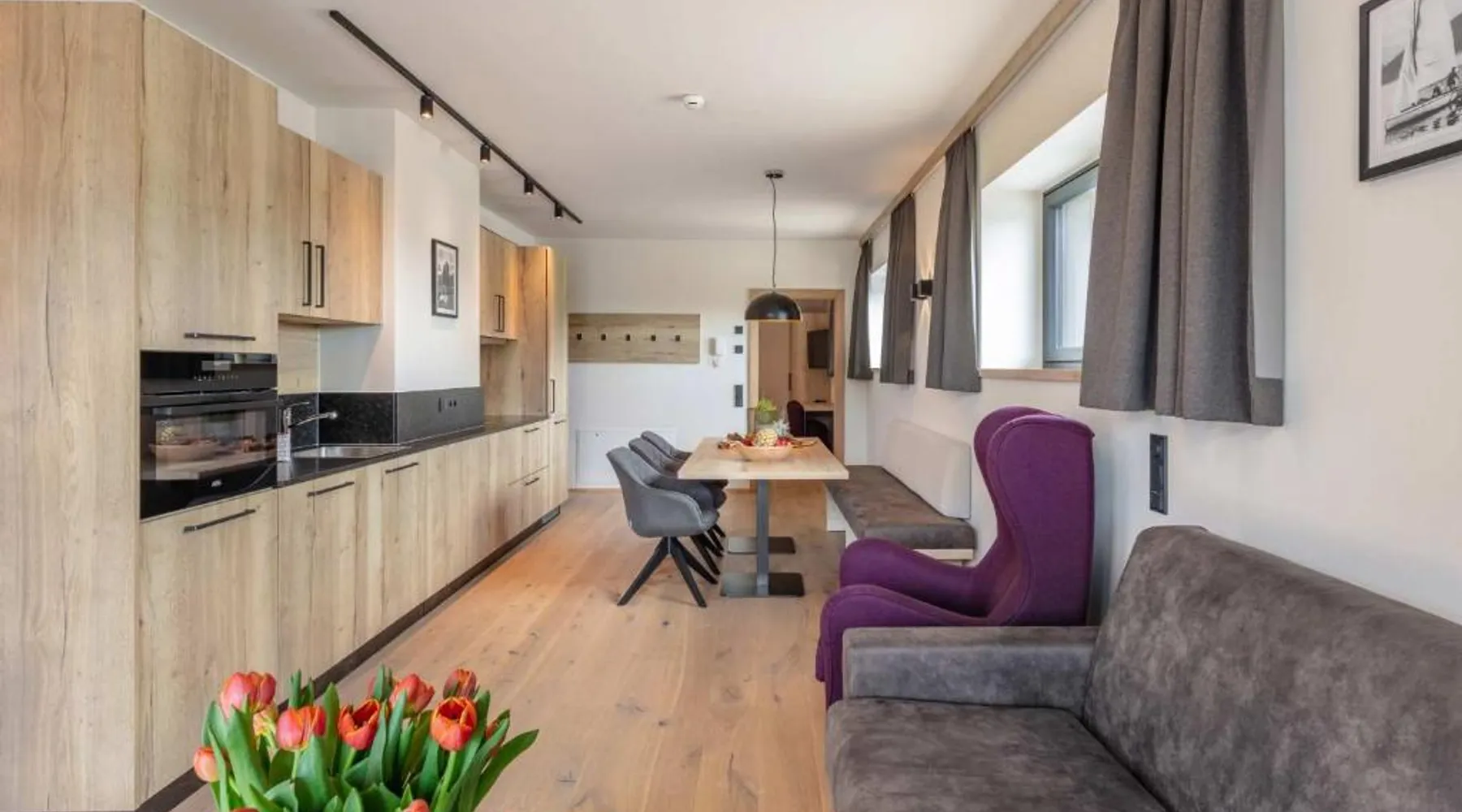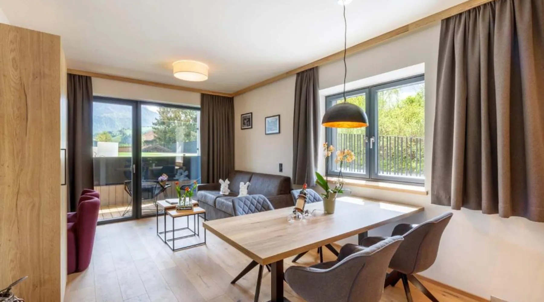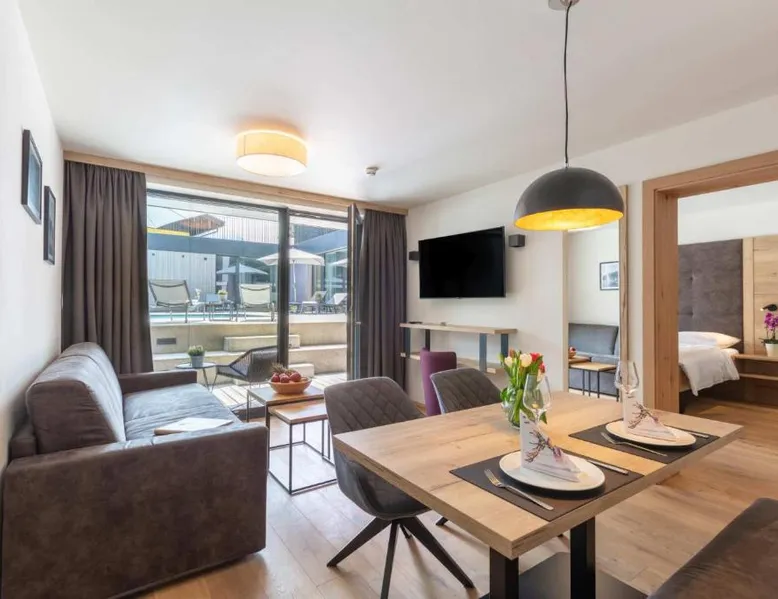 Comfortable Accommodations: Emma Deluxe Aparthotel in Piesendorf offers recently renovated aparthotel units with kitchenettes, private bathrooms, and modern amenities. Each apartment includes a dining area, work desk, and free WiFi. Leisure Facilities: Guests enjoy a year-round outdoor swimming pool, sun terrace, and lush garden. Additional facilities include a sauna, steam room, and fitness center. Free on-site private parking is available. Convenient Location: Located 63 mi from Salzburg W. A. Mozart Airport, the aparthotel is near winter sports attractions such as Zell am See-Kaprun Golf Course (1.7 mi) and Kaprun Castle (2.2 mi). Free toiletries and interconnected rooms enhance comfort. Guest Services: The aparthotel provides a paid shuttle service, lounge, minimarket, and electric vehicle charging station. Express check-in and check-out, ski storage, and bicycle parking are also available. This apartment features a seating area, dishwasher and kitchenware.
