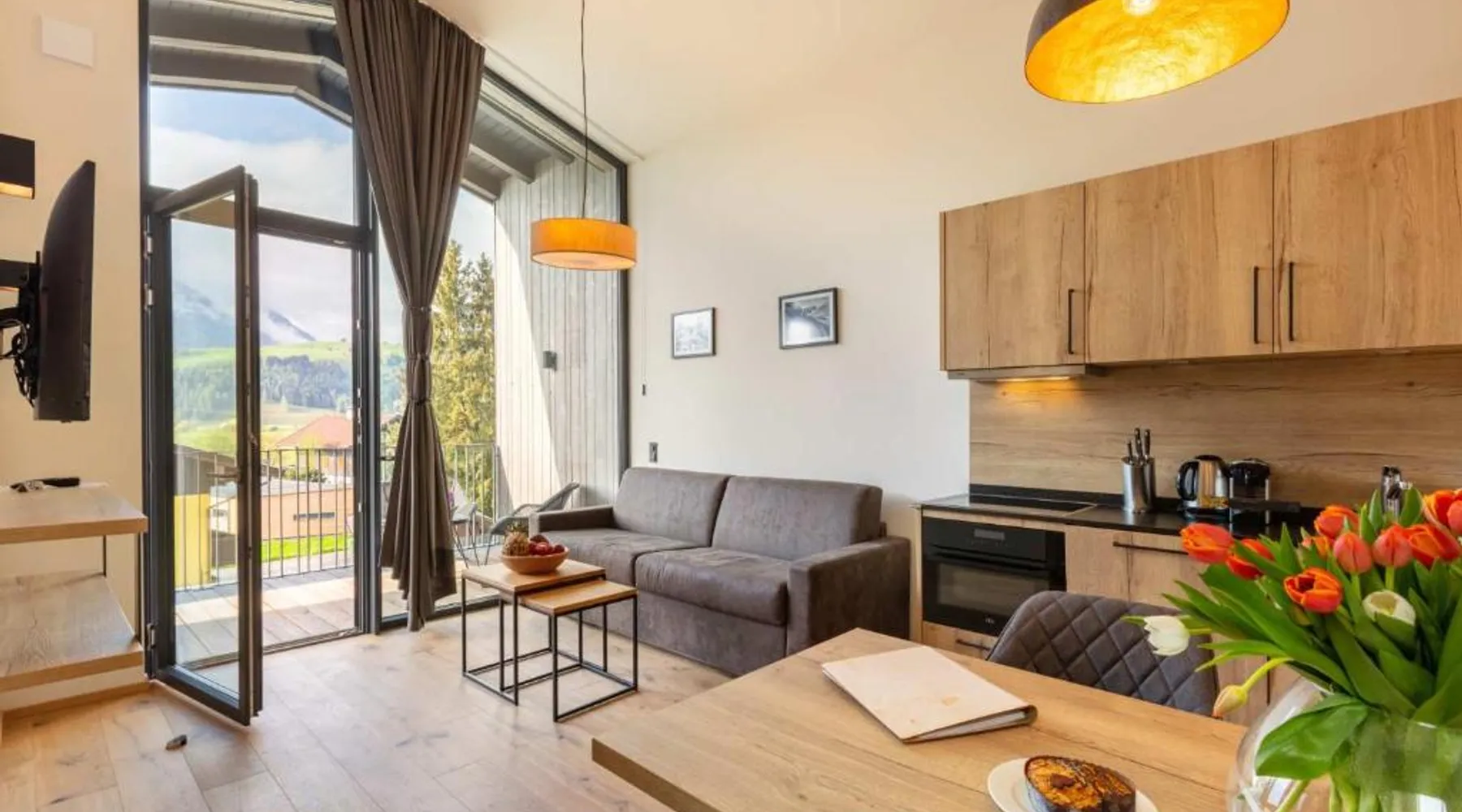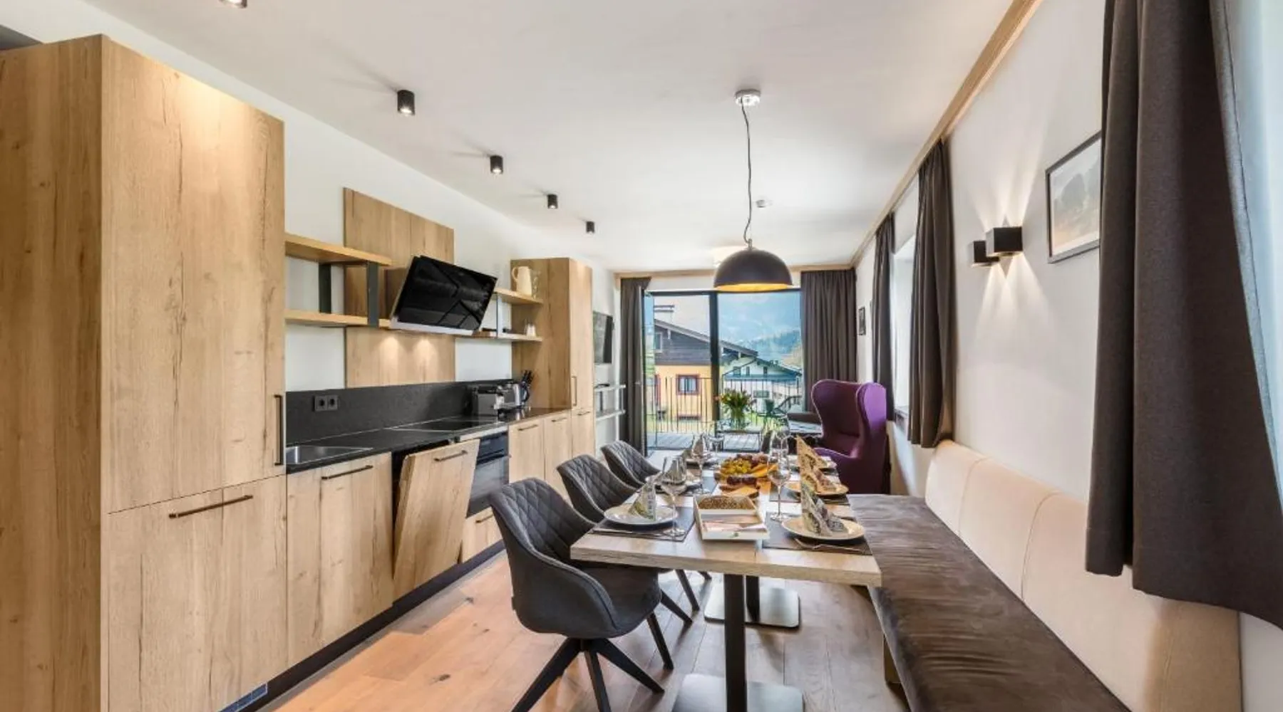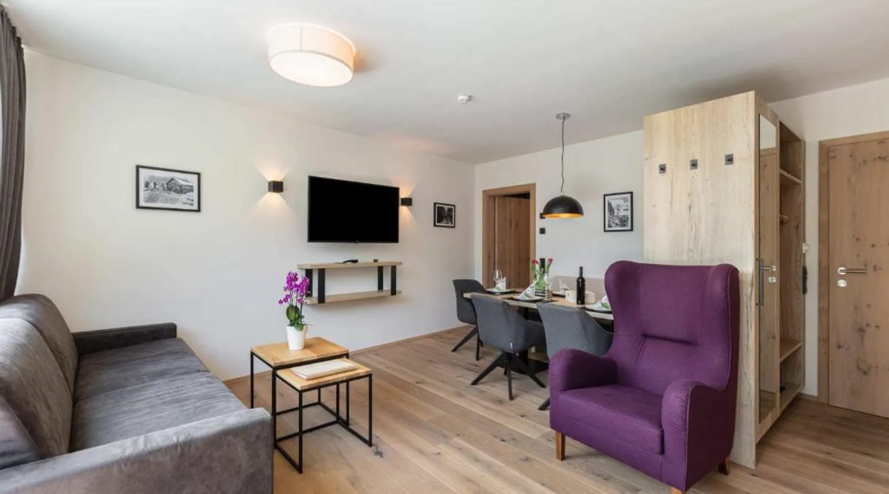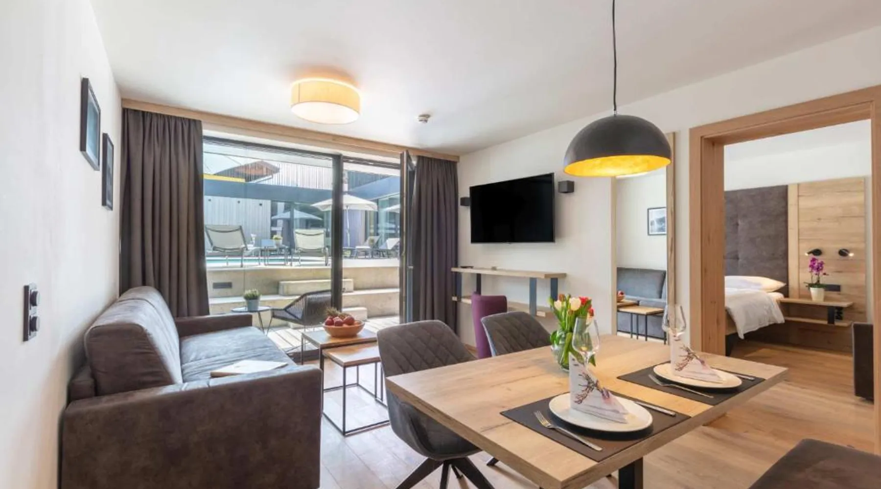 Comfortable Accommodations: Emma Deluxe Aparthotel in Piesendorf offers recently renovated aparthotel units with kitchenettes, private bathrooms, and modern amenities. Each apartment includes a dining area, work desk, and free WiFi. Leisure Facilities: Guests enjoy a year-round outdoor swimming pool, sun terrace, and lush garden. Additional facilities include a sauna, steam room, and fitness center. Free on-site private parking is available. Convenient Location: Located 63 mi from Salzburg W. A. Mozart Airport, the aparthotel is near winter sports attractions such as Zell am See-Kaprun Golf Course (1.7 mi) and Kaprun Castle (2.2 mi). Free toiletries and interconnected rooms enhance comfort. Guest Services: The aparthotel provides a paid shuttle service, lounge, minimarket, and electric vehicle charging station. Express check-in and check-out, ski storage, and bicycle parking are also available. This apartment features a seating area, dishwasher and kitchenware.