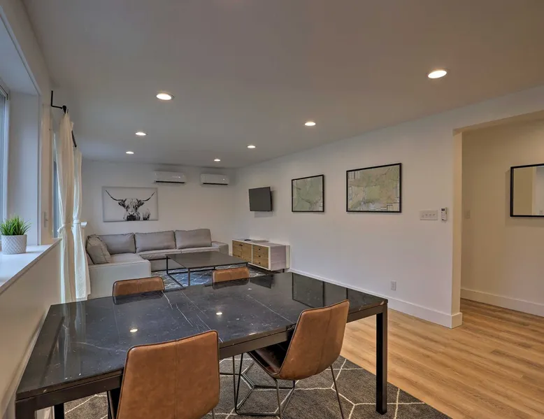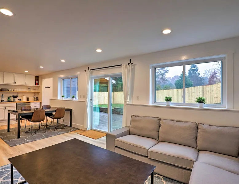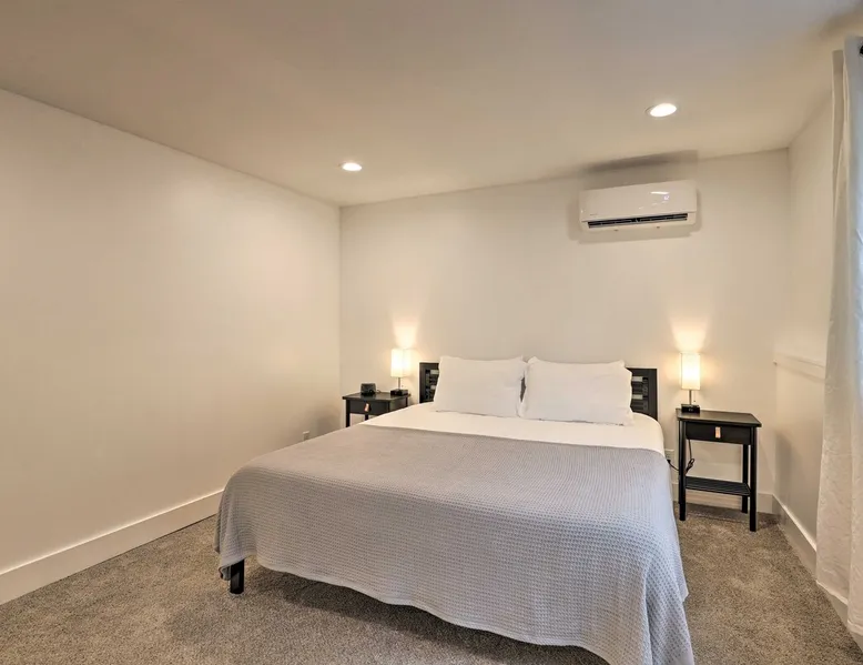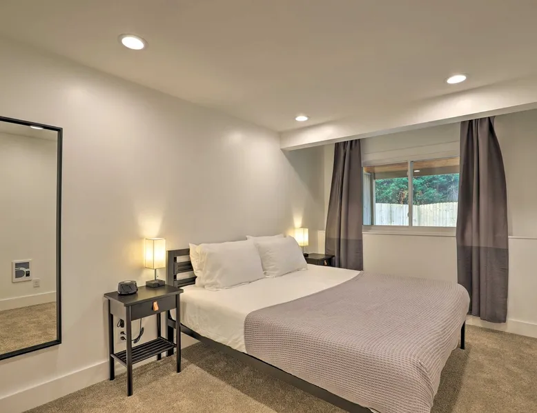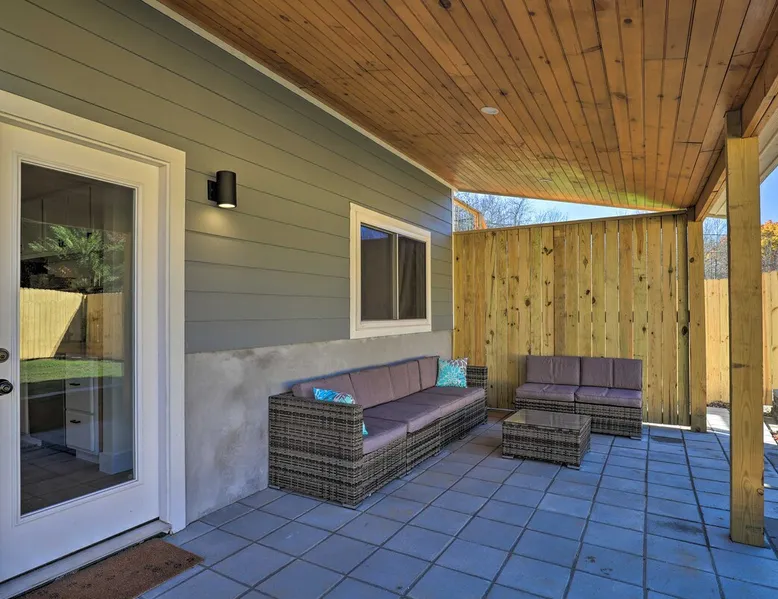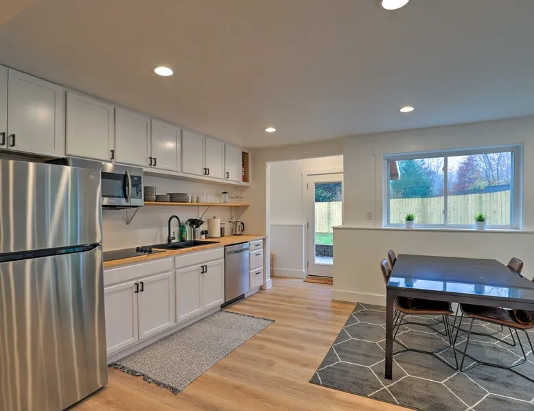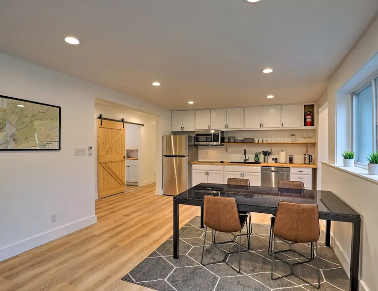 Everything you need in a short term rental. This newly renovated private basement apartment is the perfect home base for your mountain getaway. Features include: Private Entrance with Keyless Smart Lock, 2 King Bedrooms, 2 Bathrooms, Kitchen, Washer & Dryer, Private Patio, Smart TV, 2 Dedicated Parking Spaces, Fast Wifi and more. No Smoking Sorry No Pets Owner lives on-site in the main-floor unit directly above (some footsteps may be heard during daytime hours), quiet hours: 9:00 PM - 7:00AM The space Near Hiking Trails | Free WiFi | 1,100 Sq Ft Experience the best of Black Mountain from this centrally located apartment, perfect for a small family or 2 couples away on holiday! Bedroom 1: King Bed & Ensuite Bath | Bedroom 2: King Bed | Additional Sleeping: Pack ‘n Play LIVING SPACE: Open layout, Smart TV, dining table, desk/workspace, sound machines in each bedroom, backyard w/ furnished patio KITCHEN: Well-equipped, full-sized fridge, stovetop, dishwasher, microwave, coffee maker, electric kettle, dish-ware & glassware, high chair GENERAL: Heating & air conditioning, washer & dryer, linens & towels, keyless entry RULES: No Smoking, No Parties, Sorry No Pets Drive To Black Mountain = 2 Minutes Drive To Asheville = 20 Minutes FAQ: Owner lives on-site (main-floor unit directly above), quiet hours (9:00 PM - 7:00 AM) PARKING: Concrete parking slab (2 vehicles)