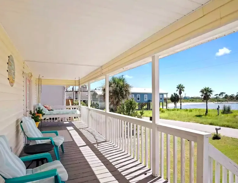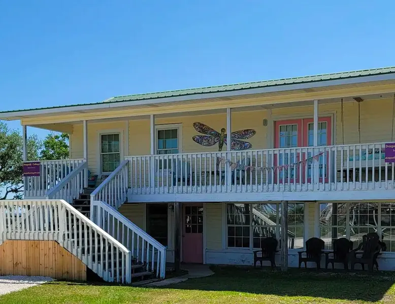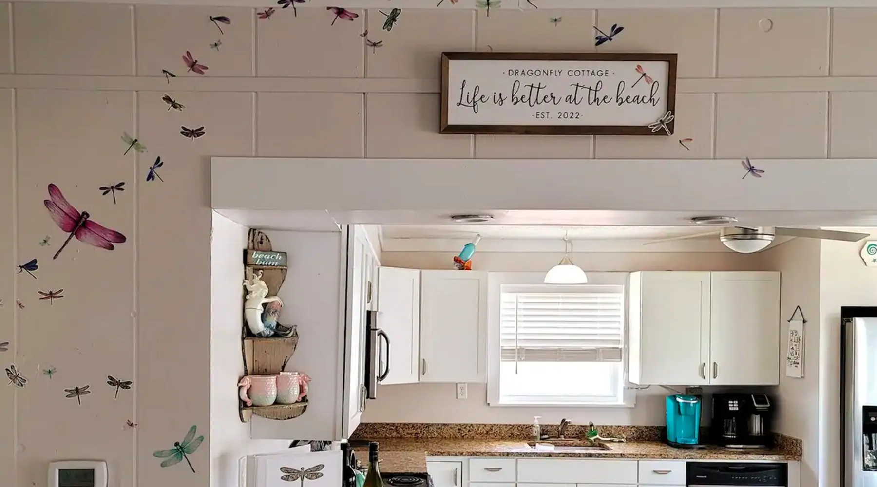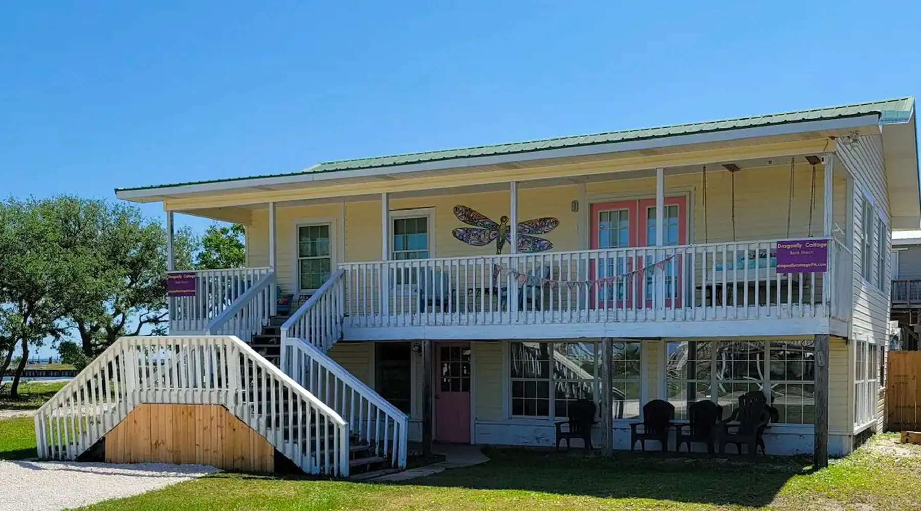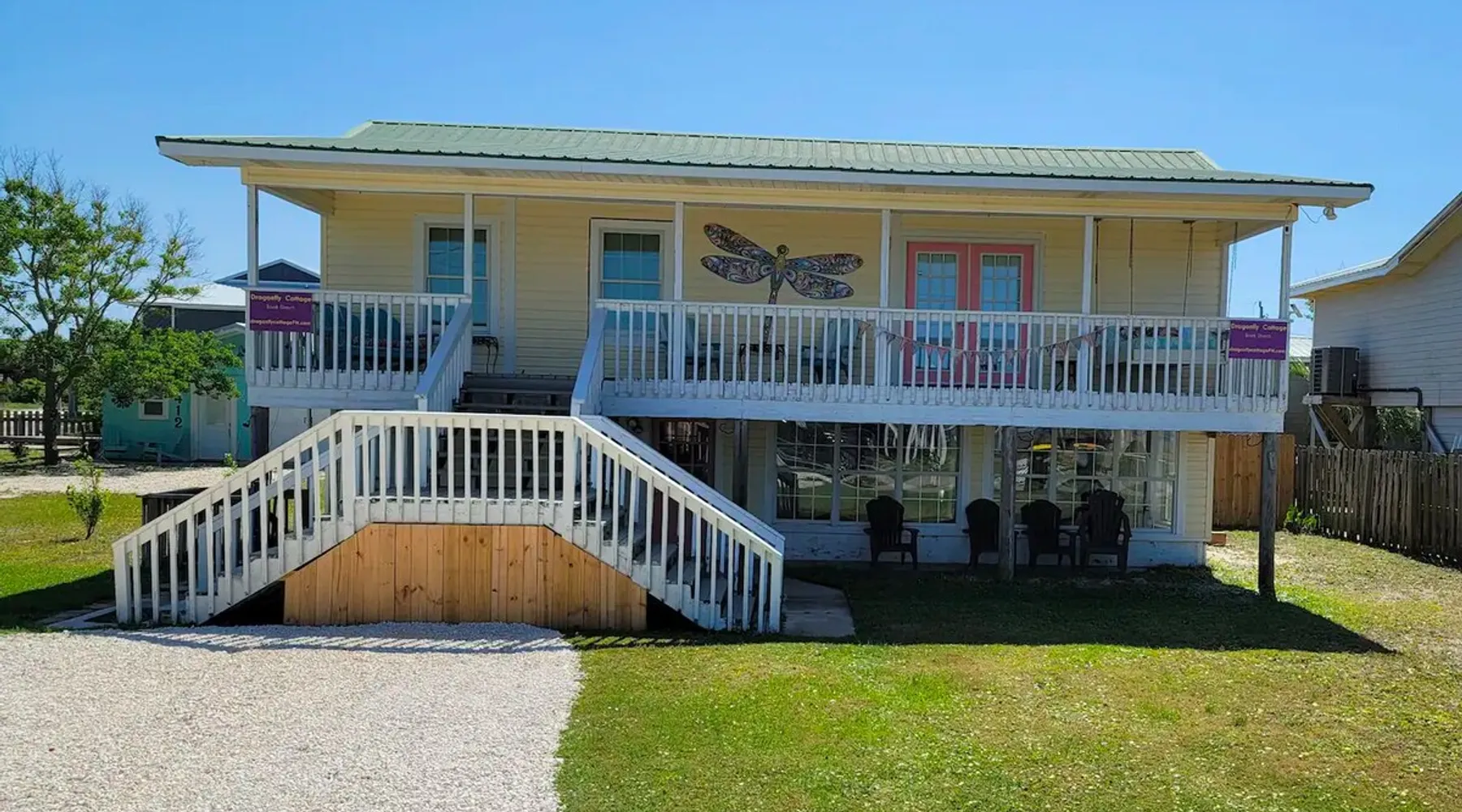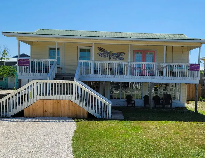The Dragonfly Cottage is nestled in beautiful Fort Morgan with stunning views of Mobile Bay & just a short walk to the beach! Escape your worries and relax in this newly renovated 2 + bed/1 bath home. This charming house is perfect after a day in the sun! Fort Morgan is a truly special location, boasting clear waters, white sand beaches, a Civil War Historic site, Mobile Bay Ferry to Dauphin Island, a marina, two amazing golf courses, Bon Secour Nature Preserve, and five restaurants. The space The Dragonfly Cottage is nestled in beautiful Fort Morgan with stunning views of Mobile Bay & just a short walk to the beach! Escape your worries and relax in this newly renovated 2 + bed/1 bath home. This charming house is perfect after a day in the sun! Fort Morgan is a truly special location, boasting clear waters, white sand beaches, a Civil War Historic site, Mobile Bay Ferry to Dauphin Island, a marina, two amazing golf courses, Bon Secour Nature Preserve, and five restaurants. Start your vacation as soon as you arrive with a keyless entry for quick & easy check-in, drop your bags in the open living room then walk back out on the porch for the bay view overlooking the Navy Cove Oyster beds! The oysters harvested practically in the front yard are served right down the road at the Sassy Bass Grill, talk about fresh & local! Back inside the Dragonfly Cottage, you'll find an updated kitchen with full-size stainless steel appliances stocked with everything from cookware & utensils to an ice maker & blender. Enjoy a delicious meal after beachin' it all day (the beach is roughly a five min walk away, or you can rent a golf cart for your stay) at the four-seat high-top table, the two stools at the peninsula, or at the outside back table we already mentioned. Guest access There is a keyless entry lock on the front door. Please note there is one flight of stairs into the Dragonfly Cottage so unfortunately, this might not be a good fit for guests with physical limitations. You will not have access to the space under the house and on Monday nights there may be one guest staying downstairs. Totally separate access/space.