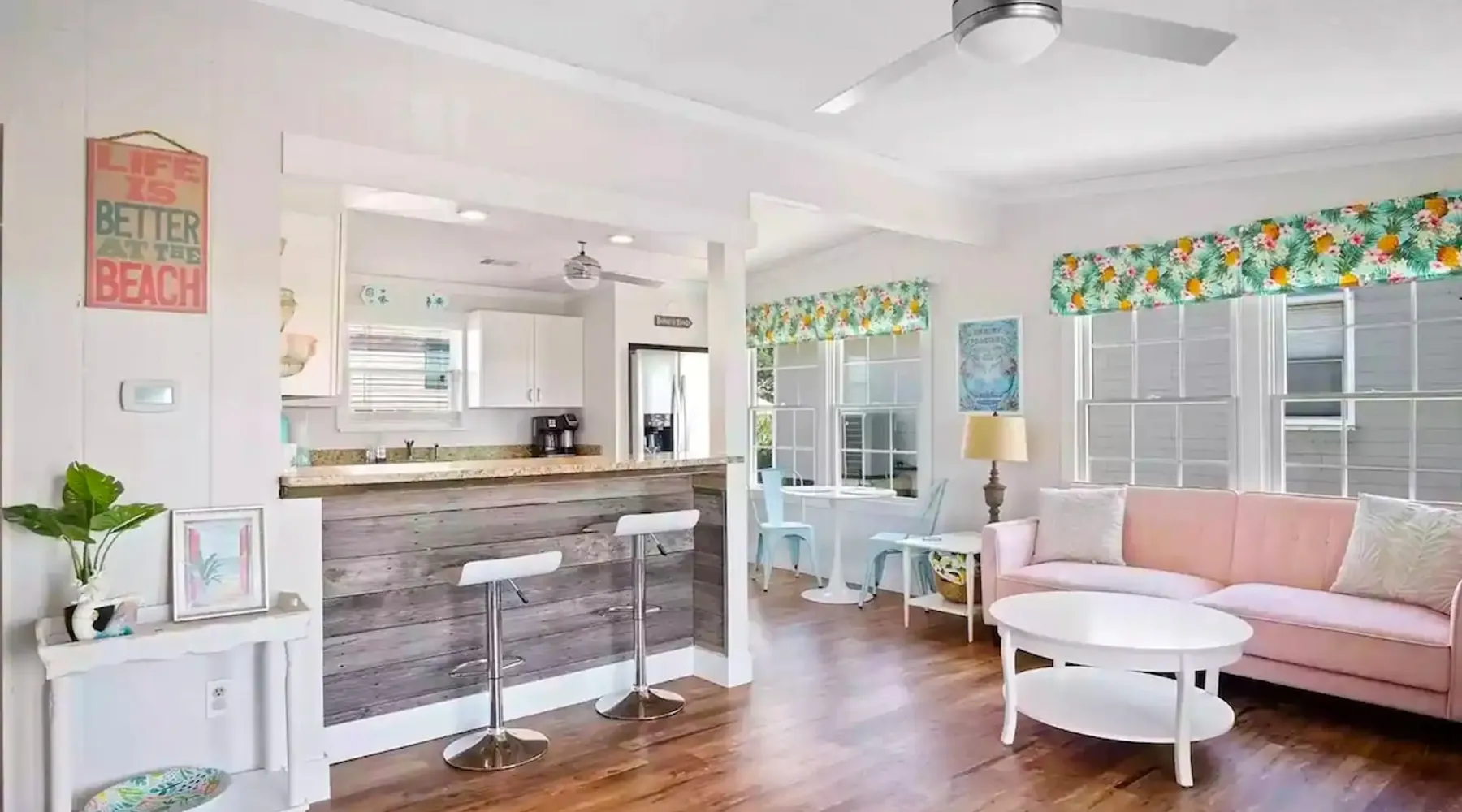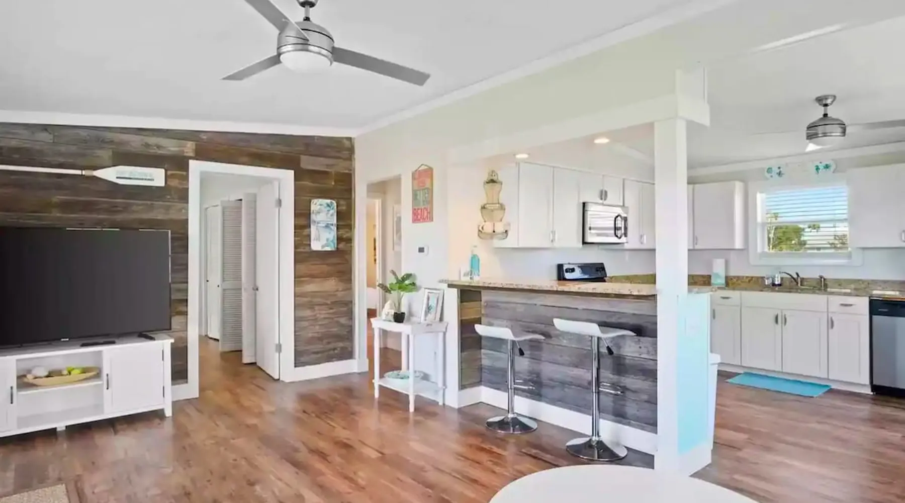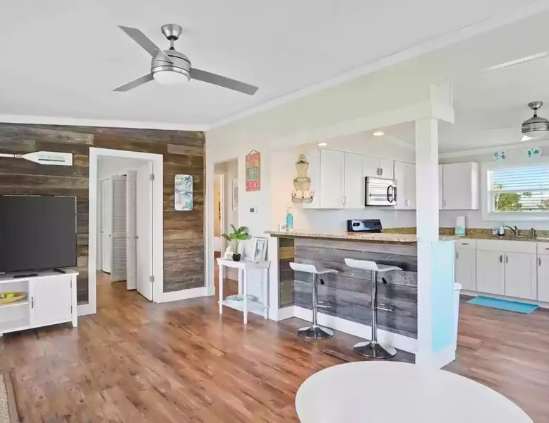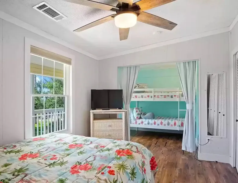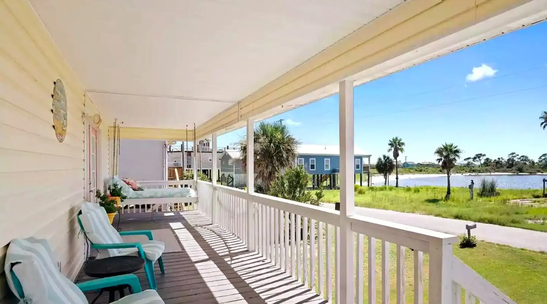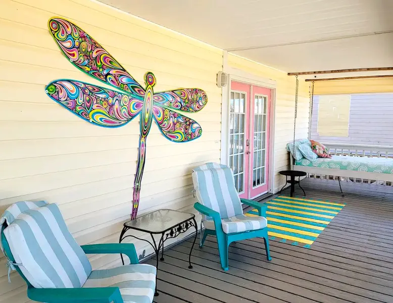 The Dragonfly Cottage is nestled in beautiful Fort Morgan with stunning views of Mobile Bay & just a short walk to the beach! Escape your worries and relax in this newly renovated 2 + bed/1 bath home. This charming house is perfect after a day in the sun! Fort Morgan is a truly special location, boasting clear waters, white sand beaches, a Civil War Historic site, Mobile Bay Ferry to Dauphin Island, a marina, two amazing golf courses, Bon Secour Nature Preserve, and five restaurants. The space The Dragonfly Cottage is nestled in beautiful Fort Morgan with stunning views of Mobile Bay & just a short walk to the beach! Escape your worries and relax in this newly renovated 2 + bed/1 bath home. This charming house is perfect after a day in the sun! Fort Morgan is a truly special location, boasting clear waters, white sand beaches, a Civil War Historic site, Mobile Bay Ferry to Dauphin Island, a marina, two amazing golf courses, Bon Secour Nature Preserve, and five restaurants. Start your vacation as soon as you arrive with a keyless entry for quick & easy check-in, drop your bags in the open living room then walk back out on the porch for the bay view overlooking the Navy Cove Oyster beds! The oysters harvested practically in the front yard are served right down the road at the Sassy Bass Grill, talk about fresh & local! Back inside the Dragonfly Cottage, you'll find an updated kitchen with full-size stainless steel appliances stocked with everything from cookware & utensils to an ice maker & blender. Enjoy a delicious meal after beachin' it all day (the beach is roughly a five min walk away, or you can rent a golf cart for your stay) at the four-seat high-top table, the two stools at the peninsula, or at the outside back table we already mentioned. Guest access There is a keyless entry lock on the front door. Please note there is one flight of stairs into the Dragonfly Cottage so unfortunately, this might not be a good fit for guests with physical limitations. You will not have access to the space under the house and on Monday nights there may be one guest staying downstairs. Totally separate access/space.