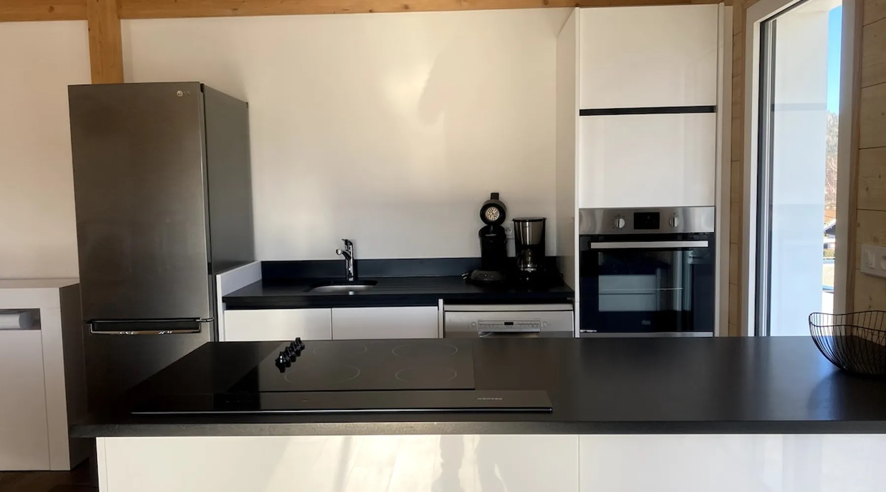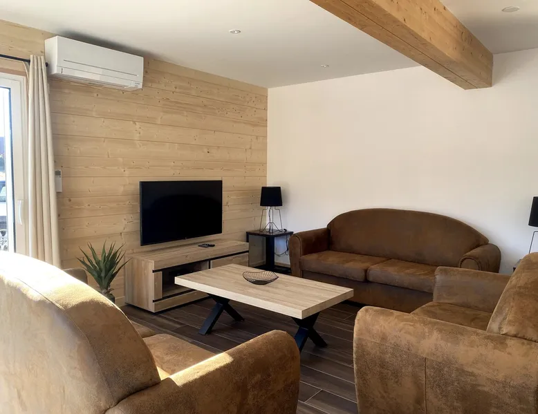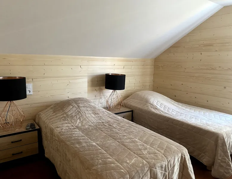 Our Chalet Jersey will live up to your expectations, it is spacious, friendly, stylish. This 130 m2 chalet can accommodate up to eight people. Ideally located, you can enjoy its calm, its relaxing panorama and its geographical location close to the city center or walking. The space The chalet is composed on the ground floor: - an equipped kitchen that gives access to the living room, outdoor terrace with table, barbecue, umbrella and four deckchairs and toilet at the entrance. - 2 bedrooms on the ground floor: a 160 x 200 double bed and a PMR shower room with a toilet, a second bedroom with two 90 x 190 single beds and a bathroom. upstairs: - 1 bedroom with a double bed 160x200, and its shower room. - 1 bedroom with two single beds 90x190 and its shower room. - 1 toilet Guest access You have the entire cottage to yourself. Other things to note We only rent from Saturday to Saturday Additional fees (upon request): End of stay cleaning: €95 You will not find any cleaning products in this cottage, the wood for the fireplace is not provided.