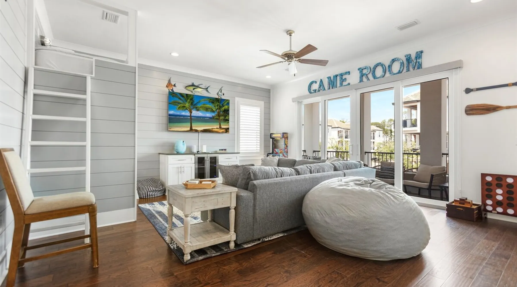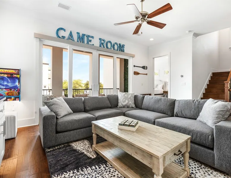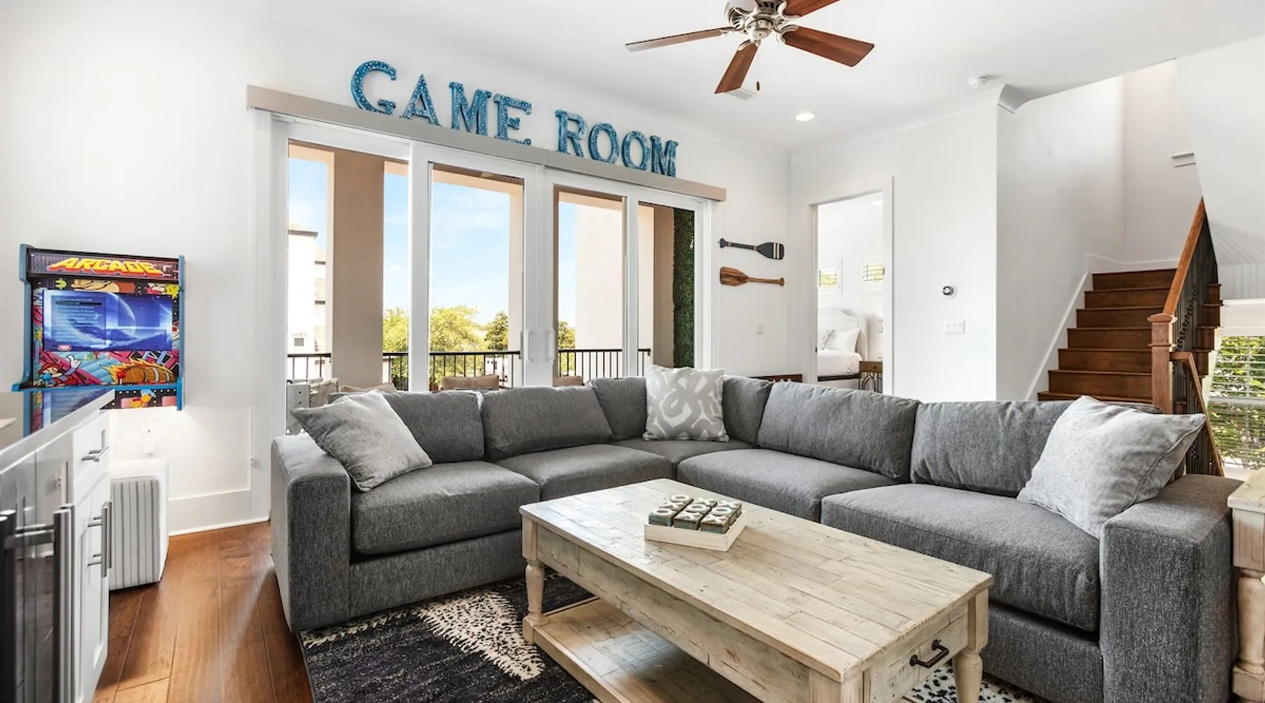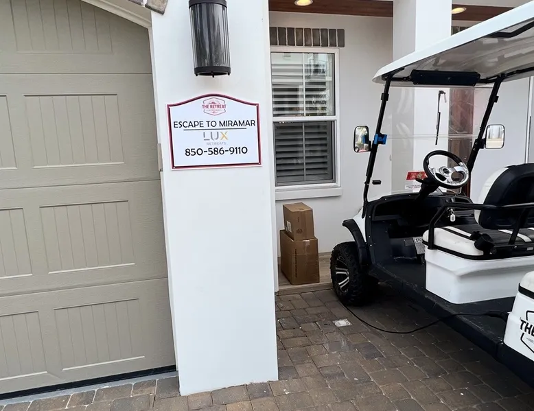 Discover the ultimate coastal getaway at our beachside property, designed to comfortably accommodate up to 14 guests with six spacious bedrooms and bathrooms. Dive into relaxation in the stunning 90-foot heated pool or enjoy family fun with our custom-built arcade and other provided family-friendly games. Explore the area using the complimentary luxury six-seater golf cart, perfect for quick beach trips, shopping excursions, and dining at nearby restaurants. Your perfect vacation starts here! The space Experience ultimate beachside luxury at our spacious retreat in the exclusive “Retreat at Miramar” community. Enjoy top-notch amenities, including living and game rooms with 75” 8K TVs, a bespoke arcade machine, and a foosball table. A complimentary deluxe six-seater golf cart makes it easy to reach Miramar Beach’s largest public access in just two minutes. Relax by the stunning 90ft private pool, and take advantage of the large lounge area with seven charcoal grills (free charcoal included) and five widescreen TVs. Don’t miss the peaceful catch-and-release fishing pond just behind the pavilion, perfect for unwinding after a day of fun. Guest access The driveway can easily fit up to four vehicles. If you need more parking, kindly utilize the designated community parking areas. It's important not to block sidewalks or park on the street under any circumstances. Other things to note Brand New! -2x 8K 75" QLED Televisions (Including Apple TV's) -5x 4K 65" Televisions -Kettler full size foosball game table -Large Sized games: Jenga, Yahtzee, and Connect Four -Digital Concierge Interface -Living Room Sectional Couch -Game Room Sectional Couch & Bean Bags -1Gbps Internet w/ commercial grade high-performance networking -Espresso Machine -Kitchen cookware including baking pans, skillets, pots, cooking tools