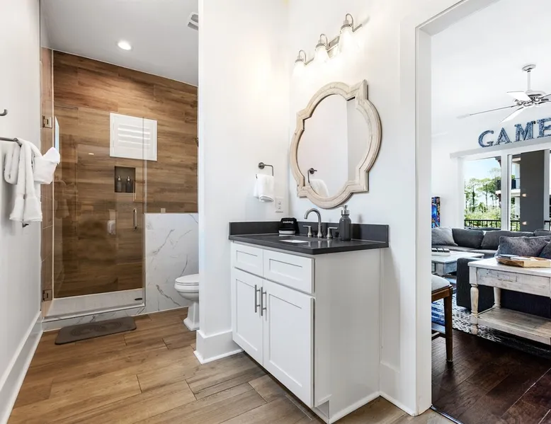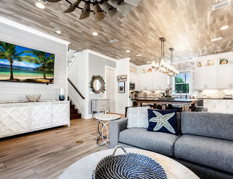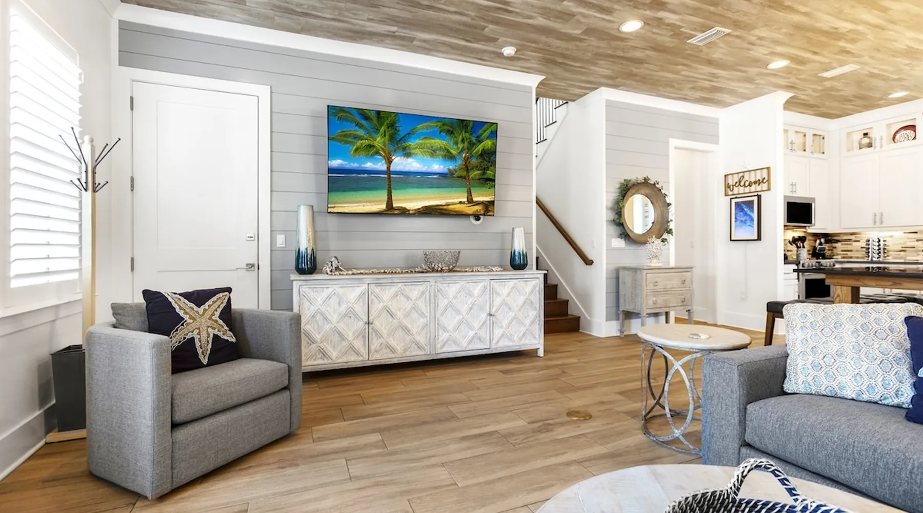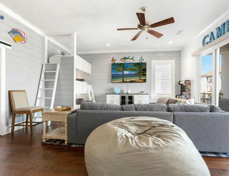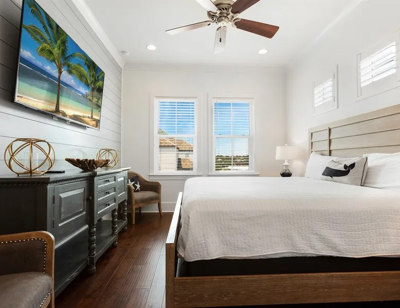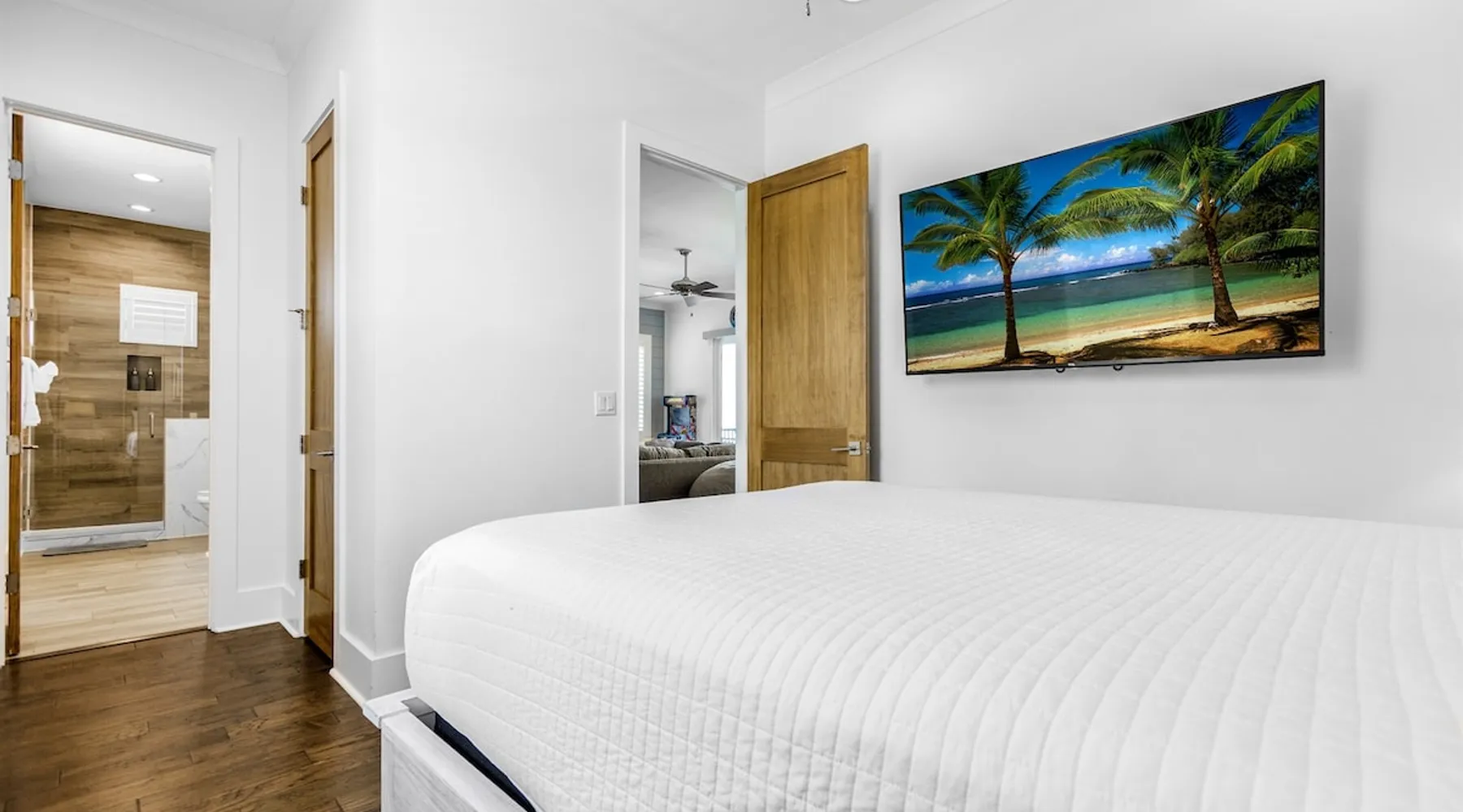 Discover the ultimate coastal getaway at our beachside property, designed to comfortably accommodate up to 14 guests with six spacious bedrooms and bathrooms. Dive into relaxation in the stunning 90-foot heated pool or enjoy family fun with our custom-built arcade and other provided family-friendly games. Explore the area using the complimentary luxury six-seater golf cart, perfect for quick beach trips, shopping excursions, and dining at nearby restaurants. Your perfect vacation starts here! The space Experience ultimate beachside luxury at our spacious retreat in the exclusive “Retreat at Miramar” community. Enjoy top-notch amenities, including living and game rooms with 75” 8K TVs, a bespoke arcade machine, and a foosball table. A complimentary deluxe six-seater golf cart makes it easy to reach Miramar Beach’s largest public access in just two minutes. Relax by the stunning 90ft private pool, and take advantage of the large lounge area with seven charcoal grills (free charcoal included) and five widescreen TVs. Don’t miss the peaceful catch-and-release fishing pond just behind the pavilion, perfect for unwinding after a day of fun. Guest access The driveway can easily fit up to four vehicles. If you need more parking, kindly utilize the designated community parking areas. It's important not to block sidewalks or park on the street under any circumstances. Other things to note Brand New! -2x 8K 75" QLED Televisions (Including Apple TV's) -5x 4K 65" Televisions -Kettler full size foosball game table -Large Sized games: Jenga, Yahtzee, and Connect Four -Digital Concierge Interface -Living Room Sectional Couch -Game Room Sectional Couch & Bean Bags -1Gbps Internet w/ commercial grade high-performance networking -Espresso Machine -Kitchen cookware including baking pans, skillets, pots, cooking tools