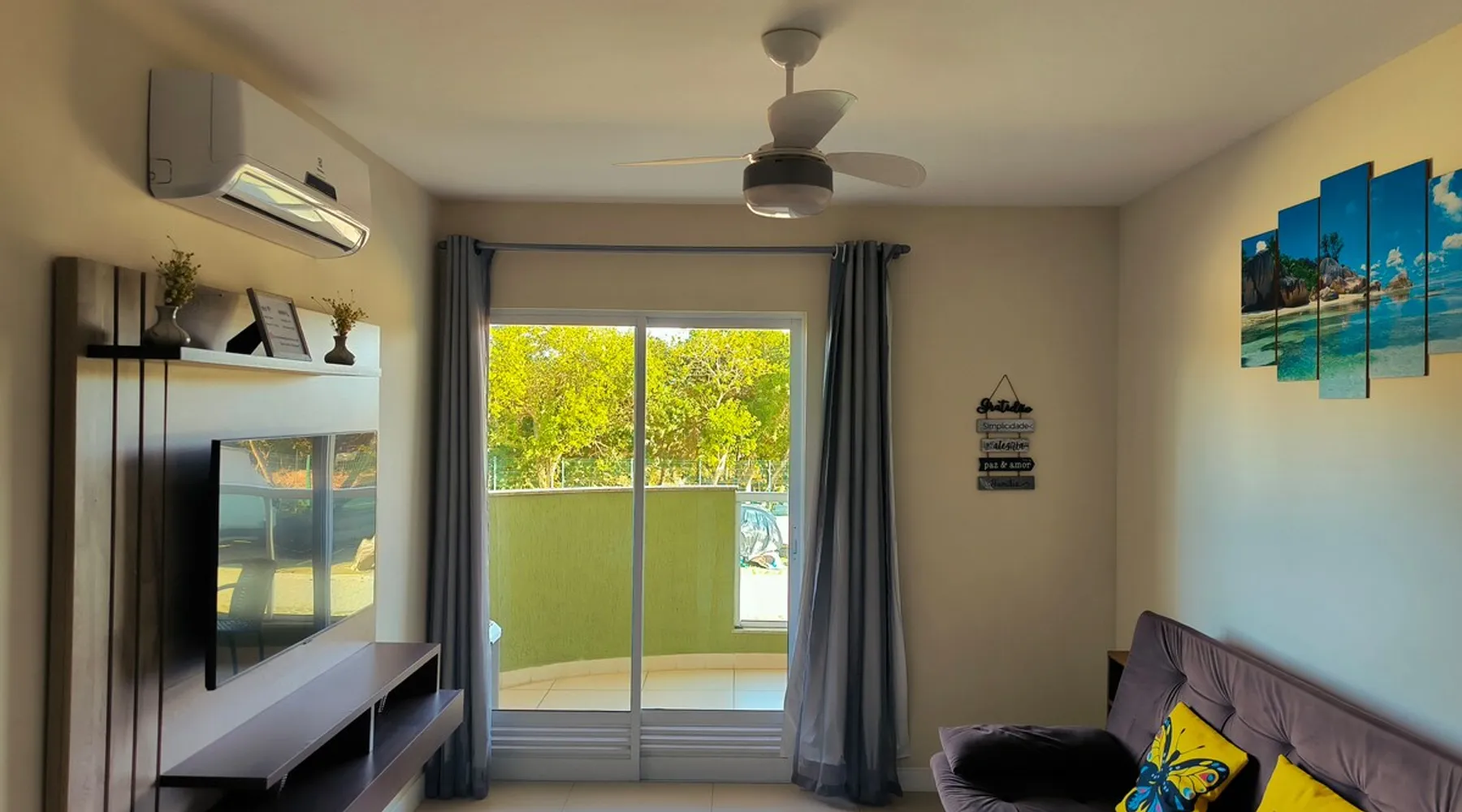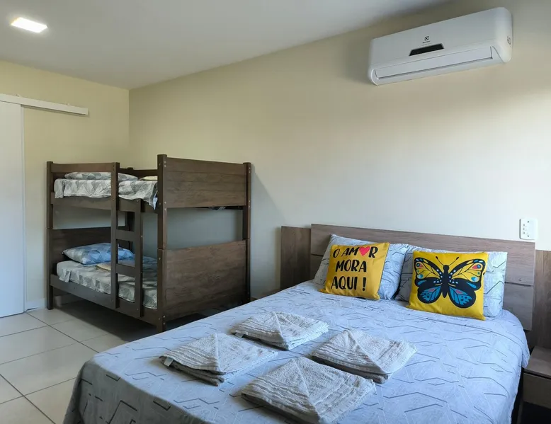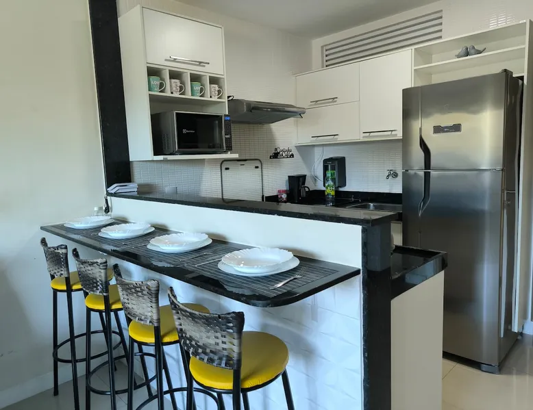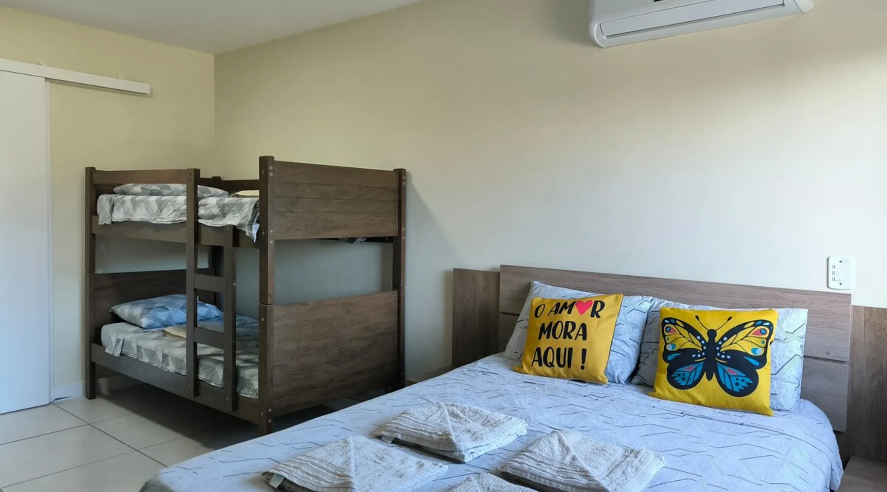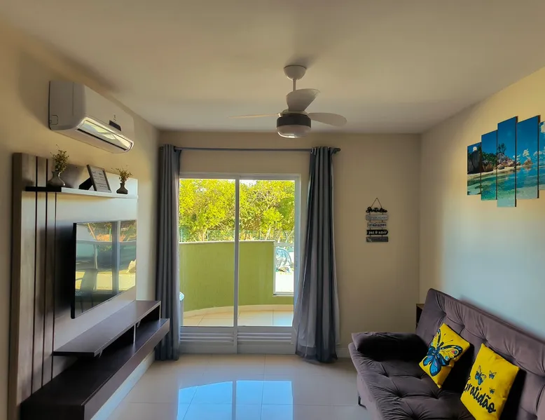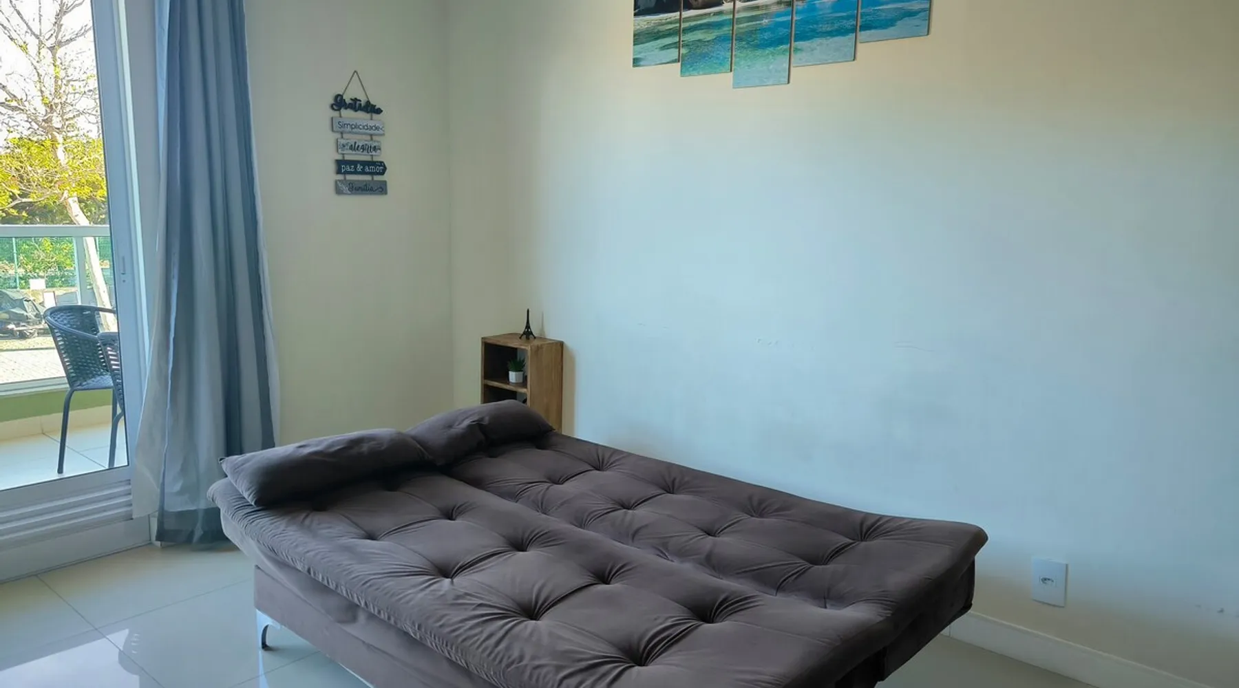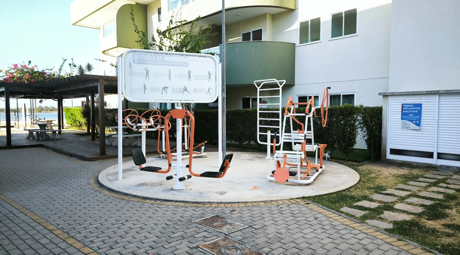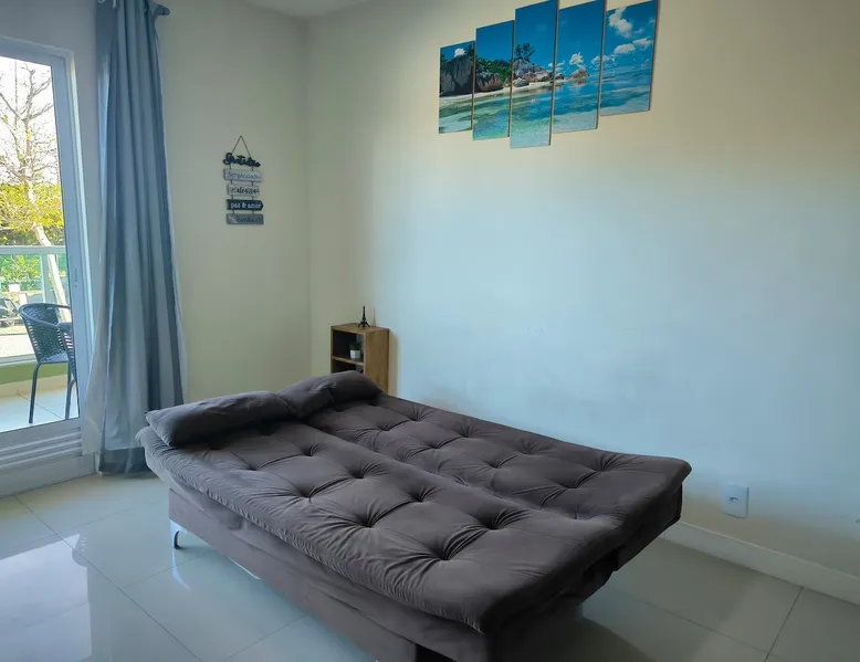 Refinement and beauty in a luxury condominium, with a pool facing the lagoon and about 750 meters from the sea. Towels and bed linen are available. Free parking for 1 car, 24-hour concierge, restaurant, bar, swimming pools (adult and children's), children's playground, gym, sauna, game room and more. Complete apartment, with equipped kitchen and air conditioning in the living room and bedroom. Famous beaches of Arraial do Cabo (like Praia Grande, Prainha..) just 10km away! The space Private apartment with 1 bedroom, with double bed and bunk bed (2 single beds) and sofa bed in the living room, thus accommodating up to 6 people. Air-conditioning in the living room and bedroom. Golden Lake has a swimming pool (adult and children), sauna, gym, game room, kids area, barbecue, gourmet space (with oven for baking pizzas among others), mini movie theater, among other items. OBS: To use the barbecue and gourmet space it is necessary to make a reservation next to the reception and make the additional payment of R$50 (second-fifth) or R$100 (Friday-doming) for a time (10h-14h or 17h-22h). Guest access After collecting some additional information, the data is sent to the front desk. At the time of entry, the reception confirms the documents and hand over the keys. Other things to note The barbecue and pizzeria area are paid separately with the condominium. Kayak rentals are also available, rented and paid for at the local restaurant. Access is easy and keys are picked up at the reception.