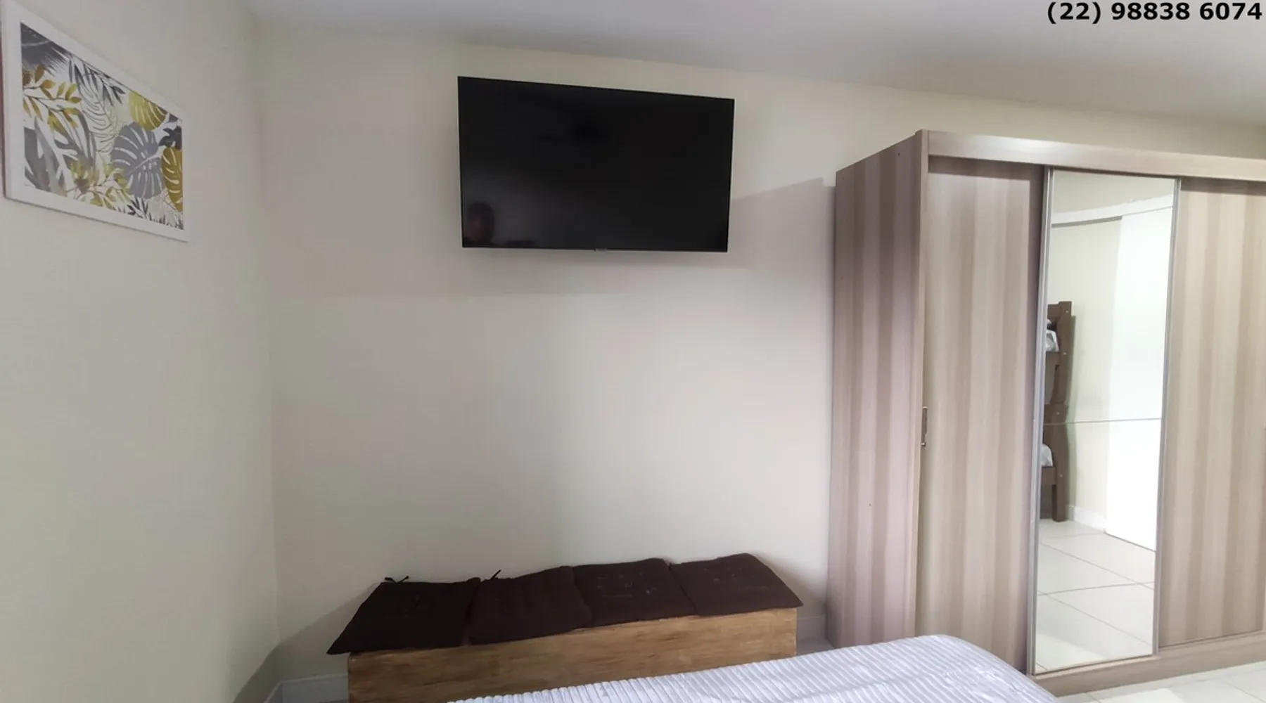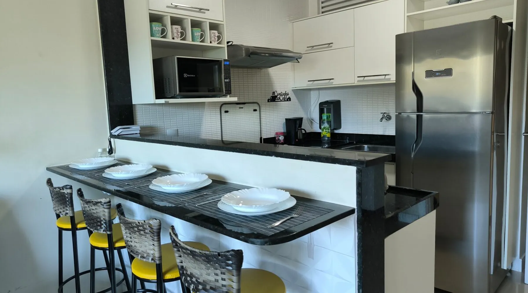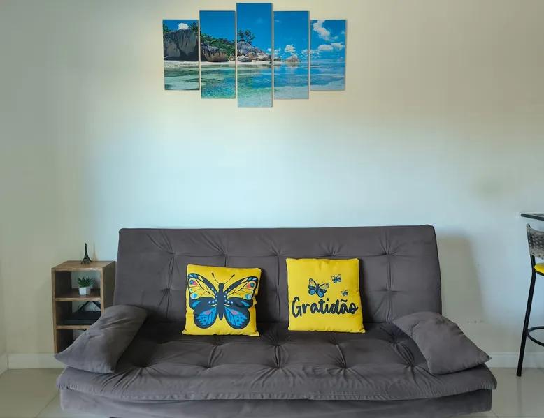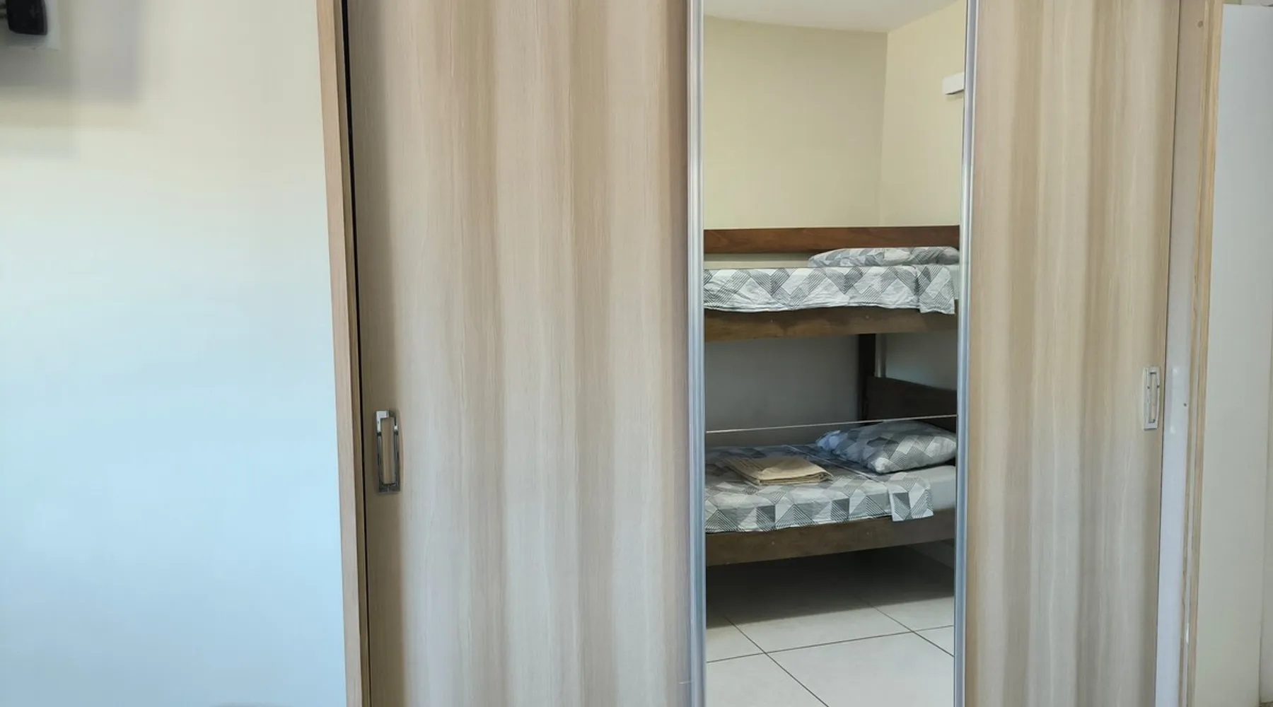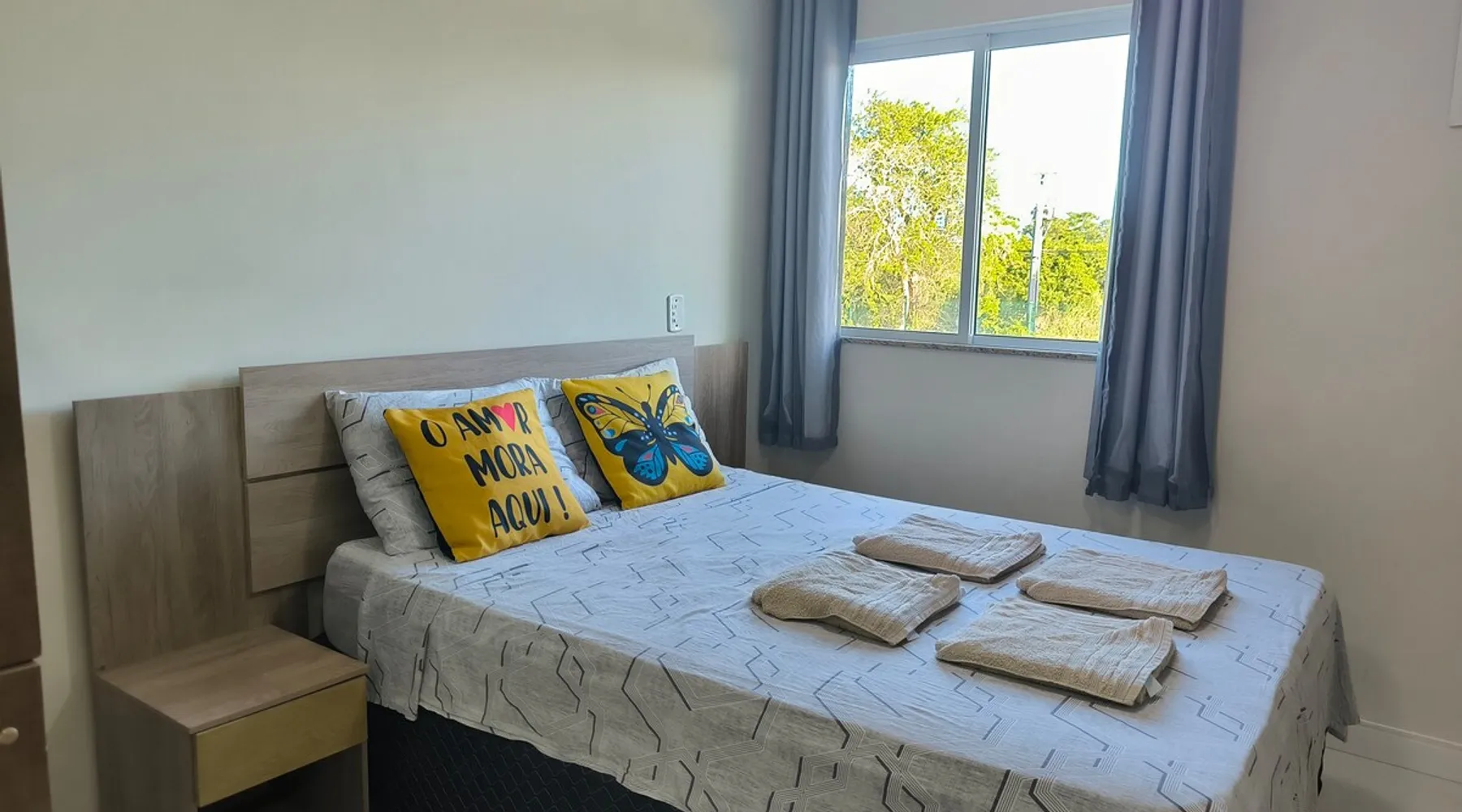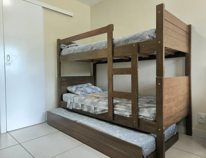 Refinement and beauty in a luxury condominium, with a pool facing the lagoon and about 750 meters from the sea. Towels and bed linen are available. Free parking for 1 car, 24-hour concierge, restaurant, bar, swimming pools (adult and children's), children's playground, gym, sauna, game room and more. Complete apartment, with equipped kitchen and air conditioning in the living room and bedroom. Famous beaches of Arraial do Cabo (like Praia Grande, Prainha..) just 10km away! The space Private apartment with 1 bedroom, with double bed and bunk bed (2 single beds) and sofa bed in the living room, thus accommodating up to 6 people. Air-conditioning in the living room and bedroom. Golden Lake has a swimming pool (adult and children), sauna, gym, game room, kids area, barbecue, gourmet space (with oven for baking pizzas among others), mini movie theater, among other items. OBS: To use the barbecue and gourmet space it is necessary to make a reservation next to the reception and make the additional payment of R$50 (second-fifth) or R$100 (Friday-doming) for a time (10h-14h or 17h-22h). Guest access After collecting some additional information, the data is sent to the front desk. At the time of entry, the reception confirms the documents and hand over the keys. Other things to note The barbecue and pizzeria area are paid separately with the condominium. Kayak rentals are also available, rented and paid for at the local restaurant. Access is easy and keys are picked up at the reception.