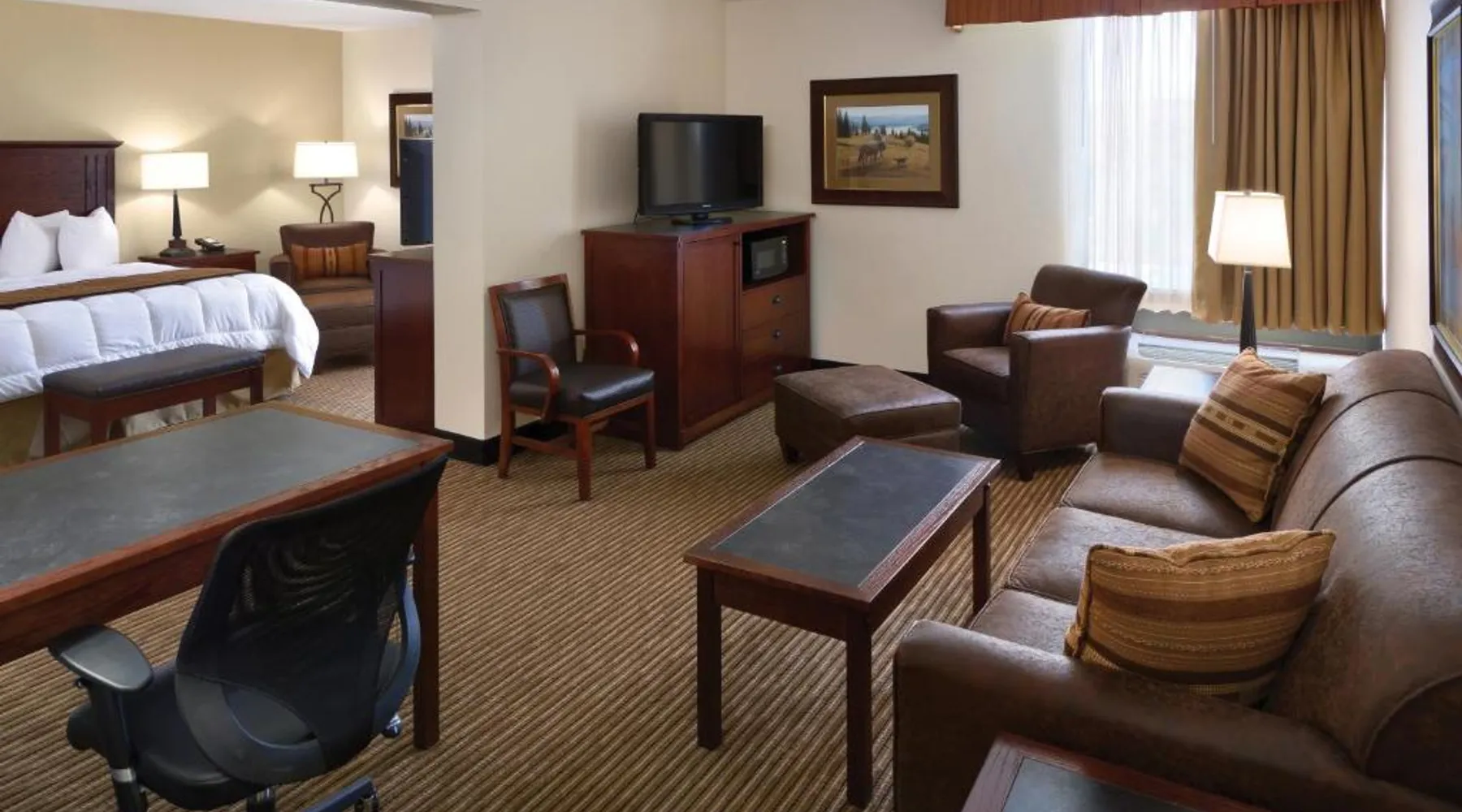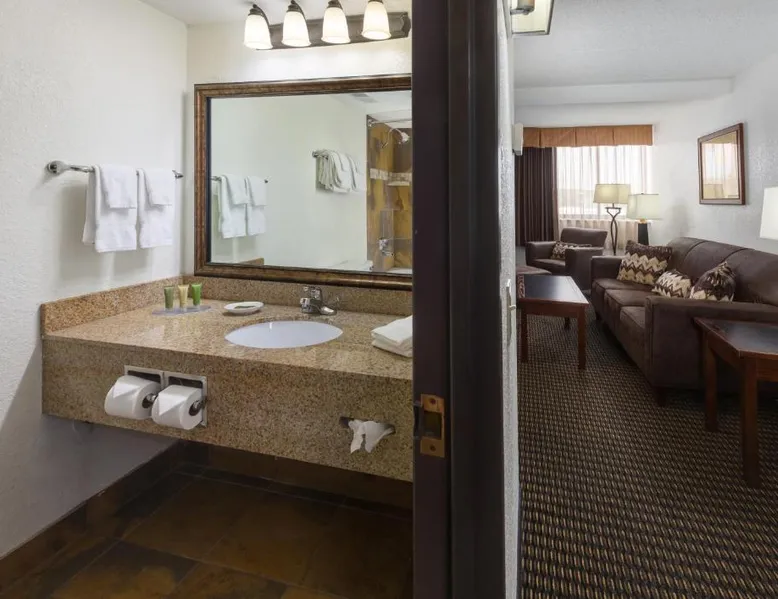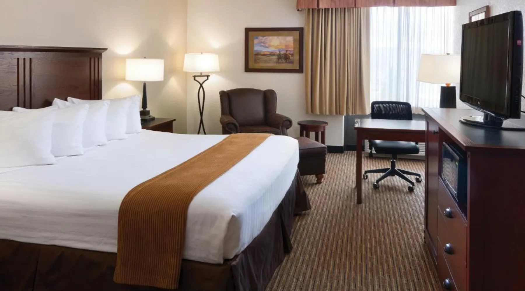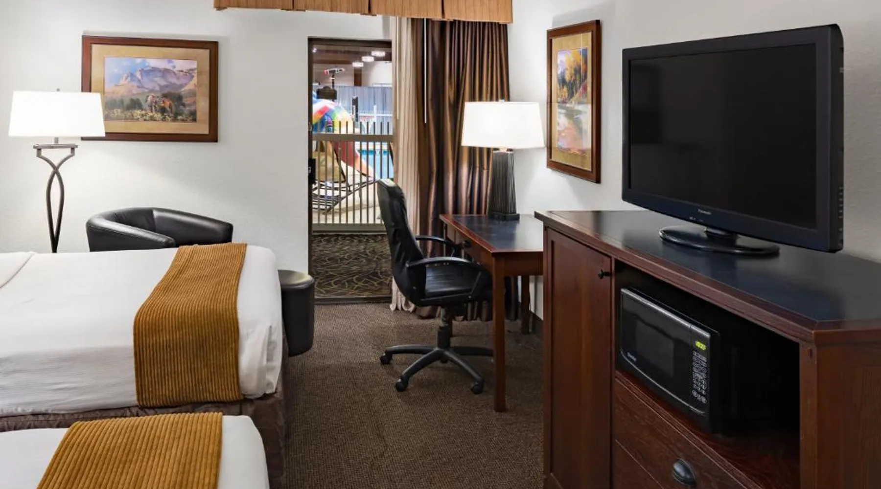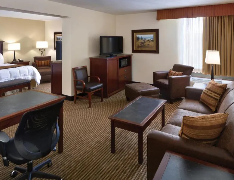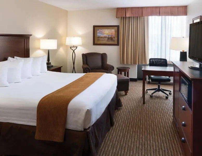 This Casper hotel is just 1.5 miles from the Casper Events Center. The hotel features a water playland pool and rooms feature warm décor and free WiFi. A free breakfast is served daily. Guest rooms at Ramkota Hotel - Casper feature rich wood furnishings and offer a sitting area with a TV. Tea and coffee-making facilities are also provided for guests' convenience. An indoor pool and hot tub are available at the Casper Ramkota Hotel. A fitness center and game room are also featured. Remington, an American-style casual restaurant and bar, is on site offering breakfast, lunch, and dinner daily. Room service is available. Natrona County International Airport is 20 minutes’ drive from the hotel and Three Crowns Golf Course is less than 10 minutes’ drive away. Offering a flat-screen TV, this room includes ironing facilities, a coffee maker and an private bathroom with a hairdryer.