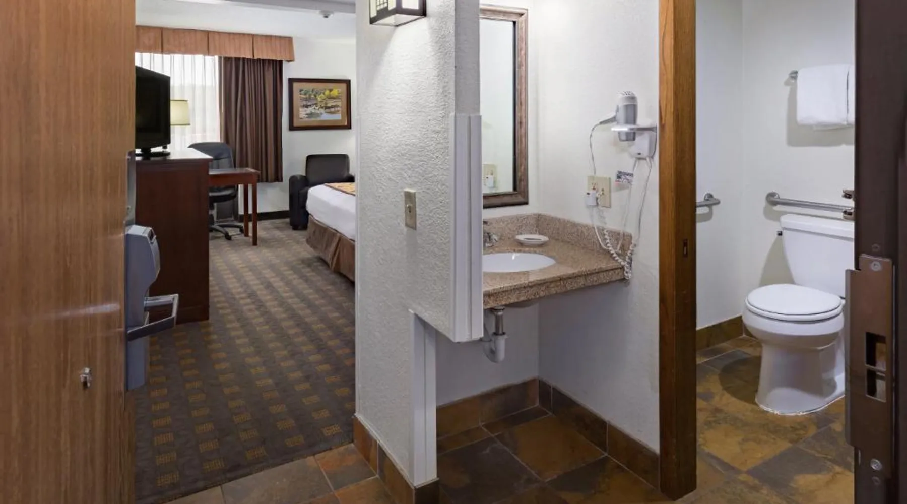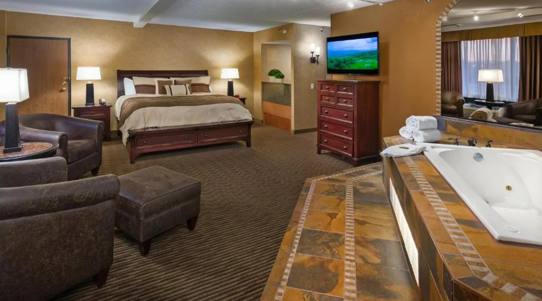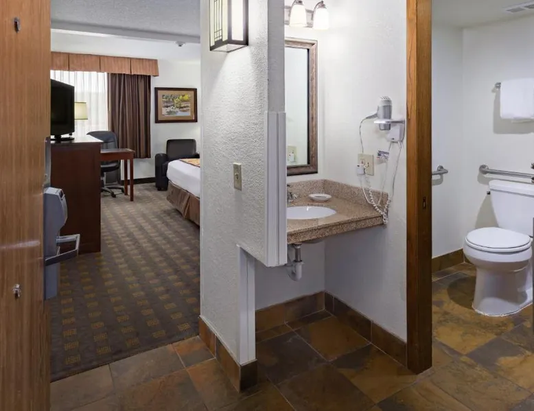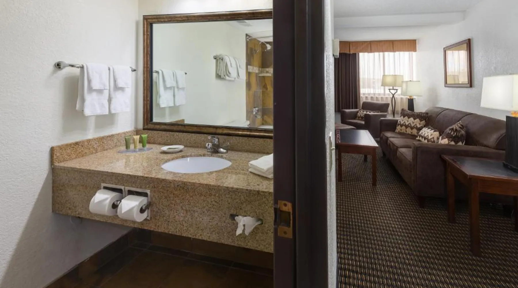 This Casper hotel is just 1.5 miles from the Casper Events Center. The hotel features a water playland pool and rooms feature warm décor and free WiFi. A free breakfast is served daily. Guest rooms at Ramkota Hotel - Casper feature rich wood furnishings and offer a sitting area with a TV. Tea and coffee-making facilities are also provided for guests' convenience. An indoor pool and hot tub are available at the Casper Ramkota Hotel. A fitness center and game room are also featured. Remington, an American-style casual restaurant and bar, is on site offering breakfast, lunch, and dinner daily. Room service is available. Natrona County International Airport is 20 minutes’ drive from the hotel and Three Crowns Golf Course is less than 10 minutes’ drive away. Offering a flat-screen TV, this room includes ironing facilities, a coffee maker and an private bathroom with a hairdryer.