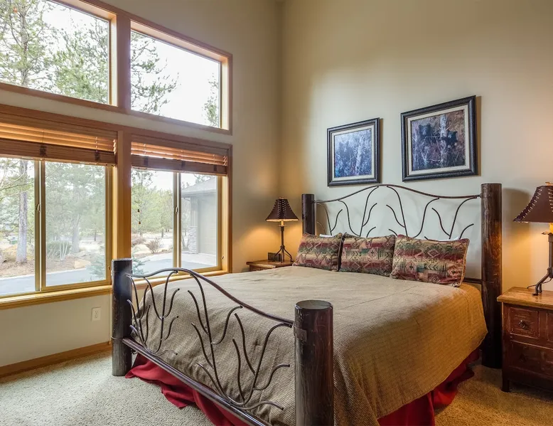 Spacious Sunriver vacation home perfect for families or large groups! Enjoy air conditioning, a cozy gas fireplace, and plenty of entertainment with bikes and a ping pong table. An EV charger makes travel easy, and you’re just steps from the scenic Deschutes River. With room for everyone and close to Sunriver’s shops, trails, and outdoor adventures, this home is the ideal getaway for making lasting memories. The space Welcome to your perfect Sunriver getaway! This spacious single-level vacation home is designed for comfort and connection, featuring an open-concept living room with a cozy gas fireplace and plenty of seating for everyone to gather. The fully stocked kitchen and two dining areas make it easy to enjoy meals together, whether it’s a big family breakfast or a relaxed dinner after a day of adventure. With four king bedroom en-suites and a bunk bedroom with its own private bath, there’s space for everyone to spread out and enjoy their own retreat. The home is wheelchair-friendly, making it a great choice for guests of all ages and needs. Step outside to a large deck perfect for lounging and dining, complete with a gas BBQ. The private hot tub is the ideal spot to unwind, and the half-acre lot offers a lawn area perfect for games and soaking up the fresh mountain air. When it’s time for fun, enjoy a game of ping pong, take a bike out on Sunriver’s scenic trails, or stroll to the nearby Deschutes River. An EV charger makes travel easy, and the home’s prime location keeps you close to all of Sunriver’s attractions, parks, and shops. This is the kind of home where lasting memories are made! Guest access Home access information will be sent 7 - 10 days prior to arrival. All homes are set up for self check-in, no need to stop by the office, just go straight to the home. Other things to note AGE RESTRICTIONS: Guests must be 23 years or older to rent Bennington homes and the person reserving must occupy the home the whole reservation.