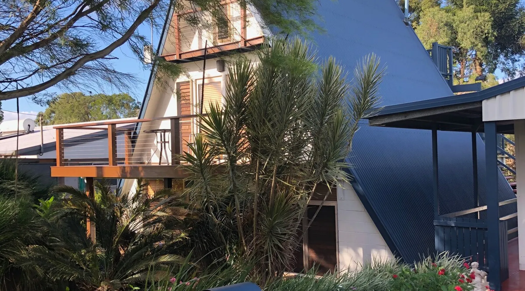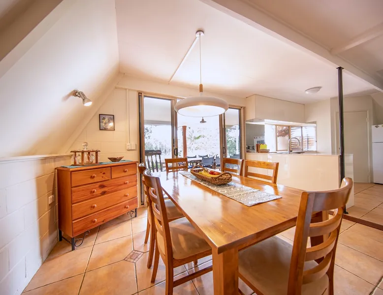 A-frame home set amongst gorgeous gardens on the banks of Lake Tinaroo this home is perfect for a romantic getaway, family gathering or a perfect place location for a gathering. 3 bedrooms each with a Queen size bed. Main bedroom is downstairs has its own private ensuite. Lounge room kitchen, dining and laundry with 3rd toilet downstairs. 2nd floor has 2 bedrooms, with shower and toilet plus 2nd retreat lounge room with 2nd TV. Free Wifi and Netflix. Suit up to 3 couples. The space Set 2 kilometres outside the historic township of Yungaburra on the edge of Lake Tinaroo this home is great for nature lovers. It provides a great location from which to explore the Atherton Tablelands. 5 minutes by car to Crater lakes - Lake Eacham and Lake Barrine Guest access This property is our holiday house. It will be all yours for the duration of your stay with the exception of the shed. From Yungaburra follow the signs to the Avenue of Honour and boat ramp. Other things to note Please note no dogs, no parties, no more than 2 cars near the property. When the dam is 50% full or more there is direct water frontage. This property is not suitable for families with small children as there is unfenced water access.