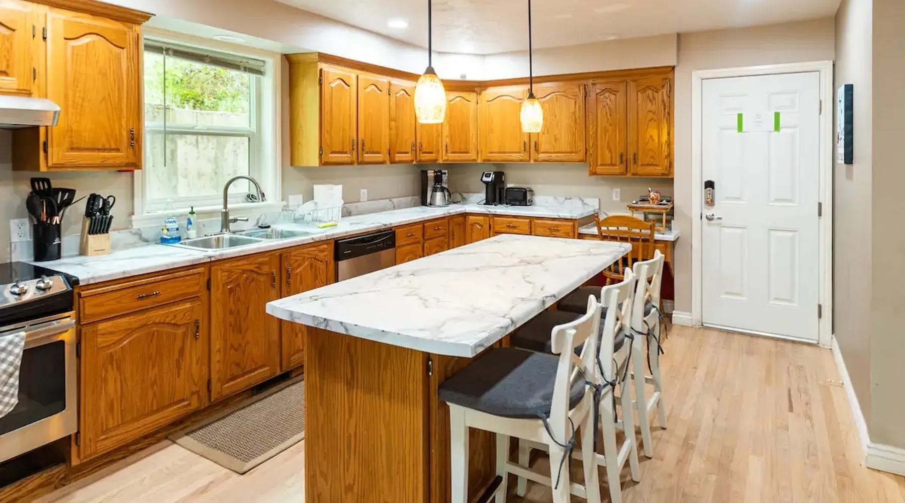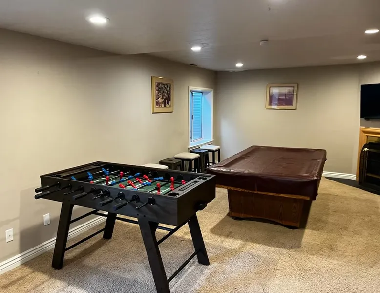 Escape to this Cottonwood Heights townhouse—your mountain retreat near Snowbird, Alta & Brighton! Enjoy 3 comfy bedrooms (2 Kings, 1 Queen), a private hot tub, pool table, foosball, and 1Gbps Wi-Fi. Cook in the full kitchen, relax on the patio with BBQ, and bring your pets along. Minutes to ski slopes, hiking trails & dining. The perfect stay for fun, work, or family time! The space Nestled in the heart of the Wasatch Front, Cottonwood Heights offers the perfect blend of serene mountain living and convenient access to Salt Lake City's amenities. Enjoy unparalleled proximity to world-class skiing, endless hiking and biking trails, and charming local eateries, all while experiencing a peaceful, family-friendly atmosphere 🏡 The Space Step inside and feel instantly at home with a warm, open-concept main floor featuring: A fully stocked kitchen for post-adventure feasts Comfy living room with fireplace & TV Dining space for meals, board games, or just recapping the day Head downstairs to the game zone—complete with a pool table, foosball, board games, and a queen Murphy bed for extra guests. Upstairs, you'll find: 3 inviting bedrooms (including a master suite) 2 full baths Washer & dryer for keeping gear fresh Kitchen: A fully stocked gourmet kitchen for post-adventure feasts, featuring modern appliances and ample counter space for easy meal prep. Living Room: Comfy living room with a cozy fireplace and smart TV – perfect for relaxing evenings, streaming your favorite shows, or simply enjoying the warmth after a day outdoors. ✨ Highlights -Spiral staircase: "Ascend our unique spiral staircase to the upper level – a charming architectural detail that adds character to your stay. -Enjoy ultimate tranquility with a scenic field directly behind the townhouse and no traffic noise, ensuring a restful and undisturbed stay -Private hot tub – soak under the stars -BBQ & patio space – grill out with mountain views 🎿 Outdoor Fun & Nearby Attractions World-class skiing/snowboarding at Alta, Snowbird, Brighton & Solitude Hiking, climbing, biking trails minutes away Golden Hills Park – great for kids and picnics Dog-friendly Ferguson Park nearby for furry companions Local eats & brews just a short drive down the hill 🚗 Transportation & Parking Easy Lyft/Uber to SLC Airport Winter ski bus access to the slopes To ensure a comfortable stay for all and comply with HOA regulations, please ensure all vehicles fit within the designated driveway and garage parking areas (up to 3 vehicles). Street parking is not permitted. Guests are responsible for any fines incurred due to noise or parking violations. Guest access 🛏️ Guest Access Enjoy full access to the entire townhouse (excluding a few locked owner closets). The outdoor areas are shared with neighbors, so wave and be neighborly. Other things to note 🔕 A Few Ground Rules Quiet hours: 10pm–8am (HOA and city ordinance) To ensure a comfortable stay for all and comply with HOA regulations, please ensure all vehicles fit within the designated driveway and garage parking areas (up to 3 vehicles). Street parking is not permitted. Guests are responsible for any fines incurred due to noise or parking violations. Book your stay and make mountain memories in Cottonwood Heights—where comfort meets adventure. Got questions? We're just a message away!