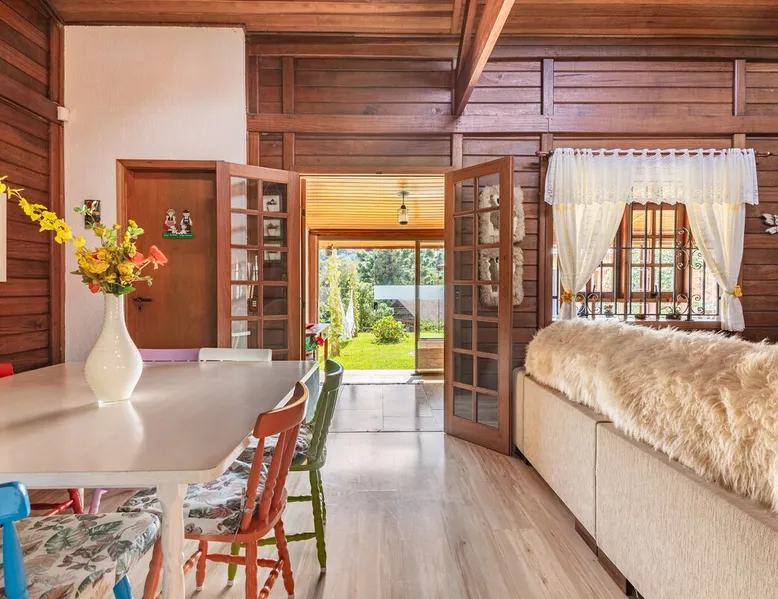 Main house in wood/masonry, 170 m2, located on a 2,000 m2 lot, fully fenced with wiring, automatic gate, with four suites available, large living room, full kitchen, toilet. The Gourmet Space, 50 m2, is complete, gas stove, wood stove, pizza oven, duplex refrigerator, hood, barbecue and sink. Access to the house is quiet, including for conventional passenger vehicles. Lots of greenery, many paths, lots of tranquility to enjoy with family and friends. The space The house is a one-story, wood and masonry construction. There are four en-suites, all with private bathrooms, three of which have a normal double bed and a bunk bed, comfortably accommodating 4 people in each suite. The fourth en-suite has a queen-size bed and a large wardrobe. 100 Mb fiber optic internet, Smart TV available in suites 1, 2 and 3, gourmet space and living room in three environments: dining, TV and fireplace. We provide electric heaters and hairdryers in the suites. The kitchen has all the appliances normally used, complete dinner sets, complete coffee and tea sets, cutlery, microwave oven, two gas stoves, two duplex refrigerators. Bed, table and bath linens are available. Large enclosed and cozy balconies, with a pool table, reversible for ping pong. The Gourmet Space is extremely cozy, a place where guests usually spend a good part of their time. Attention: All the house's electrical energy is supplied at a voltage of 220V- We have 220/110v transformers Guest access 1. The entire house, gourmet space and gardens, in an area of 2,000 m2, are available to all guests. 2. There is parking space for multiple vehicles. 3. 100 Mb Wi-Fi network, available in all spaces. 4. Quiet, safe and quick access to Monte Verde tourist center, about 1.3 km away Other things to note 1. Smoking is not allowed in any indoor environment, either in the House or in the Gourmet Space. 2. Pets are allowed only small breeds, for a fee. 3. For safety reasons, the fireplace must be handled by adults and the safety screen must always be used to prevent sparks. 4. The pool table must be converted to ping pong by an adult. 5. Heaters must be handled by adults.
