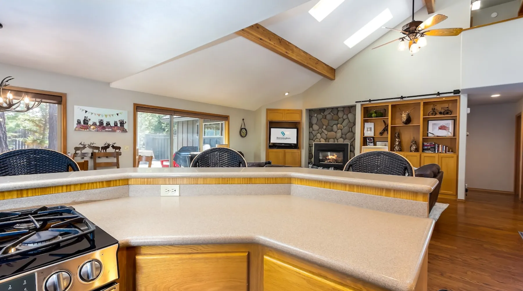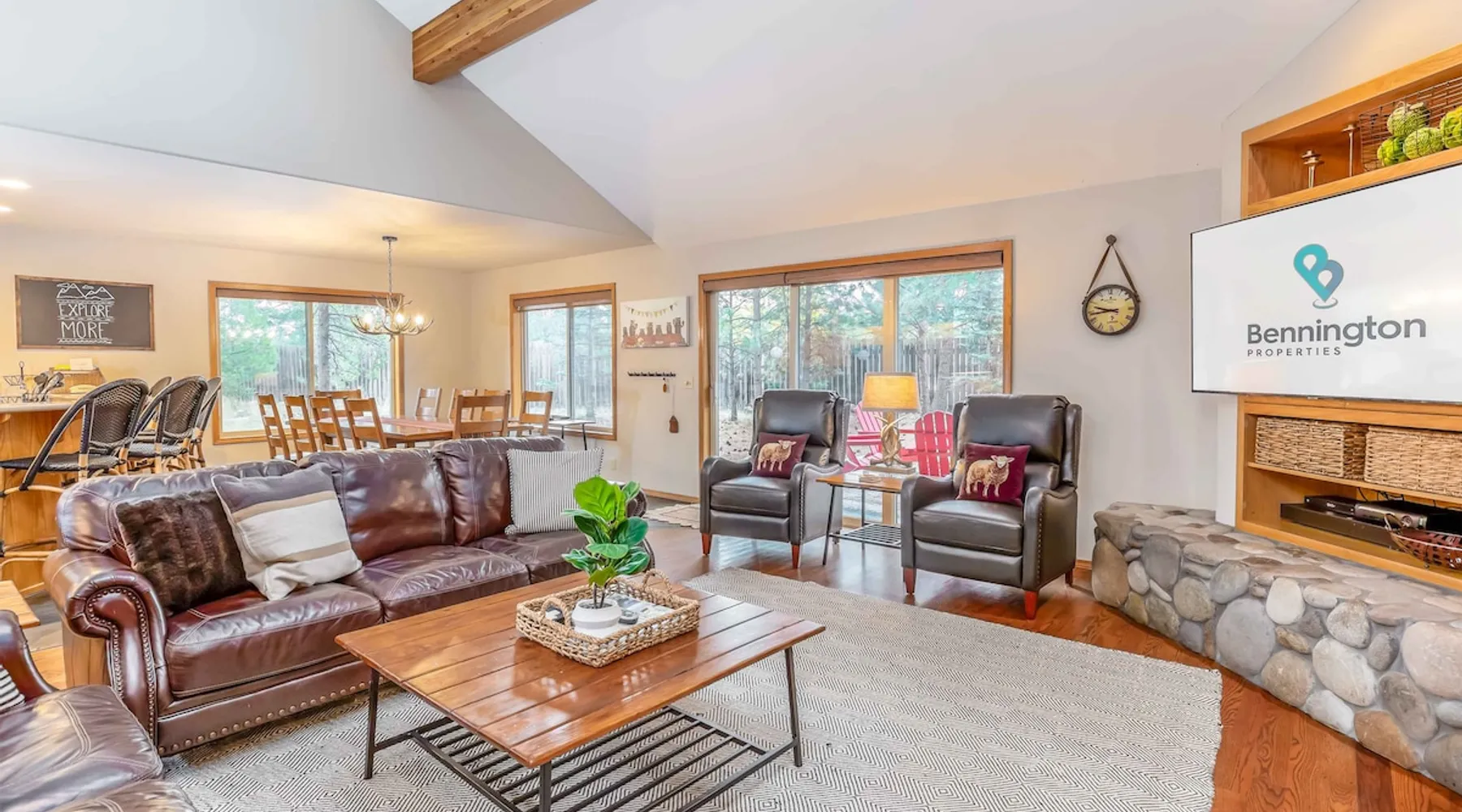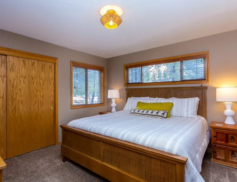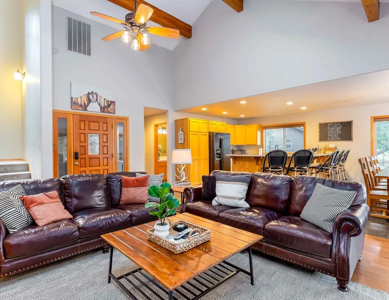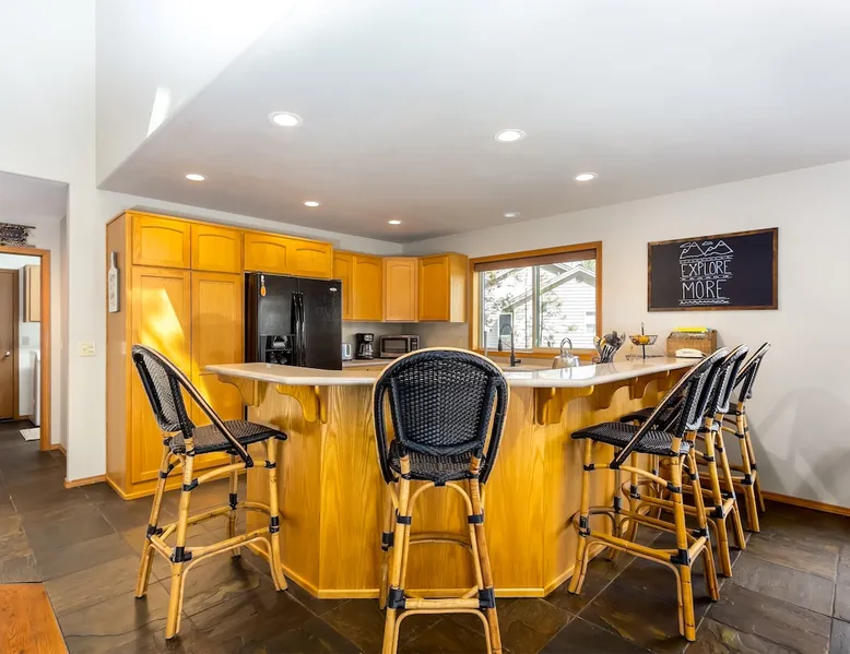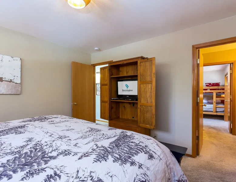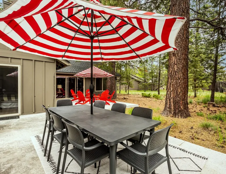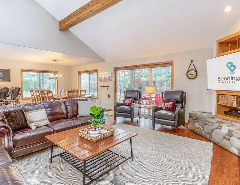 Your perfect Sunriver escape! Just a short walk or 4-minute bike ride to the Deschutes River, this lodge-style stunner brings the outdoors in with pine beam ceilings, cozy vibes, and tons of natural light. With 5 comfy bedrooms, 3.5 baths, a chef-ready kitchen, and a big sunny deck, it's made for relaxing, reconnecting, and living your best vacation life. 2,560 sq ft of getaway goodness—pack your bags and claim your happy place! The space This is your personal vacation home. Located within a short walk or 4-minute bike ride to the Championship Woodlands Golf Course and scenic Deschutes River. Featuring an open floor plan with 2560 square feet of beautiful lodge style colors, great furniture, pine beam vaulted ceilings and plenty of light to bring the outdoors in. This incredible home has all the amenities you would expect at a premium destination resort. Five bedrooms, three and a half bathrooms with exceptionally comfortable beds. A well-equipped kitchen for the chef in the family and a large back deck so everyone can enjoy the warm weather. On the main level are three bedrooms, an ensuite bedroom with a King bed and private bathroom, a queen bedroom and another king bedroom. There is a full guest bathroom connecting bedrooms 2 and 3. Upstairs there are two more bedrooms that share a "Jack and Jill" bathroom. One bedroom has a king bed and the other has two comfortable pyramid bunk beds. This great home is also equipped with an X-box with games, Ping Pong Table, 8 Person Hot Tub, 6 TVs, and 4 DVD Players. The living room boasts a 65" TV. A large driveway and a three car garage will accommodate all your vehicles. Take a bike ride anywhere in Sunriver on one of the 4 adult bikes provided with this vacation rental house. This home will make sure your stay here in Sunriver is comfortable and relaxing. Enjoy! Family Reunion in Sunriver? Great! Book this home along with our 3 Topflite or 28 Topflite homes and have room for the whole family. This home welcomes dogs, 2 max, no other pets are allowed. Fees apply Guest access Home access information will be sent 7 - 10 days prior to arrival. All homes are set up for self check-in, no need to stop by the office, just go straight to the home. Other things to note AGE RESTRICTIONS: Guests must be 23 years or older to rent Bennington homes and the person reserving must occupy the home the whole reservation.