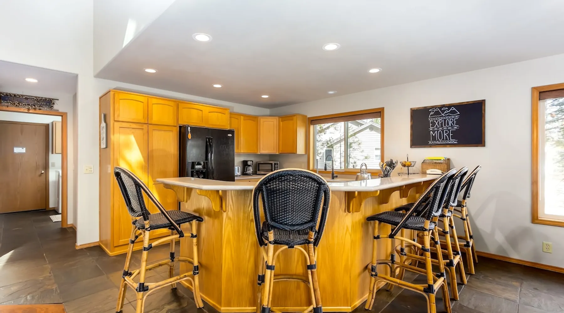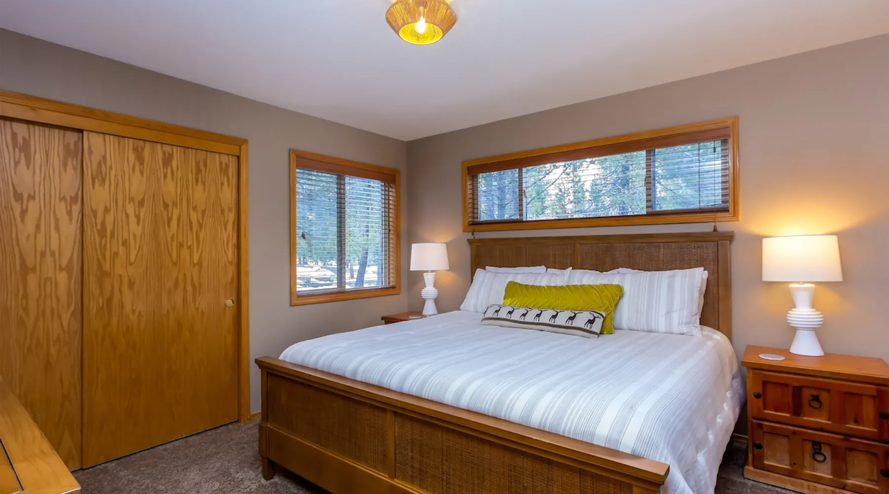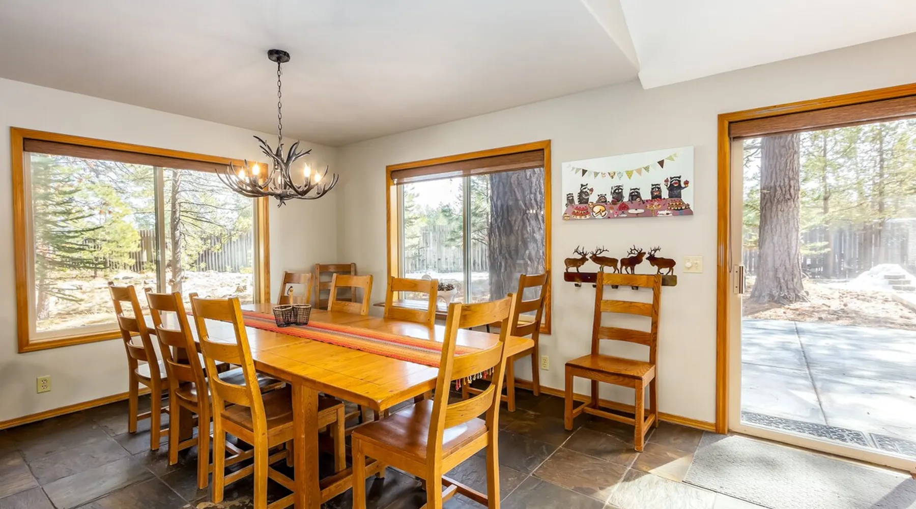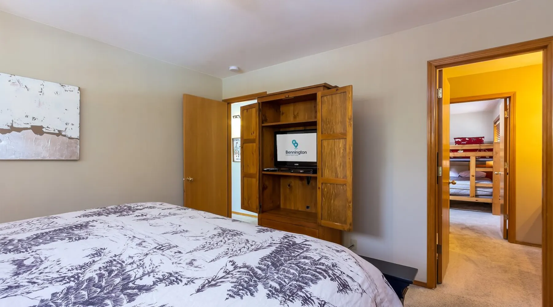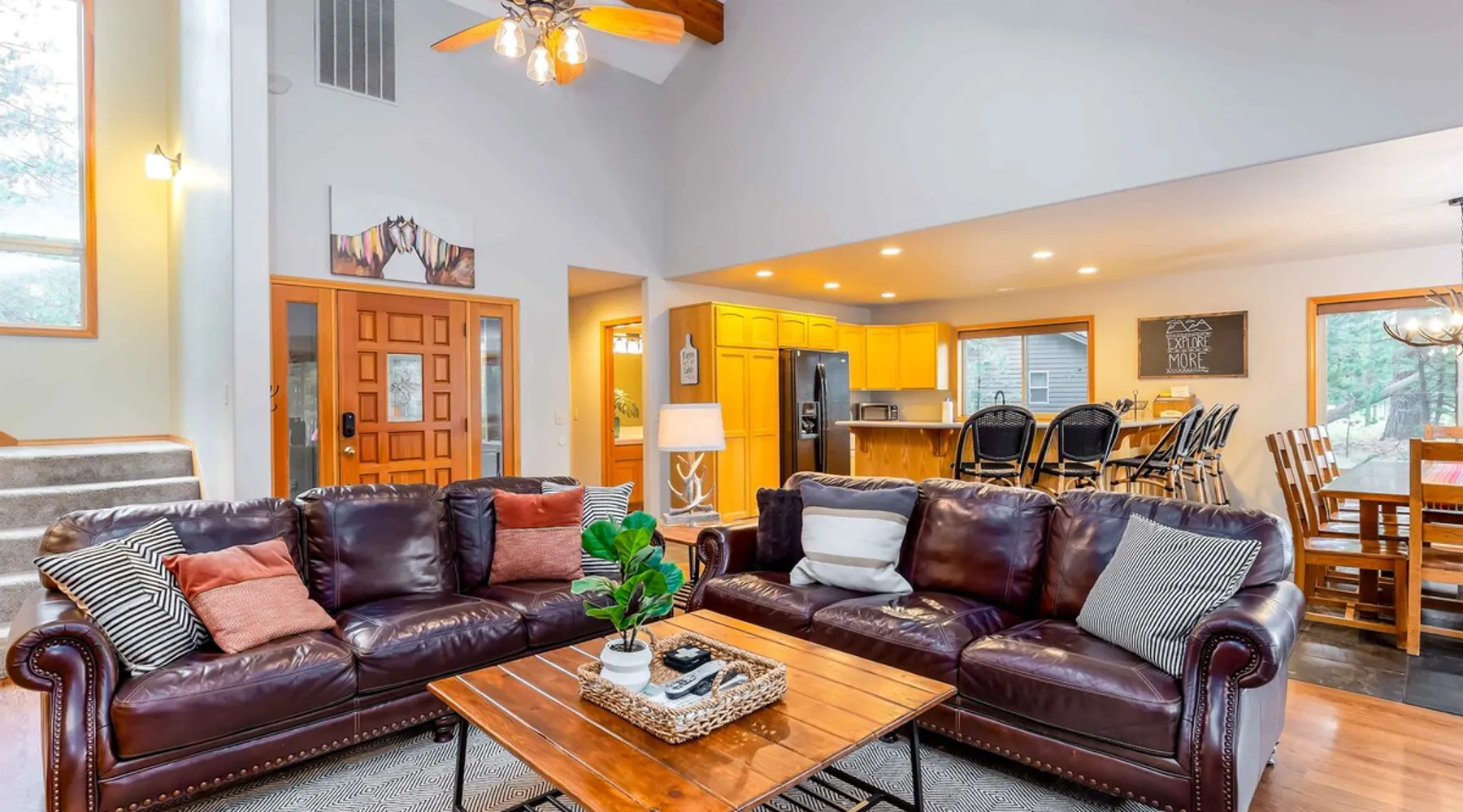 Your perfect Sunriver escape! Just a short walk or 4-minute bike ride to the Deschutes River, this lodge-style stunner brings the outdoors in with pine beam ceilings, cozy vibes, and tons of natural light. With 5 comfy bedrooms, 3.5 baths, a chef-ready kitchen, and a big sunny deck, it's made for relaxing, reconnecting, and living your best vacation life. 2,560 sq ft of getaway goodness—pack your bags and claim your happy place! The space This is your personal vacation home. Located within a short walk or 4-minute bike ride to the Championship Woodlands Golf Course and scenic Deschutes River. Featuring an open floor plan with 2560 square feet of beautiful lodge style colors, great furniture, pine beam vaulted ceilings and plenty of light to bring the outdoors in. This incredible home has all the amenities you would expect at a premium destination resort. Five bedrooms, three and a half bathrooms with exceptionally comfortable beds. A well-equipped kitchen for the chef in the family and a large back deck so everyone can enjoy the warm weather. On the main level are three bedrooms, an ensuite bedroom with a King bed and private bathroom, a queen bedroom and another king bedroom. There is a full guest bathroom connecting bedrooms 2 and 3. Upstairs there are two more bedrooms that share a "Jack and Jill" bathroom. One bedroom has a king bed and the other has two comfortable pyramid bunk beds. This great home is also equipped with an X-box with games, Ping Pong Table, 8 Person Hot Tub, 6 TVs, and 4 DVD Players. The living room boasts a 65" TV. A large driveway and a three car garage will accommodate all your vehicles. Take a bike ride anywhere in Sunriver on one of the 4 adult bikes provided with this vacation rental house. This home will make sure your stay here in Sunriver is comfortable and relaxing. Enjoy! Family Reunion in Sunriver? Great! Book this home along with our 3 Topflite or 28 Topflite homes and have room for the whole family. This home welcomes dogs, 2 max, no other pets are allowed. Fees apply Guest access Home access information will be sent 7 - 10 days prior to arrival. All homes are set up for self check-in, no need to stop by the office, just go straight to the home. Other things to note AGE RESTRICTIONS: Guests must be 23 years or older to rent Bennington homes and the person reserving must occupy the home the whole reservation.