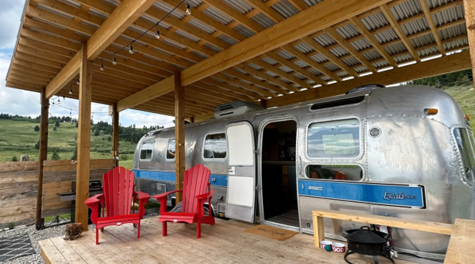 The Airstream is situated on a 1000 acres cattle ranch full of native grasslands, forests, and Riperian areas. There is easy access to Waterton National Park, Crow's Nest Pass, Head Smashed in Buffalo Jump, as well as all the great fishing, hiking, biking, and enjoyment that the Southern Alberta Rockies provide. The trailer contains a queen bed, living area, kitchenette, 3-piece bathroom. You can also sit on the beautiful deck with your own gas fire pit and BBQ and enjoy the stars! The space This space is perfect for a quiet getaway for two. It’s away from all the action but close to many cool experiences like Waterton, Crow's Nest Pass, Castle Recreation area, and so much more. You can also choose to park yourself with a great book and enjoy the peace and quiet of the ranch. Catch your breath here. Guest access During your stay you will have access to our shared cookhouse and washrooms with hot shower. There's also a shared outdoor picnic area, playing field and outdoor games like bocce, soccer, swinging and more! A short walk will lead you to our upper reservoir with dock and Adirondack chairs. Other things to note Flint Rock Ranch is approximately a 2 hour drive from Calgary, and is 25 minutes from the town of Pincher Creek. We are 45 minutes to Waterton Park, Crow's Nest Pass, and Fort McLeod. We are only 20 minutes to Head Smashed in Buffalo Jump. Check out our local attractions page to see everything the area has to offer.