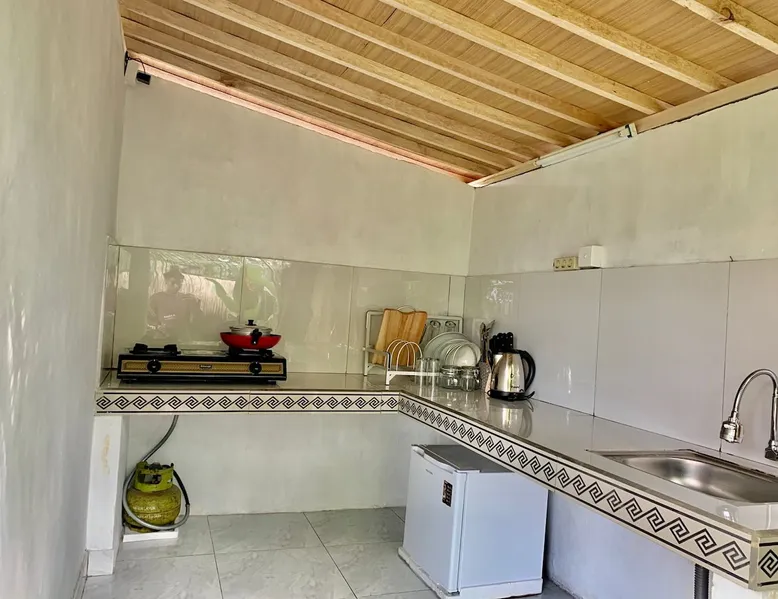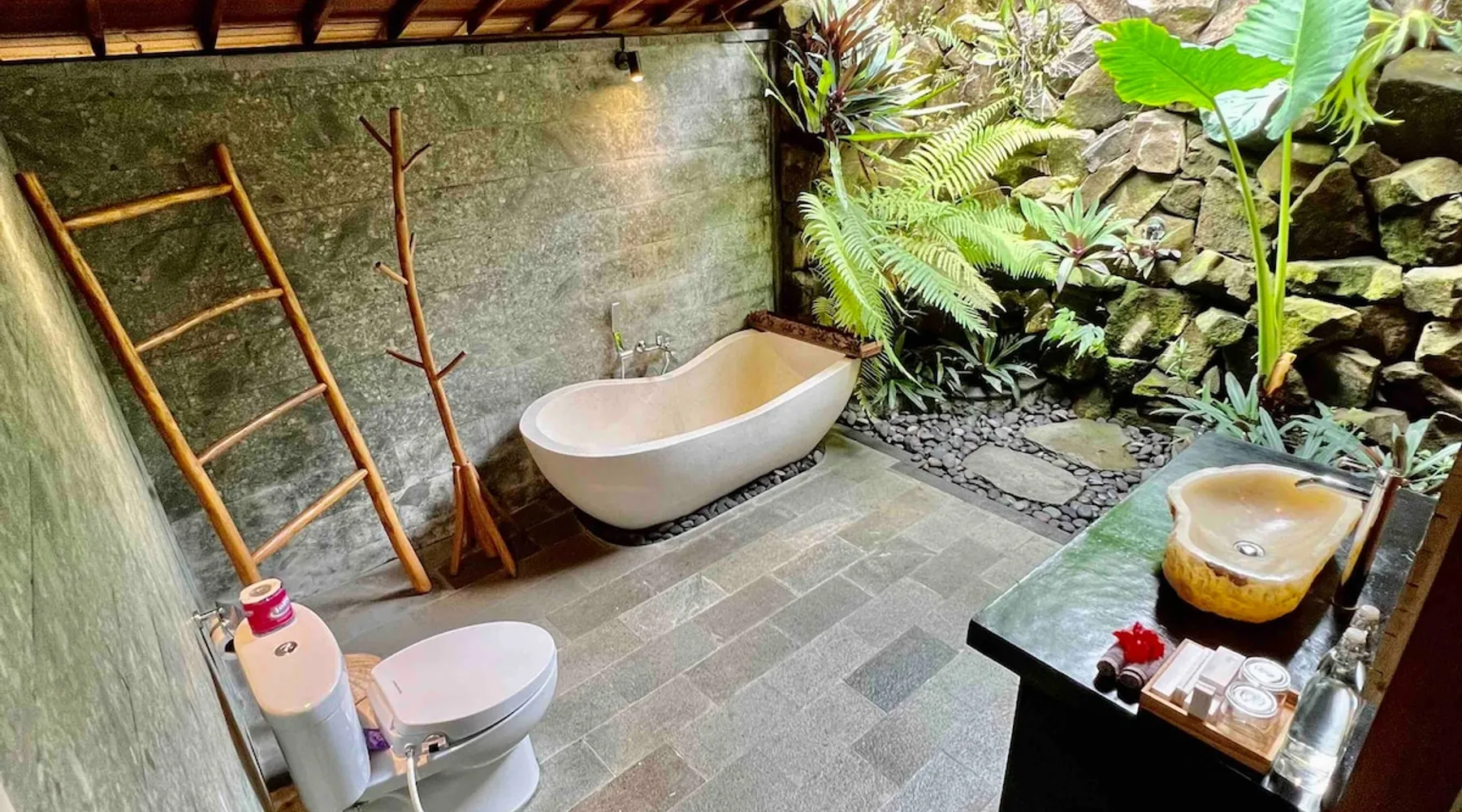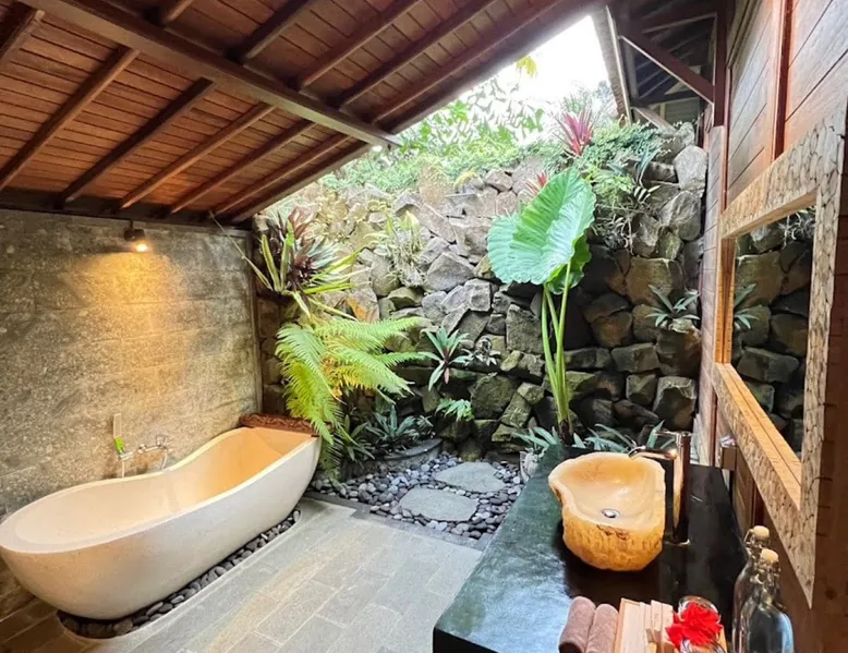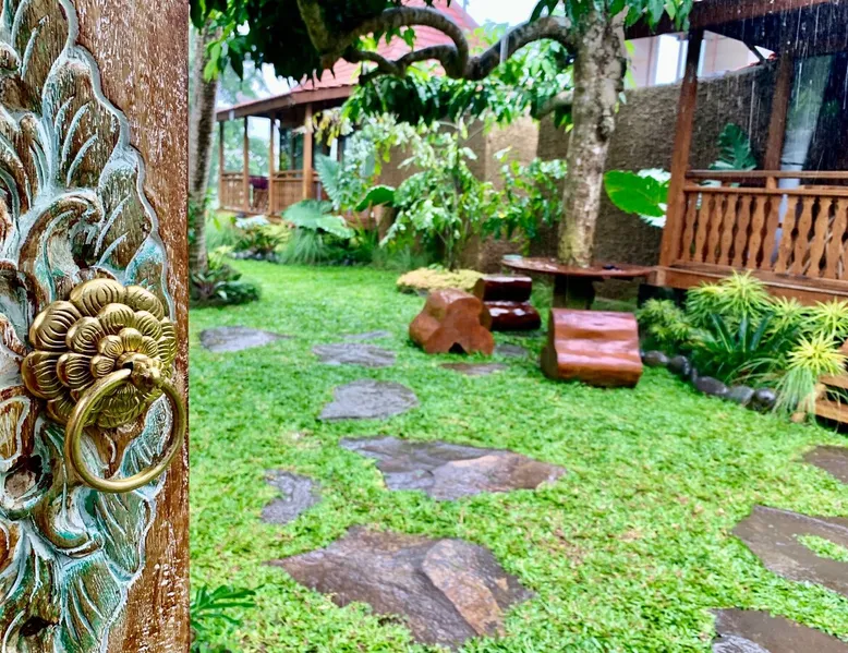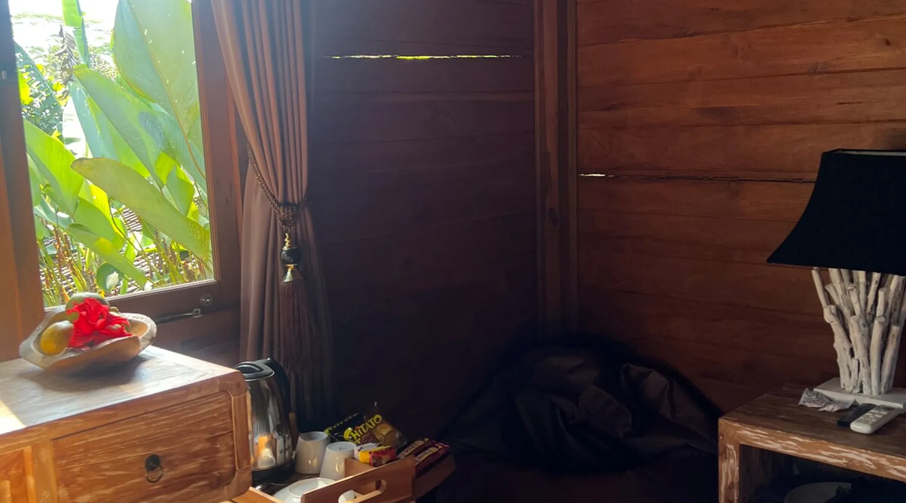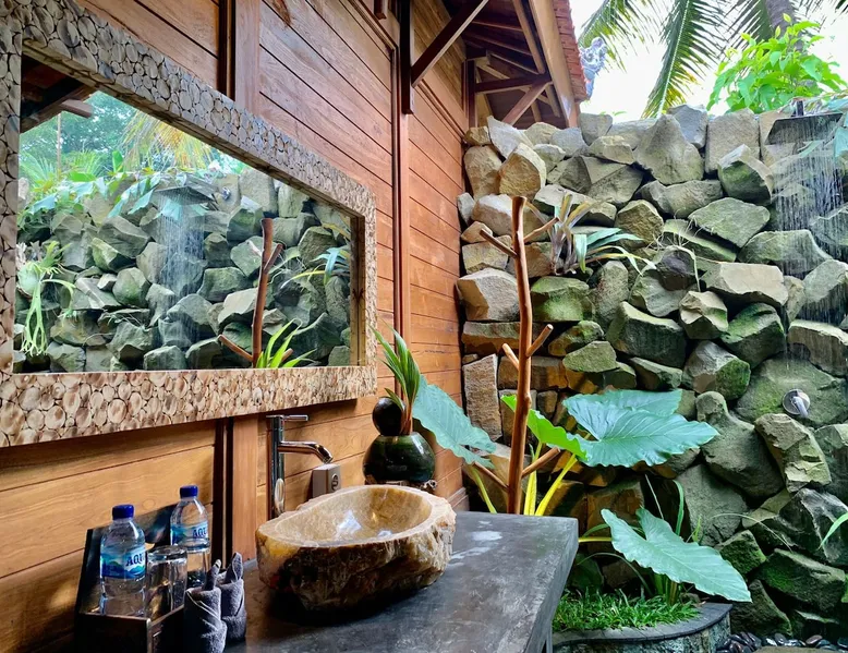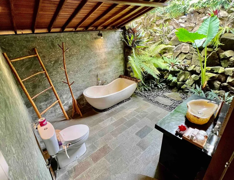 This is very awesome bright modern wooden bedroom with wonderful semi open bathroom also surrounding by green jungle view and garden. Perfect for your ultimate Bali's Countryside escape and see real Bali's CULTURE and NATURE Situated behind my beautiful Balinese family compound that separated by beautiful gate. You will be welcomed by original Balis Engraving architecture, house layout with its own temple. me & my family will taking care of you as a family member. "LIVING THE BALINESE LIFESTYLE" The space Begin from the bathroom, the bathroom is 3m x 4,5m wide has semi open shower that possible to see the sky while you taking shower. than we provide bath tube, toilet, washbasin. you can access hot and cold water by the shower, bath tube and washbasin as well. we provide 2 different hanger for towel and cloths. Moving to the bedroom, in front of the room we have fully glass door with day and night curtain. Bedroom size is 4,5m X 5m wide. Facilitated double bed that very comfy with mosquito net, 2 side bed table with side bed lamp. Working desk by the window with jungle valley view, wardrobe, air conditioning 1 1/2pk, smart tv (can be connect to Netflix, prime video, You tube and many more), room router wi-fi up to 75mbps. The room door we use key lock. Moving to Balcony with green jungle valley view and possibly sunset view, lush garden view, we have round table with pair of chair to enjoy meals and coffee while you enjoying view at the balcony. THE BEDROOM'S FLOOR IS 75cm high from the ground, the floor is totally made from wood. at front of the room at the garden we have beautiful villa's gate and access to the exit of the my family compound with pure original Bali's architecture. Than after 60 meters you will be at our main gate from main road. Guest access guest can acces private kitchen, garden, parking in garage. Other things to note Don't worry, we ready to handle your morning energy ;) Breakfast with Additional Charge. SEE YOU