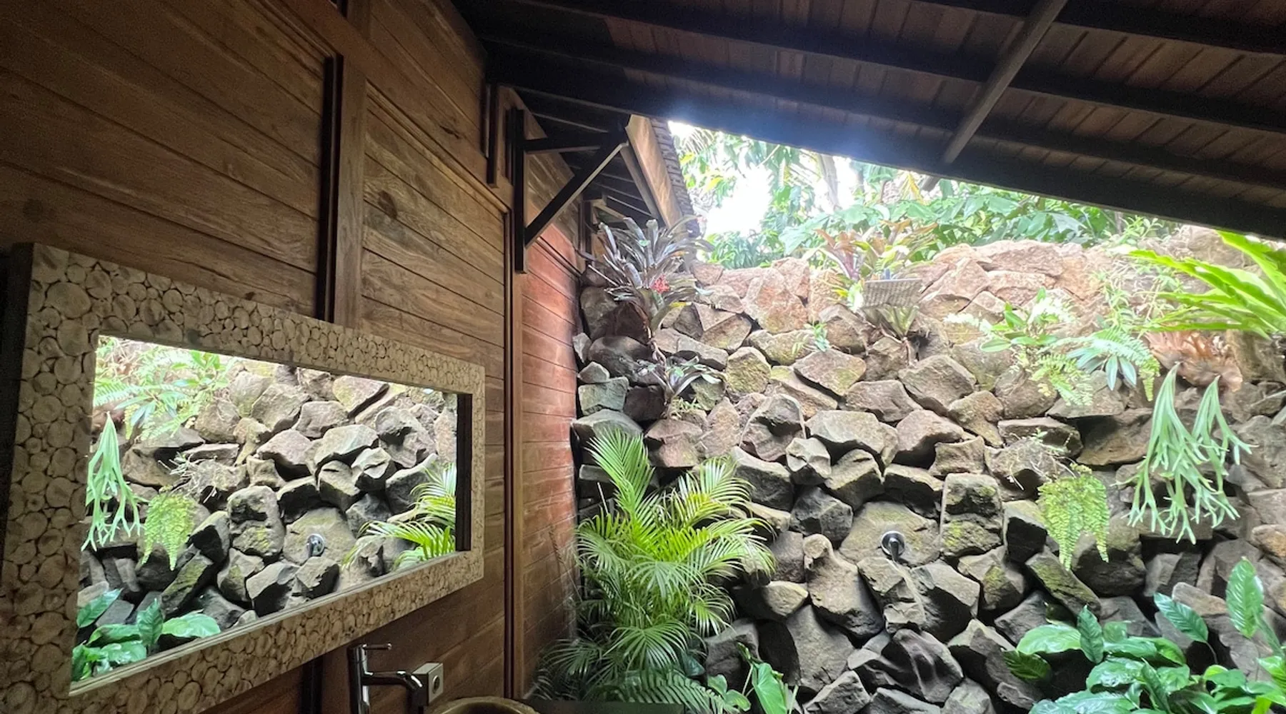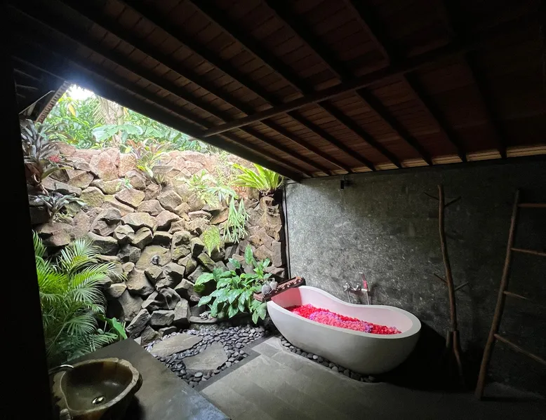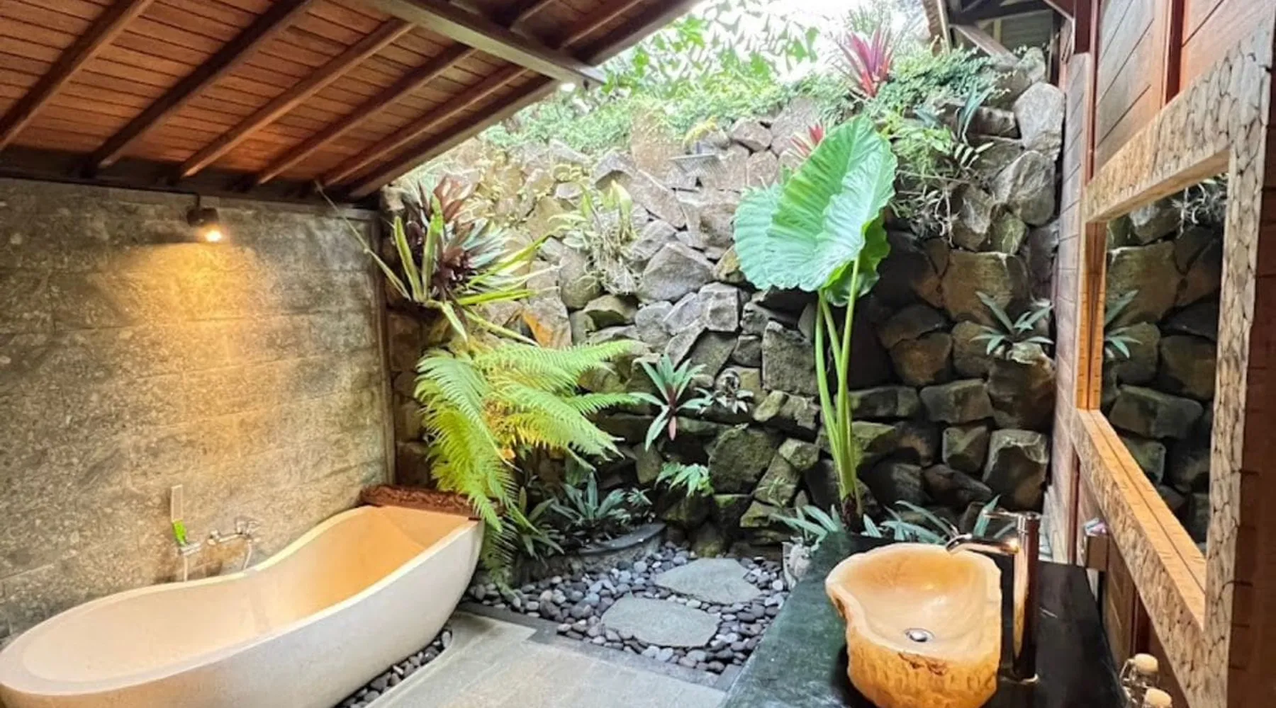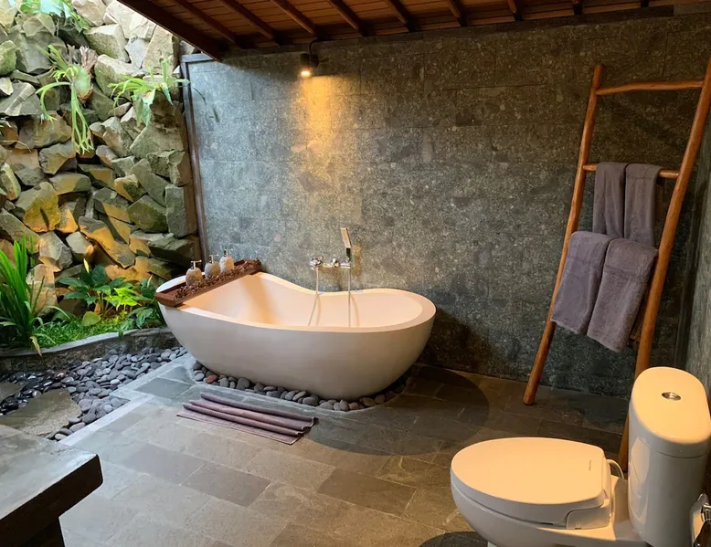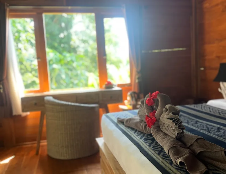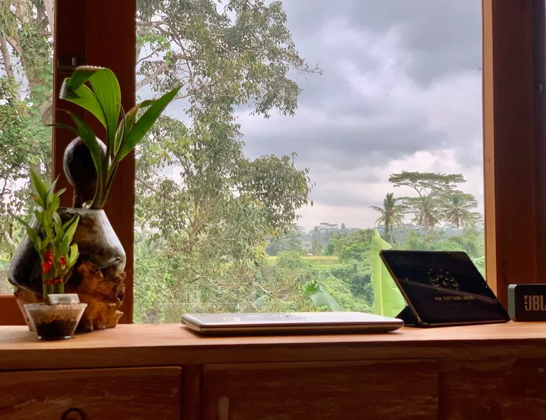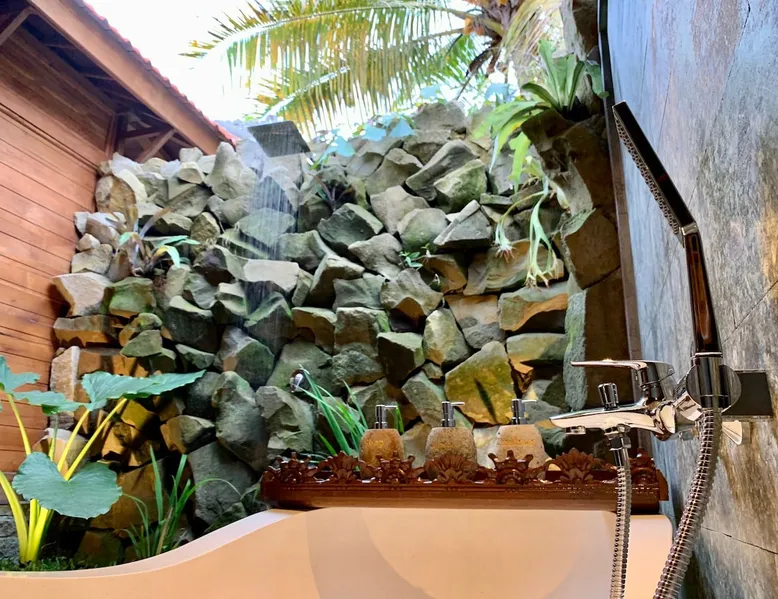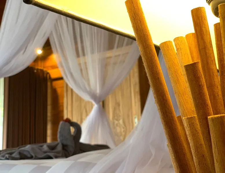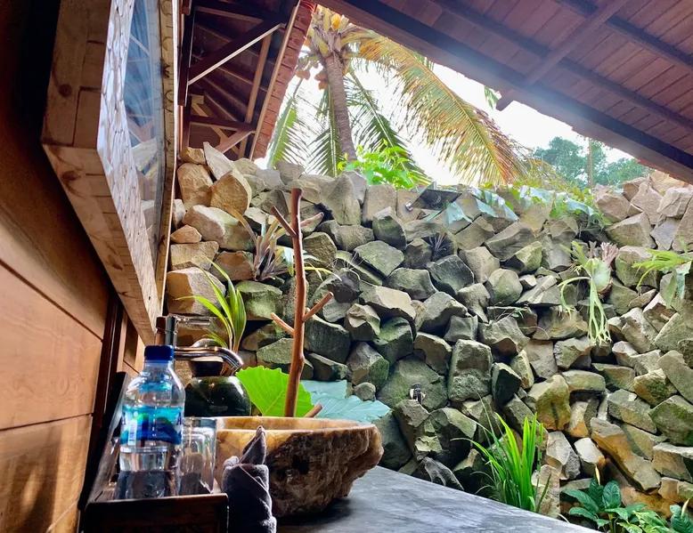 This is very awesome bright modern wooden bedroom with wonderful semi open bathroom also surrounding by green jungle view and garden. Perfect for your ultimate Bali's Countryside escape and see real Bali's CULTURE and NATURE Situated behind my beautiful Balinese family compound that separated by beautiful gate. You will be welcomed by original Balis Engraving architecture, house layout with its own temple. me & my family will taking care of you as a family member. "LIVING THE BALINESE LIFESTYLE" The space Begin from the bathroom, the bathroom is 3m x 4,5m wide has semi open shower that possible to see the sky while you taking shower. than we provide bath tube, toilet, washbasin. you can access hot and cold water by the shower, bath tube and washbasin as well. we provide 2 different hanger for towel and cloths. Moving to the bedroom, in front of the room we have fully glass door with day and night curtain. Bedroom size is 4,5m X 5m wide. Facilitated double bed that very comfy with mosquito net, 2 side bed table with side bed lamp. Working desk by the window with jungle valley view, wardrobe, air conditioning 1 1/2pk, smart tv (can be connect to Netflix, prime video, You tube and many more), room router wi-fi up to 75mbps. The room door we use key lock. Moving to Balcony with green jungle valley view and possibly sunset view, lush garden view, we have round table with pair of chair to enjoy meals and coffee while you enjoying view at the balcony. THE BEDROOM'S FLOOR IS 75cm high from the ground, the floor is totally made from wood. at front of the room at the garden we have beautiful villa's gate and access to the exit of the my family compound with pure original Bali's architecture. Than after 60 meters you will be at our main gate from main road. Guest access guest can acces private kitchen, garden, parking in garage. Other things to note Don't worry, we ready to handle your morning energy ;) Breakfast with Additional Charge. SEE YOU