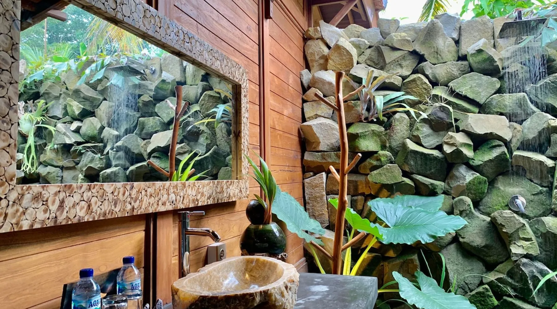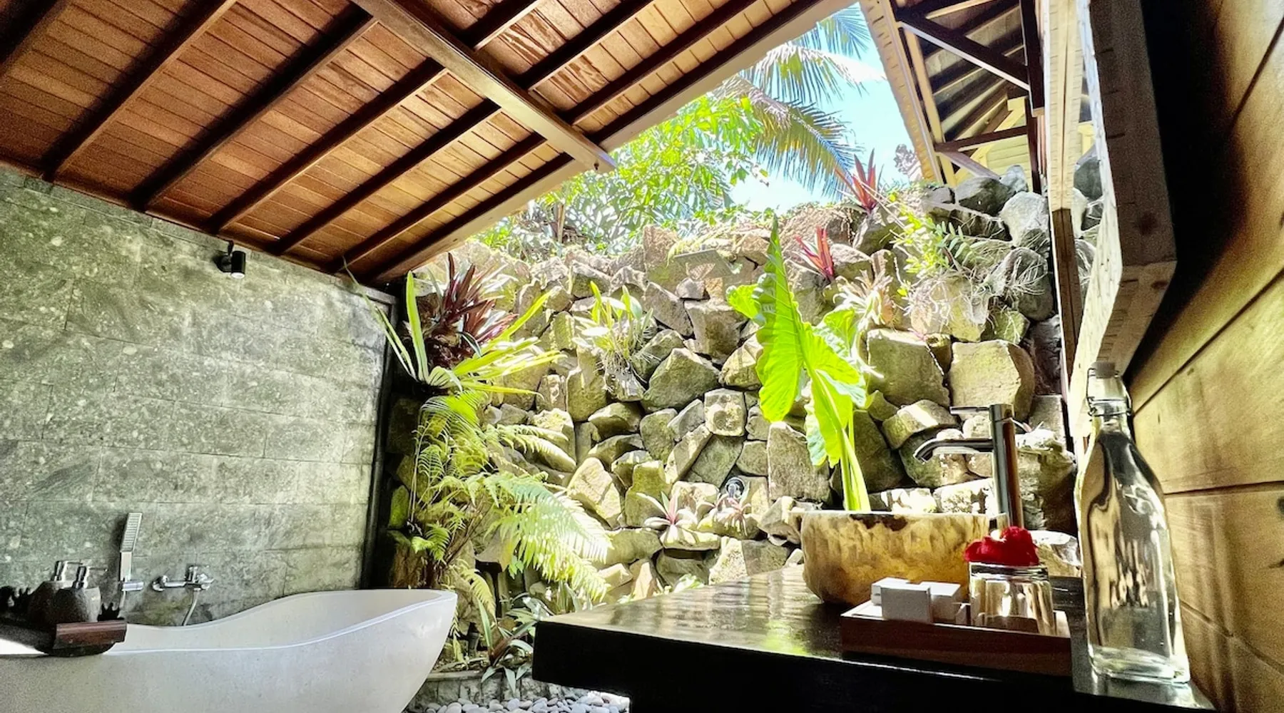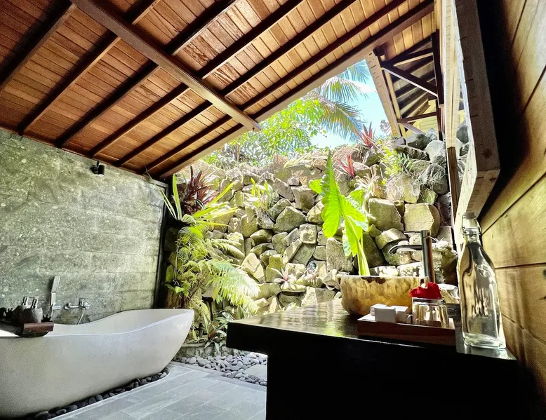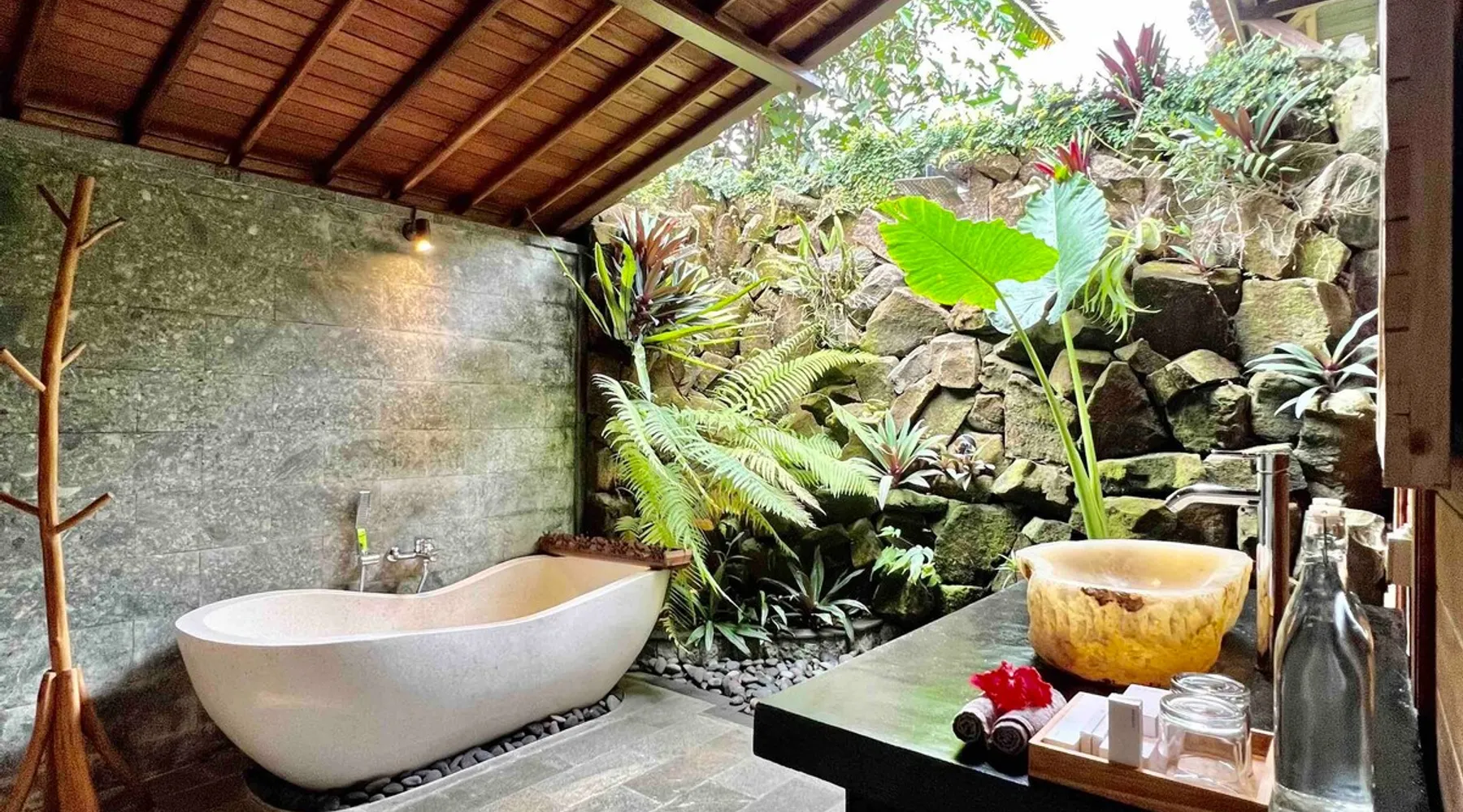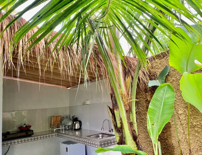This is very awesome bright modern wooden bedroom with wonderful semi open bathroom also surrounding by green jungle view and garden. Perfect for your ultimate Bali's Countryside escape and see real Bali's CULTURE and NATURE Situated behind my beautiful Balinese family compound that separated by beautiful gate. You will be welcomed by original Balis Engraving architecture, house layout with its own temple. me & my family will taking care of you as a family member. "LIVING THE BALINESE LIFESTYLE" The space Begin from the bathroom, the bathroom is 3m x 4,5m wide has semi open shower that possible to see the sky while you taking shower. than we provide bath tube, toilet, washbasin. you can access hot and cold water by the shower, bath tube and washbasin as well. we provide 2 different hanger for towel and cloths. Moving to the bedroom, in front of the room we have fully glass door with day and night curtain. Bedroom size is 4,5m X 5m wide. Facilitated double bed that very comfy with mosquito net, 2 side bed table with side bed lamp. Working desk by the window with jungle valley view, wardrobe, air conditioning 1 1/2pk, smart tv (can be connect to Netflix, prime video, You tube and many more), room router wi-fi up to 75mbps. The room door we use key lock. Moving to Balcony with green jungle valley view and possibly sunset view, lush garden view, we have round table with pair of chair to enjoy meals and coffee while you enjoying view at the balcony. THE BEDROOM'S FLOOR IS 75cm high from the ground, the floor is totally made from wood. at front of the room at the garden we have beautiful villa's gate and access to the exit of the my family compound with pure original Bali's architecture. Than after 60 meters you will be at our main gate from main road. Guest access guest can acces private kitchen, garden, parking in garage. Other things to note Don't worry, we ready to handle your morning energy ;) Breakfast with Additional Charge. SEE YOU