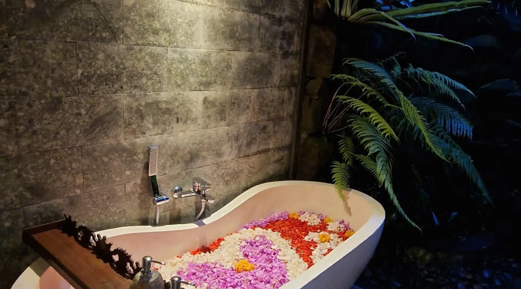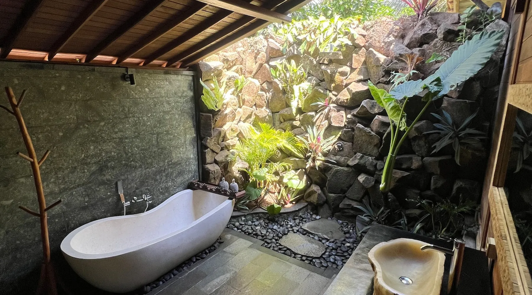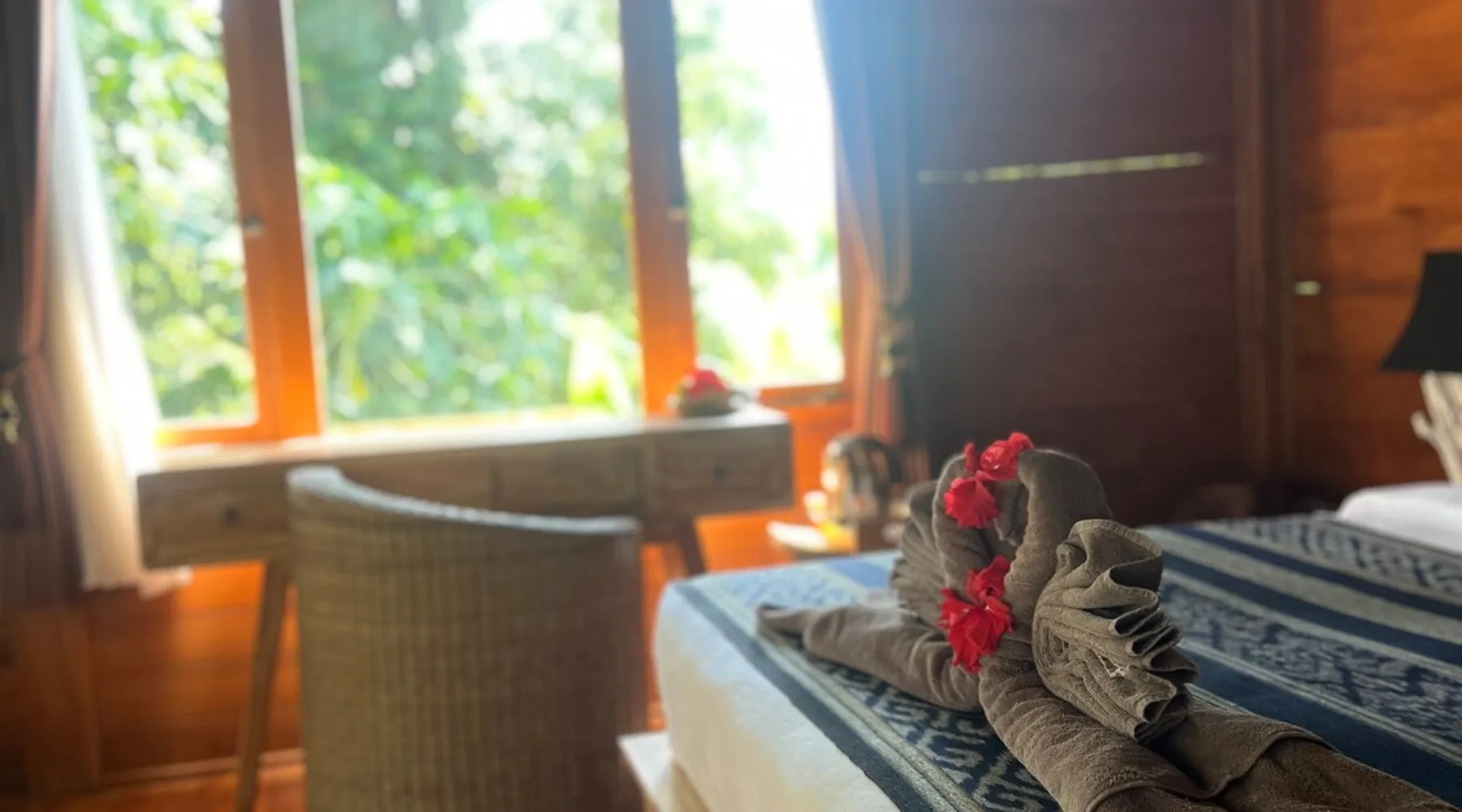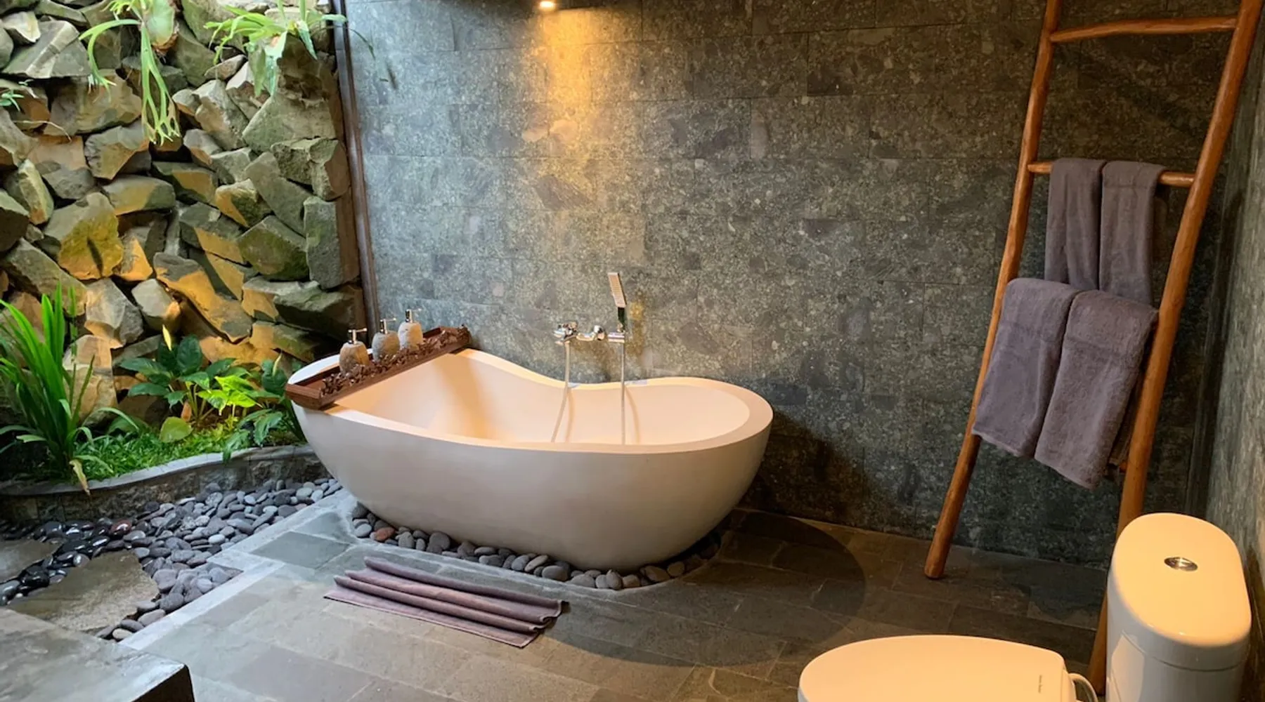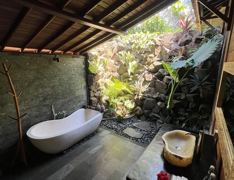 This is very awesome bright modern wooden bedroom with wonderful semi open bathroom also surrounding by green jungle view and garden. Perfect for your ultimate Bali's Countryside escape and see real Bali's CULTURE and NATURE Situated behind my beautiful Balinese family compound that separated by beautiful gate. You will be welcomed by original Balis Engraving architecture, house layout with its own temple. me & my family will taking care of you as a family member. "LIVING THE BALINESE LIFESTYLE" The space Begin from the bathroom, the bathroom is 3m x 4,5m wide has semi open shower that possible to see the sky while you taking shower. than we provide bath tube, toilet, washbasin. you can access hot and cold water by the shower, bath tube and washbasin as well. we provide 2 different hanger for towel and cloths. Moving to the bedroom, in front of the room we have fully glass door with day and night curtain. Bedroom size is 4,5m X 5m wide. Facilitated double bed that very comfy with mosquito net, 2 side bed table with side bed lamp. Working desk by the window with jungle valley view, wardrobe, air conditioning 1 1/2pk, smart tv (can be connect to Netflix, prime video, You tube and many more), room router wi-fi up to 75mbps. The room door we use key lock. Moving to Balcony with green jungle valley view and possibly sunset view, lush garden view, we have round table with pair of chair to enjoy meals and coffee while you enjoying view at the balcony. THE BEDROOM'S FLOOR IS 75cm high from the ground, the floor is totally made from wood. at front of the room at the garden we have beautiful villa's gate and access to the exit of the my family compound with pure original Bali's architecture. Than after 60 meters you will be at our main gate from main road. Guest access guest can acces private kitchen, garden, parking in garage. Other things to note Don't worry, we ready to handle your morning energy ;) Breakfast with Additional Charge. SEE YOU