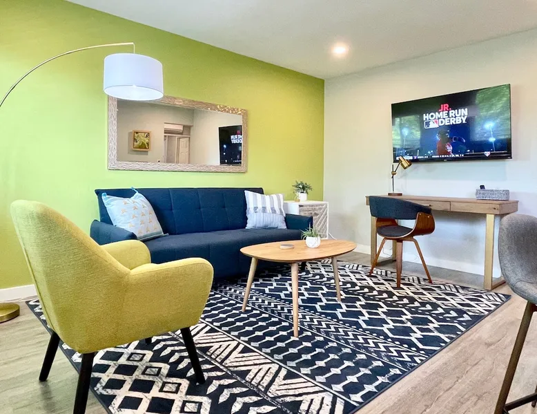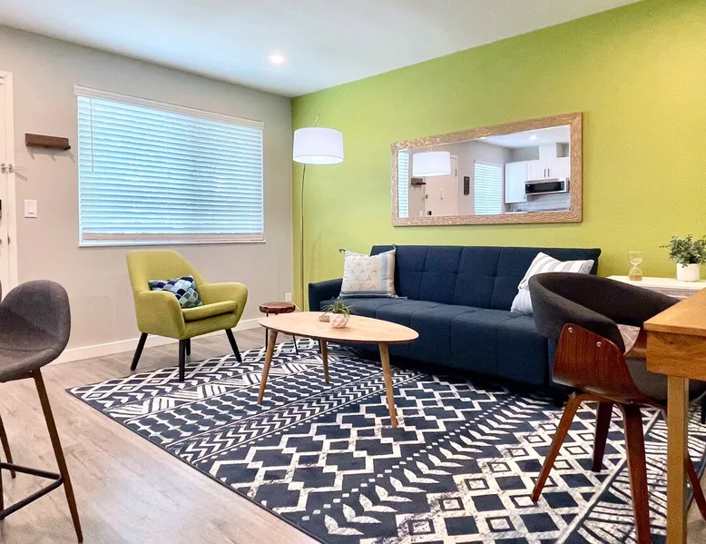 “Great spot, clean, comfortable, and fully stocked. The host was very responsive and made you feel right at home. I'll definitely come back!” ⭑⭑⭑⭑⭑ -Dane "Five out of five. The place is exactly as described. It was all clean. Check in was SUPER easy, and the host always responsive. Would stay here again." ⭑⭑⭑⭑⭑ -Raul ⭑Please inquire for early check-in & late check-out availability⭑ The space Our Designer 1 bed/ 1 bath apartment is remodeled and newly furnished. This is an ideal location for your Walnut Creek stay with close proximity to freeways, downtown restaurants/shopping, and overall very walkable. Enjoy the fully-outfitted Kitchen for your cook-in meals, and take advantage of our California weather by grilling and eating alfresco. Enjoy the Fire Pit at Cocktail hour in the spacious courtyard, or bring your lunch for a mid-day break. We look forward to hosting you! Team Advanstay Highlights... ✿ Remodeled & Modern, Designer furnished apartment ✿ Walk Score 89 | Downtown at your doorstep ✿ Parking Assigned space ✿ Freeway access | Hwy 24 & 680 ✿ Laundry | on site ✿ BART | .9 mi ✿ Hospitals | John Muir 2.1 mi & Kaiser Med Center .7 mi ✿ Broadway Plaza | .5 mi ✿ Advanstay apartments are powered by 100% renewable electric Guest access On site assigned parking is provided for your use during your stay. Accessibility: This apartment is on the 2nd floor of a two-story building. There is one flight of stairs to access the apartment. The building grounds and access are level. Noise: This apartment is within a classic "mid-century" 60's building. Expect to hear some sounds inside and outside the unit. Expect some minor urban background noises in the neighborhood. Other things to note *** Special Note*** Please see House Rules for additional restrictions and information, including pets and additional guest fees. We understand that plans can change unexpectedly, and we always strive to be as flexible as possible within our stated cancellation policy. For peace of mind, we highly recommend obtaining travel insurance to protect your trip.