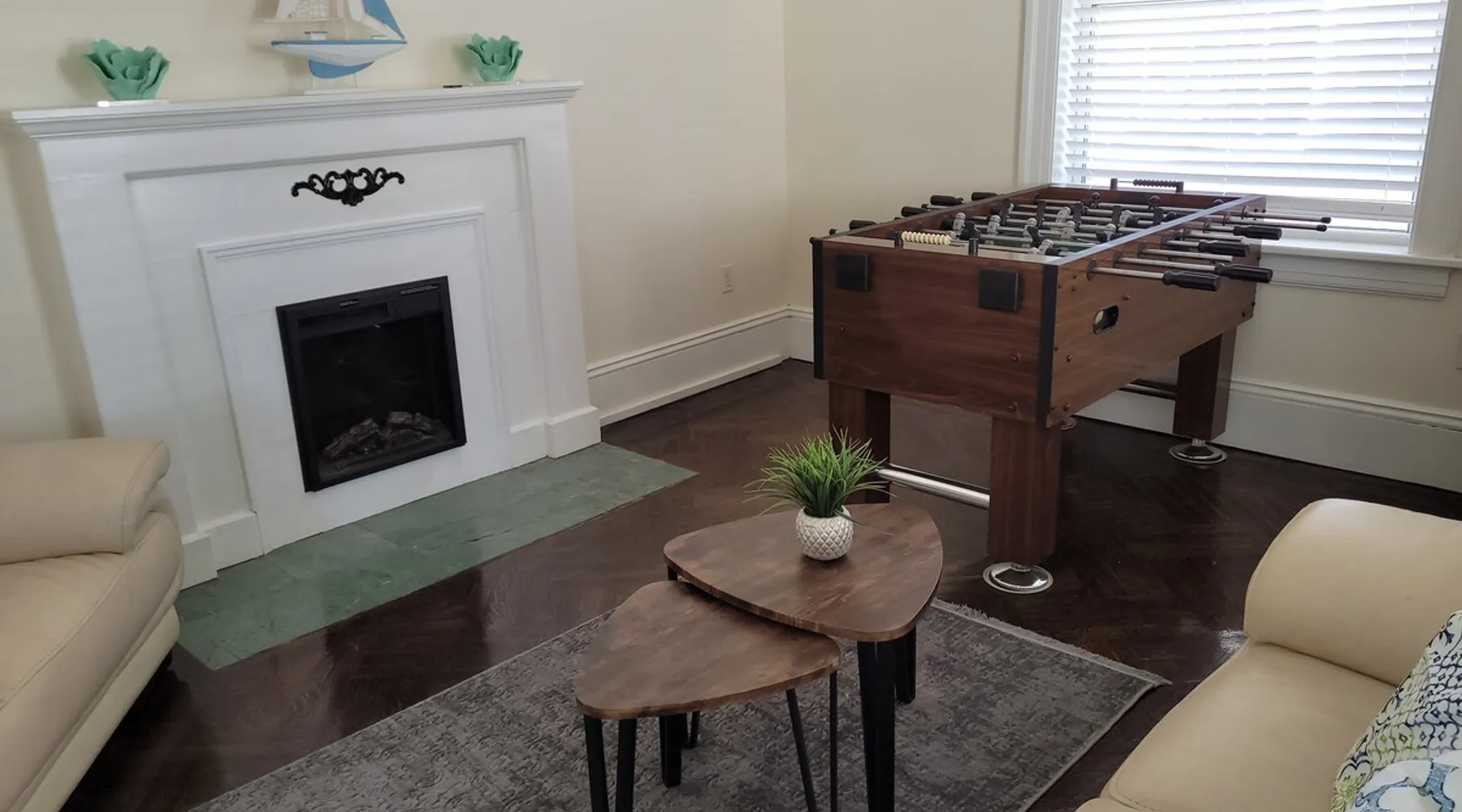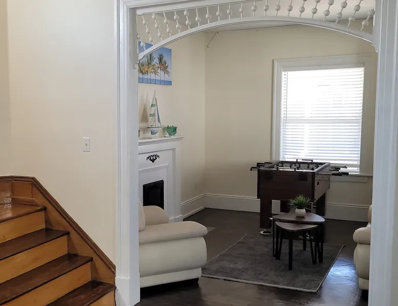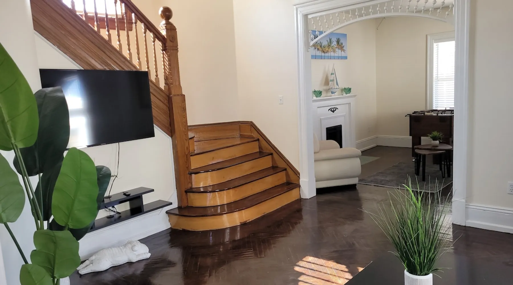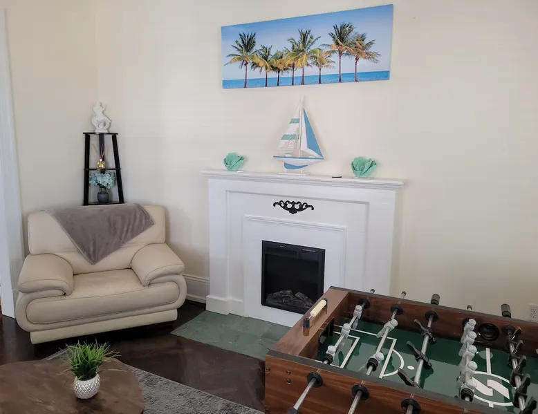 Relax in this spectacular & peaceful home, located in the desirable Atlantic City Inlet area. This spacious 4 bedroom, 3-bath home is in the perfect location for families; steps to the Boardwalk, close to beaches, mins to Gardner's Basin & surrounded by the ocean breeze. Sit outside on the deck with views of the boardwalk & ocean. Enjoy the tastefully designed grand home which includes ample living space, a foosball table, 3 TV’s & a well-stocked kitchen. Welcome to your "Easy Time" getaway! The space Enjoy this alluring and picturesque home that is full of character and wonderful amenities all while being in a marvelous location, just a stroll away from the boardwalk and ocean. **MAIN LEVEL: SITTING ROOM: Includes a couch, comfy chair and a fun foosball table LIVING ROOM: Includes a couch and a smart TV for viewing pleasure (No cable, just streaming apps) DINING AREA: Table for 6-8 people KITCHEN: Well stocked with all appliances FULL BATHROOM: with stand up shower EXTERIOR: There is a large porch in the front of the home, and off of the kitchen is a back deck with outdoor seating and a charcoal grill. (Please be advised that we do not supply charcoal or lighter fluid, guests must provide their own). **SECOND LEVEL: -All the bedrooms have ample clothing storage and cozy linens. MASTER BEDROOM: 1 Queen Sized bed, a smart TV & an en suite master bath which features a double vanity, a tub and a stand up shower BEDROOM 2: 1 Queen Sized bed BATHROOM: Full Bathroom in hallway **THIRD LEVEL: BEDROOM 3: 1 Queen Sized bed BEDROOM 4: 1 Queen Sized bed LOUNGE ROOM: Includes sectional sofa and smart TV BOOK WITH US and unlock discounts and special offers exclusive to Cozy Cohost guests. Take advantage of all that Atlantic City has to offer and enjoy savings at top local spots including famous restaurants, night clubs, spas, coffee shops, distilleries, breweries, boat tours, bike rentals, mini golf, and more... Guest access ACCESS: -Guests will have access the entire home, front patio and back deck. -Please note there is a studio apartment on the ground level. -There is no access between the units, and the property has it's own private entrance. -There is a flight of stairs to enter, stairs to the second floor and stairs to the third floor. -There is also a flight of stairs from the deck to the backyard. -Please be respectful to the neighbors and the surrounding homes and businesses. -Please note that check-out time is promptly at 11:00 AM. Failure to check out by this time may result in a $100 fee per hour. We appreciate your cooperation in ensuring a smooth transition for our next guests. Thank you for your understanding! ENTRY: -There is a lockbox with a key on the front door for your access. -Your host will provide you with the code approximately one hour prior to check in the day of your trip. PARKING: -There is no driveway or designated parking area. -Guests may park directly in front of the home or across the street where available. -Guests are responsible for city street parking compliance; read & follow signage to avoid parking tickets. MAIL: -Please do not ship items to the property. -If there is something of priority that you need shipped please reach out to us directly for alternative options. -We are not responsible for any items shipped to the property. ENVIRONMENTAL NOTES: -Property located in a city environment; potential for noise from cars or foot traffic. SECURITY: -The home is protected by exterior ring camera security. Other things to note HONESTY & EXPECTATIONS: At "Easy Time Estate", we want our guests to have a clear understanding of the distinctions between vacation rentals and hotels. While we diligently maintain our properties, wear and tear are inherent aspects of vacation rentals. Although we address issues promptly, the high volume of guests may result in occasional delays between stays. Any significant damage or serious concerns are prioritized and resolved before a guest's check-in, provided we are made aware of the issue. CLEANING: Our dedicated cleaning team meticulously sanitizes and cleans each home. Unlike standard hotel rooms, homes entail a more detailed cleaning process due to their larger size. Despite our team's efforts to ensure optimal cleanliness, minor oversights may occur. For substantial errors, we are committed to rectifying the situation promptly. While we take pride in our cleaning standards, we ask for understanding that, as in any human endeavor, perfection is not always attainable, especially when minor details have no direct impact on your stay. HOUSEHOLD ITEMS: As private residences, it's important to recognize that household items may break or require repairs during your stay. While we understand the inconvenience this may pose to our guests, it's equally disruptive for us. Appliances such as water tanks, HVAC systems, dishwashers, and refrigerators may experience issues. We cannot guarantee immunity from such occurrences, but we pledge to address and resolve any situation swiftly. While we assure our commitment to guests' well-being, we're honest about the potential for unforeseen issues. AMENITIES: -WiFi included; exterior ring camera security for added safety. -Linens, towels, and basic amenities provided. -Guests must purchase their own amenities when stock runs out. -No laundry detergent is provided. -Basic cookware supplies; no salt, pepper, oil, or kitchen condiments. RESERVATION/CANCELLATION NOTES: -If your dates are booked, please ask about our other listings. -Changing reservation dates or guest quantity may incur additional fees. -Rates/prices subject to change based on reservation adjustments. -Guests may request to change booking dates up to 14 days before check-in, subject to availability and possible rate differences. Within 14 days, date changes are not guaranteed and may be treated as a cancellation. -Cancellation policy WILL apply if reservation is cancelled. Please review before booking. -Airbnb Trip Protection suggested f