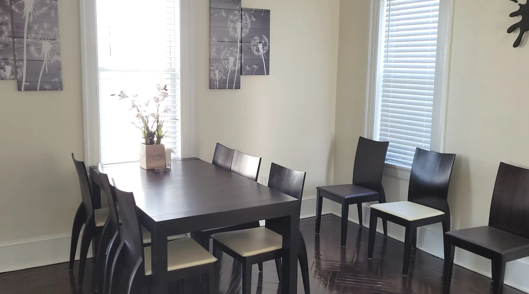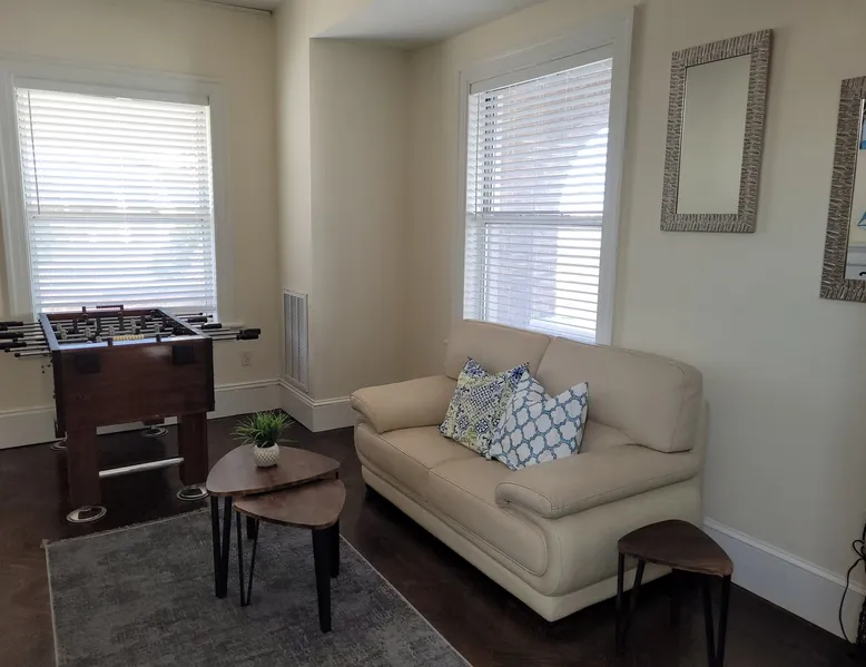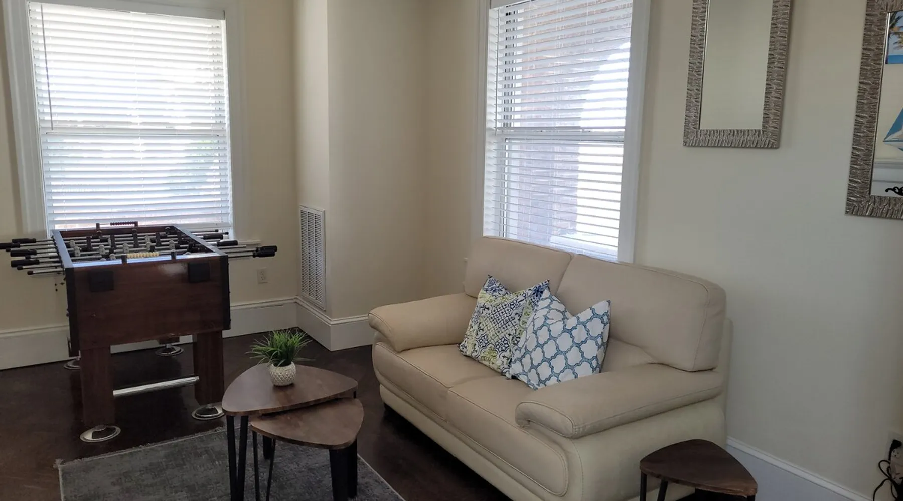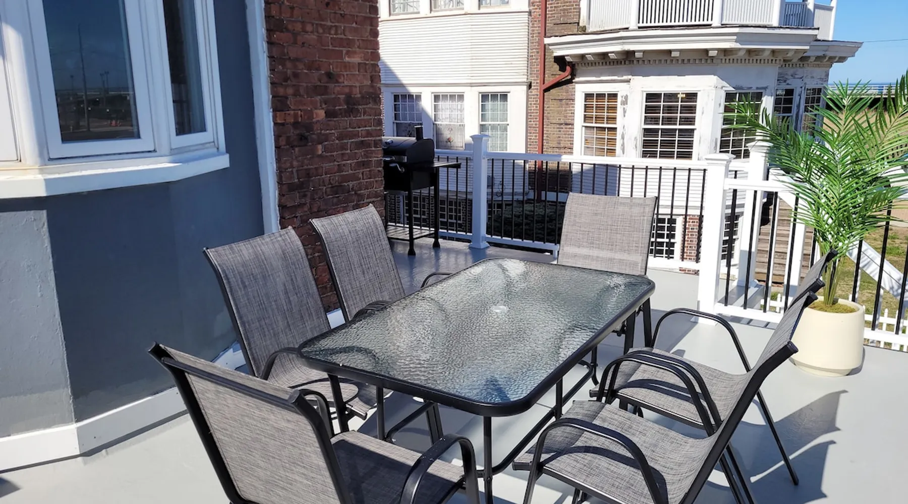 Relax in this spectacular & peaceful home, located in the desirable Atlantic City Inlet area. This spacious 4 bedroom, 3-bath home is in the perfect location for families; steps to the Boardwalk, close to beaches, mins to Gardner's Basin & surrounded by the ocean breeze. Sit outside on the deck with views of the boardwalk & ocean. Enjoy the tastefully designed grand home which includes ample living space, a foosball table, 3 TV’s & a well-stocked kitchen. Welcome to your "Easy Time" getaway! The space Enjoy this alluring and picturesque home that is full of character and wonderful amenities all while being in a marvelous location, just a stroll away from the boardwalk and ocean. **MAIN LEVEL: SITTING ROOM: Includes a couch, comfy chair and a fun foosball table LIVING ROOM: Includes a couch and a smart TV for viewing pleasure (No cable, just streaming apps) DINING AREA: Table for 6-8 people KITCHEN: Well stocked with all appliances FULL BATHROOM: with stand up shower EXTERIOR: There is a large porch in the front of the home, and off of the kitchen is a back deck with outdoor seating and a charcoal grill. (Please be advised that we do not supply charcoal or lighter fluid, guests must provide their own). **SECOND LEVEL: -All the bedrooms have ample clothing storage and cozy linens. MASTER BEDROOM: 1 Queen Sized bed, a smart TV & an en suite master bath which features a double vanity, a tub and a stand up shower BEDROOM 2: 1 Queen Sized bed BATHROOM: Full Bathroom in hallway **THIRD LEVEL: BEDROOM 3: 1 Queen Sized bed BEDROOM 4: 1 Queen Sized bed LOUNGE ROOM: Includes sectional sofa and smart TV BOOK WITH US and unlock discounts and special offers exclusive to Cozy Cohost guests. Take advantage of all that Atlantic City has to offer and enjoy savings at top local spots including famous restaurants, night clubs, spas, coffee shops, distilleries, breweries, boat tours, bike rentals, mini golf, and more... Guest access ACCESS: -Guests will have access the entire home, front patio and back deck. -Please note there is a studio apartment on the ground level. -There is no access between the units, and the property has it's own private entrance. -There is a flight of stairs to enter, stairs to the second floor and stairs to the third floor. -There is also a flight of stairs from the deck to the backyard. -Please be respectful to the neighbors and the surrounding homes and businesses. -Please note that check-out time is promptly at 11:00 AM. Failure to check out by this time may result in a $100 fee per hour. We appreciate your cooperation in ensuring a smooth transition for our next guests. Thank you for your understanding! ENTRY: -There is a lockbox with a key on the front door for your access. -Your host will provide you with the code approximately one hour prior to check in the day of your trip. PARKING: -There is no driveway or designated parking area. -Guests may park directly in front of the home or across the street where available. -Guests are responsible for city street parking compliance; read & follow signage to avoid parking tickets. MAIL: -Please do not ship items to the property. -If there is something of priority that you need shipped please reach out to us directly for alternative options. -We are not responsible for any items shipped to the property. ENVIRONMENTAL NOTES: -Property located in a city environment; potential for noise from cars or foot traffic. SECURITY: -The home is protected by exterior ring camera security. Other things to note HONESTY & EXPECTATIONS: At "Easy Time Estate", we want our guests to have a clear understanding of the distinctions between vacation rentals and hotels. While we diligently maintain our properties, wear and tear are inherent aspects of vacation rentals. Although we address issues promptly, the high volume of guests may result in occasional delays between stays. Any significant damage or serious concerns are prioritized and resolved before a guest's check-in, provided we are made aware of the issue. CLEANING: Our dedicated cleaning team meticulously sanitizes and cleans each home. Unlike standard hotel rooms, homes entail a more detailed cleaning process due to their larger size. Despite our team's efforts to ensure optimal cleanliness, minor oversights may occur. For substantial errors, we are committed to rectifying the situation promptly. While we take pride in our cleaning standards, we ask for understanding that, as in any human endeavor, perfection is not always attainable, especially when minor details have no direct impact on your stay. HOUSEHOLD ITEMS: As private residences, it's important to recognize that household items may break or require repairs during your stay. While we understand the inconvenience this may pose to our guests, it's equally disruptive for us. Appliances such as water tanks, HVAC systems, dishwashers, and refrigerators may experience issues. We cannot guarantee immunity from such occurrences, but we pledge to address and resolve any situation swiftly. While we assure our commitment to guests' well-being, we're honest about the potential for unforeseen issues. AMENITIES: -WiFi included; exterior ring camera security for added safety. -Linens, towels, and basic amenities provided. -Guests must purchase their own amenities when stock runs out. -No laundry detergent is provided. -Basic cookware supplies; no salt, pepper, oil, or kitchen condiments. RESERVATION/CANCELLATION NOTES: -If your dates are booked, please ask about our other listings. -Changing reservation dates or guest quantity may incur additional fees. -Rates/prices subject to change based on reservation adjustments. -Guests may request to change booking dates up to 14 days before check-in, subject to availability and possible rate differences. Within 14 days, date changes are not guaranteed and may be treated as a cancellation. -Cancellation policy WILL apply if reservation is cancelled. Please review before booking. -Airbnb Trip Protection suggested f