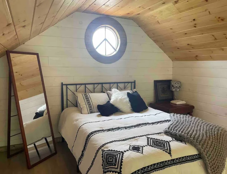 This playful treehouse cabin provides amazing views with a cantilevered design and large windows overlooking the grounds of Lambert's Winery. Taste, tour and explore the winery grounds in this playful & unforgettable loft! The "Hang-over" is one of three rental cabins on the property and features a spiral tree staircase built from naturally resourced materials on the winery grounds, a loft bedroom, covered outdoor space, interior swings and amazing views! The space Queen Bed in Loft Sleeper Sofa in living room on main level. Kitchen: • Hot Plate with pots, pans, basic cooking utensils • Coffee Pot in Rose’, Keurig in Cabernet & Hang-over • Mini Fridge/Freezer • Microwave • Plates, cups, silverware • Outdoor gas grill Bedroom & Bathroom: • All towels and linens provided Other: • Smart TV- guests must use their own streaming service log-in to access programming Guest access Private Cabin, full access to cabin & full access to explore grounds of winery Other things to note With the unique spiral staircase leading up to the loft bedroom and the wide rails, for safety, this cabin is not recommended for young children or small animals.