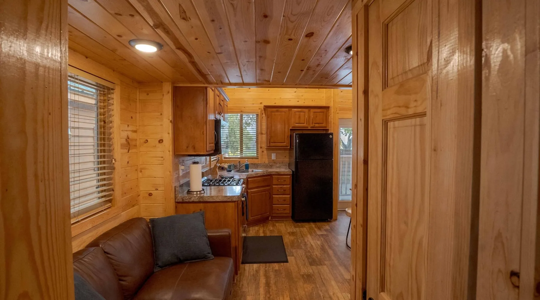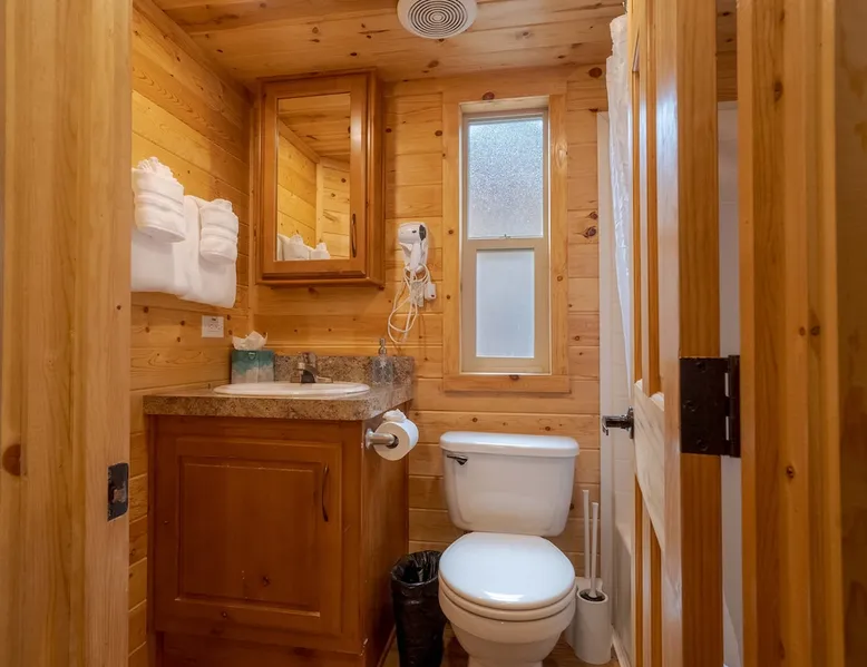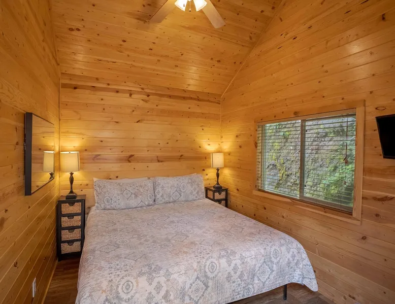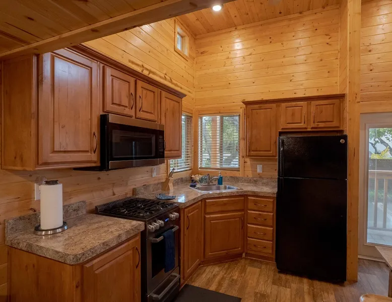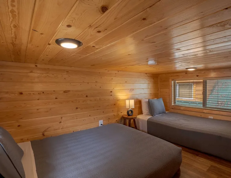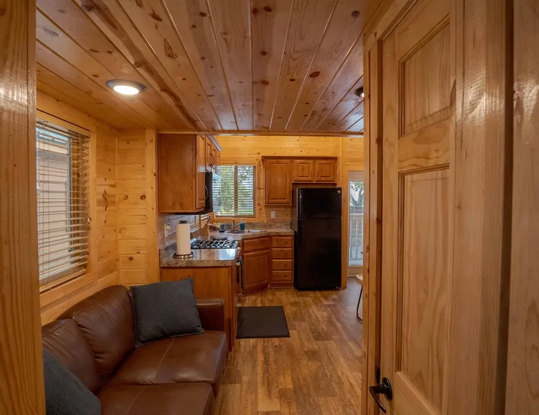 Tiny home-style cabin with one king bed in the lower bedroom and a low-ceiling loft (4–5 ft height) with one double and one single bed. Includes a fully stocked kitchen with a full-size refrigerator, utensils, and a propane BBQ grill. Full bathroom with a shower/tub combo. Sleeps 2–5. Up to 2 pets allowed for an added fee, confirm before check-in date *This cabin is smoke-free* The space Saddle Mountain Ranch, RV Park and Campground is located on 89 acres of forest land off Carmel Valley Road, just 5 miles from HWY 1. Only 7.8 miles from lovely Carmel Beach with its white sands; and 8.5 miles from Point Lobos State Natural Reserve in Big Sur. Other things to note All of our cabins and RV sites are grouped into 2 locations at our campground. Cabins and RV sites are on average 6-12’ apart. This cabin rental includes parking for 1 car. If more cars need to be parked, a parking permit may be obtained at the front desk for $30, 1 additional vehicle max. This cabin does not have allocated parking in front of the cabin and it will require you to park 1-3 minute walk from the cabin. This cabin rental base price includes 4 people, additional people are billed at $15 per adult and $10 per child per night on top of the base price. Please note, this cabin has a low ceiling loft of 4-5ft in total height. The park is an eco-friendly resort and mindful of the beauty that surrounds us. To that end, each cabin is stocked with enough bath towels for the number of guests booked. No pool towels are provided, we recommend bringing your own. On site seasonally heated pool (mid May through Oct), private hiking trail, playground, ping pong table and more. No refund for inclement weather during the Winter months. Complementary WIFI is available at our WIFI decks only. Check-in hours: 3pm - 6pm (assisted, office check-in) 6pm-8pm (self check-in) __ *Please continue reviewing/monitoring California Travel guidelines as they may change and affect your reservation*