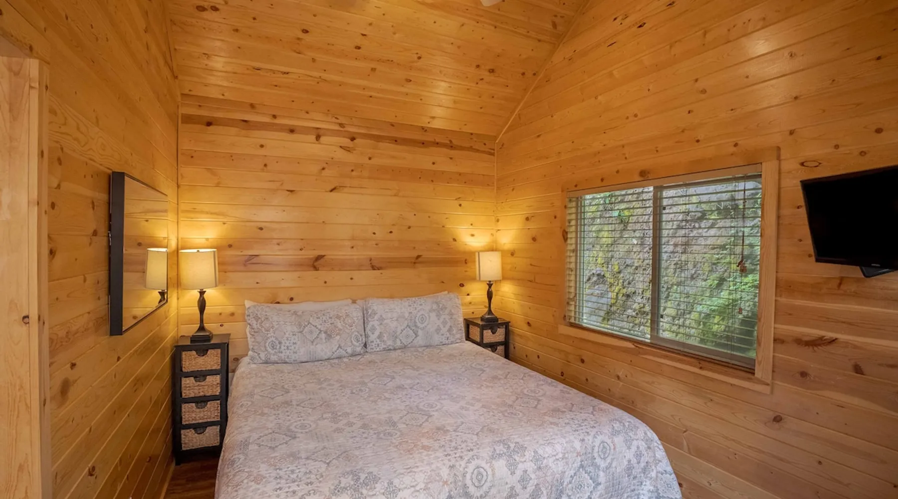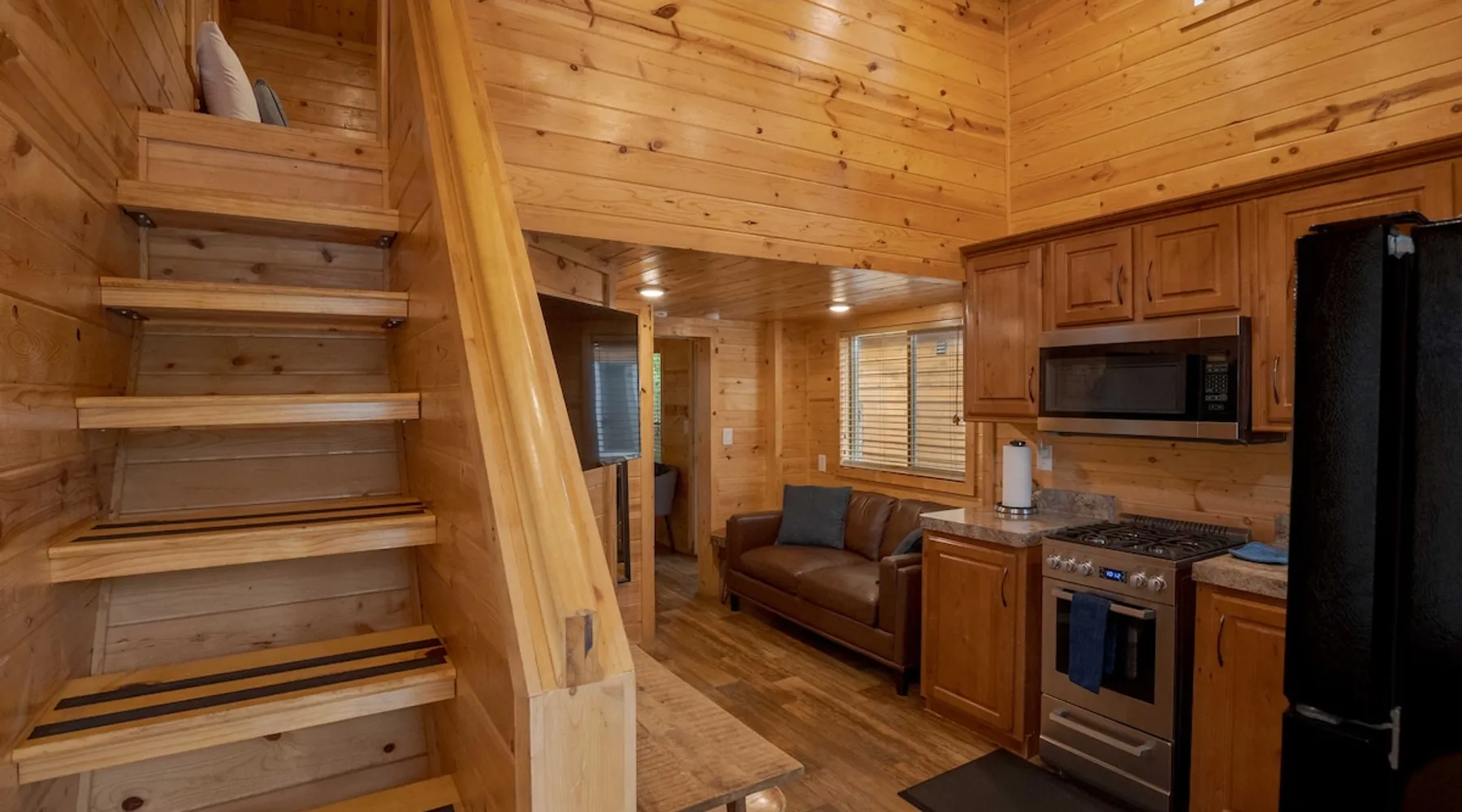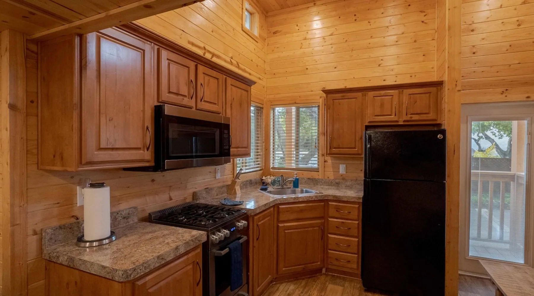 Tiny home-style cabin with one king bed in the lower bedroom and a low-ceiling loft (4–5 ft height) with one double and one single bed. Includes a fully stocked kitchen with a full-size refrigerator, utensils, and a propane BBQ grill. Full bathroom with a shower/tub combo. Sleeps 2–5. Up to 2 pets allowed for an added fee, confirm before check-in date *This cabin is smoke-free* The space Saddle Mountain Ranch, RV Park and Campground is located on 89 acres of forest land off Carmel Valley Road, just 5 miles from HWY 1. Only 7.8 miles from lovely Carmel Beach with its white sands; and 8.5 miles from Point Lobos State Natural Reserve in Big Sur. Other things to note All of our cabins and RV sites are grouped into 2 locations at our campground. Cabins and RV sites are on average 6-12’ apart. This cabin rental includes parking for 1 car. If more cars need to be parked, a parking permit may be obtained at the front desk for $30, 1 additional vehicle max. This cabin does not have allocated parking in front of the cabin and it will require you to park 1-3 minute walk from the cabin. This cabin rental base price includes 4 people, additional people are billed at $15 per adult and $10 per child per night on top of the base price. Please note, this cabin has a low ceiling loft of 4-5ft in total height. The park is an eco-friendly resort and mindful of the beauty that surrounds us. To that end, each cabin is stocked with enough bath towels for the number of guests booked. No pool towels are provided, we recommend bringing your own. On site seasonally heated pool (mid May through Oct), private hiking trail, playground, ping pong table and more. No refund for inclement weather during the Winter months. Complementary WIFI is available at our WIFI decks only. Check-in hours: 3pm - 6pm (assisted, office check-in) 6pm-8pm (self check-in) __ *Please continue reviewing/monitoring California Travel guidelines as they may change and affect your reservation*