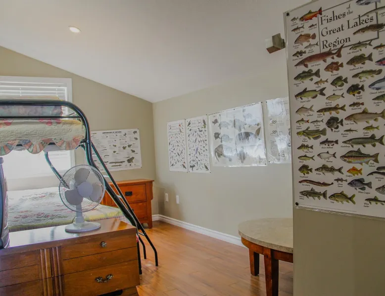 Fully licensed Short term rental. This is a quiet area intended for families. Built in 2011 - boasts 2750 square feet with 5 large bedrooms and 2 full bathrooms, 3 flat screen TV's, complete with an open area loft for entertaining. Large loft complete with 2 large sofas, propane fireplace, ping pong and Foosball tables. Large full kitchen and dining area. 20 minutes to Tobermory and 15 mins to Lions Head. Small community natural water access and public boat launch less than 5 mins walk The space I have 3 extra large bedrooms on the 2000 square foot main floor along with a large kitchen and dining area that will accommodate several guests. There is a propane fireplace, full size fridge and a beer/drink fridge with a freezer and a flat screen TV in the grand hall. In the loft we have 2 bedrooms and a 500 square foot recreational room complete with ping pong table, Foosball table, propane fireplace, flat screen TV and a balcony looking over the serene Fen with it's Bruce wilderness and awesome stars. There are 2 pack n' plays and a high chair. The bedrooms are set up as follows: Master - 1 king bed (attached full bathroom) Main floor - 1 queen bed Main floor - 1 queen bed and 1 double Top floor - 2 queen beds Top floor - bunk bed (double bottom and single top) 2 pack n' play Guest access complete house except 3 closet Other things to note !!PLEASE READ BEFORE BOOKING!! 10 guest max Please note there is to be no more than ten guests, including children at the house at any one time( infants don't count). Any more than this is a violation of local by law insurance and fire safety. If more guests are discovered than are in your booking request, you will be removed from the property with no refund, and your deposit will be kept. I'm sorry this is nothing personal. This is due to past guests' poor behavior and new local bylaws. thank you for your understanding. !!PETS!! NOT SUITABLE FOR ALL PETS guest must reach out to me about pets prior to booking. some rules and warnings about pets. This is the country, and the property has no fences. There are coyotes, foxes, wolves, venomous snakes, owls, and birds of prey that all don't have issues and have a history of taking small dogs in the area. The pet is also not allowed on any of the furniture for any reason whatsoever, even if it's in your lap. The pet is not allowed in the tubs, so if the pet gets muddy, there is a hose outside. Hair must be thoroughly cleaned for allergen and sanitation reasons. The yard must be cleaned of all droppings. Also, the property behind the house is a Fen wetland. It is an ecologically protected zone. There are some endangered species of frogs breeding there. pets are not allowed to run free in that wetland. If you are okay with these rules and can follow them, I have no issues with your pet. Thank you for your understanding Note for Winter Bookings: driveway main pathways and doorways are cleared of snow. decks BBQ area Etc are not clear of snow. Always be aware of ice on the property. I can not guarantee if BBQ will be operational. I am local and will be able if needed. internet service I only rent to adults over 25 years old or families I do not have towels(I provide 14 pillows) I do provide 1 comforter per bed sheets and pillowcases. 2 pack n' plays There are many extra blankets and throws and 2 hand towels fully equipped kitchen - no dishwasher. microwave, dishes, pots/pans, cutlery, cooking utensils, drip coffee maker Internet, movies, board games, toy boxes propane BBQ fire pit