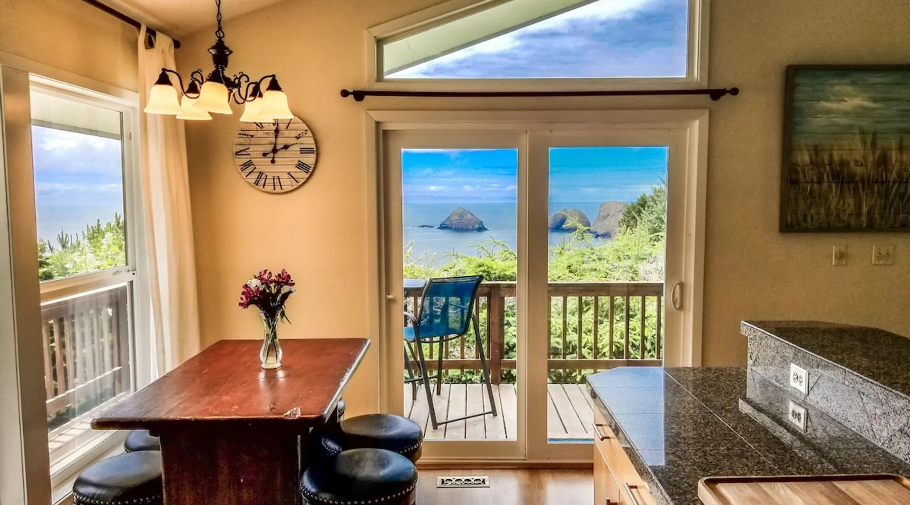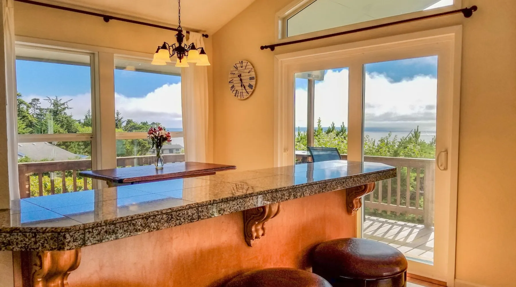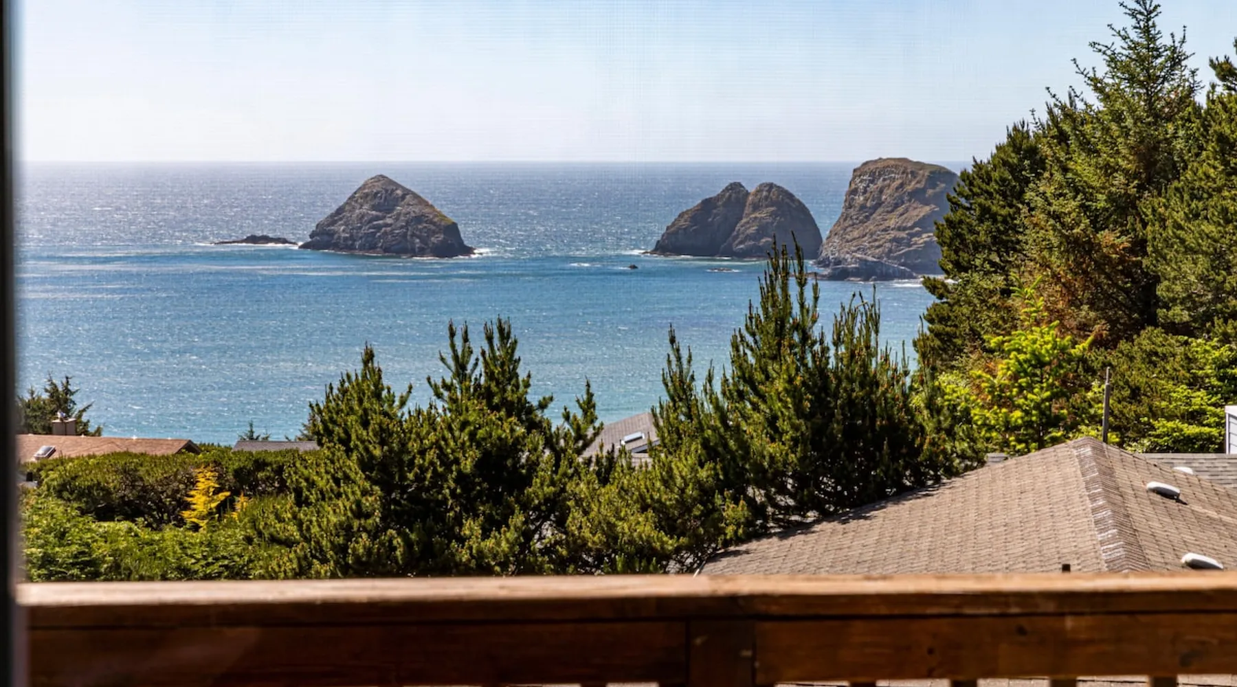 Ocean View home in a quiet neighborhood surrounded by trees in the peaceful town of Oceanside.3 bedrooms and 2 full bathrooms. Sleeps 8! The space Shore Thing Vacation Rentals is pleased to introduce 'Staring Contest', a beautiful family home that boasts stunning ocean views! Located in peaceful Oceanside Oregon, this home’s large glass doors open to a spacious deck that runs the length of the house, with plenty of room for everyone to relax and enjoy the beautiful view of the famed Three Arch Rocks. When you’re ready to explore the beach or go for a morning run, it's just a short 5 minute drive away. This house features 3 bedrooms: 2 bedrooms upstairs on the main floor, each with a queen-sized bed with a full bathroom located just outside the bedrooms. One bedroom downstairs with 2 sets of bunk beds and a full bathroom located right outside the door. The nicely appointed kitchen provides all the necessary tools for preparing tasty meals, and a gas BBQ is available to grill your fresh catch. You and your guests are sure to enjoy leisurely dinners while watching the sun set from the dining room table. When it’s time to stretch out and relax indoors, the comfortable living room is the perfect spot. Crank on the gas log fireplace for a warm, crackling fire and enjoy a movie on the flat screen smart TV and DVD player. This home is just a short drive to downtown Oceanside, where you’ll find 2 cafes and delicious Roseanna's Restaurant. Many hiking opportunities with picture-perfect vistas are nearby: Cape Lookout State Park, Cape Meares Lighthouse and Maxwell Mountain to name a few. Whether you're strolling along the beach, clamming nearby, catching a nap on the deck, or enjoying a fabulous coastal sunset every evening, this ocean view vacation rental surrounds you with serenity. This is perfect spot for a family getaway or a quiet trip with friends. ** Note: Up to 2 dogs are welcome to come! There is a $65 pet fee for the additional cleaning required after your departure. ** Note: Your nightly rate includes damage insurance should anything accidentally break or get ruined during your stay. ** Note: I send out a rental acknowledgment to sign electronically after a booking is made. It is very straightforward and simple, but if you would like a copy of the contract beforehand, just let me know! :-) Registration number: STVR#851-18-00062