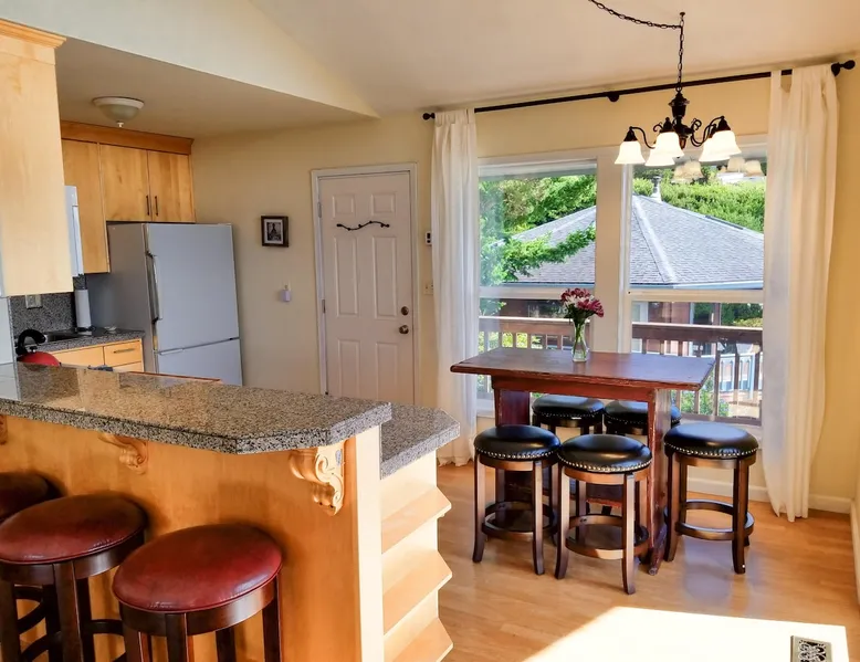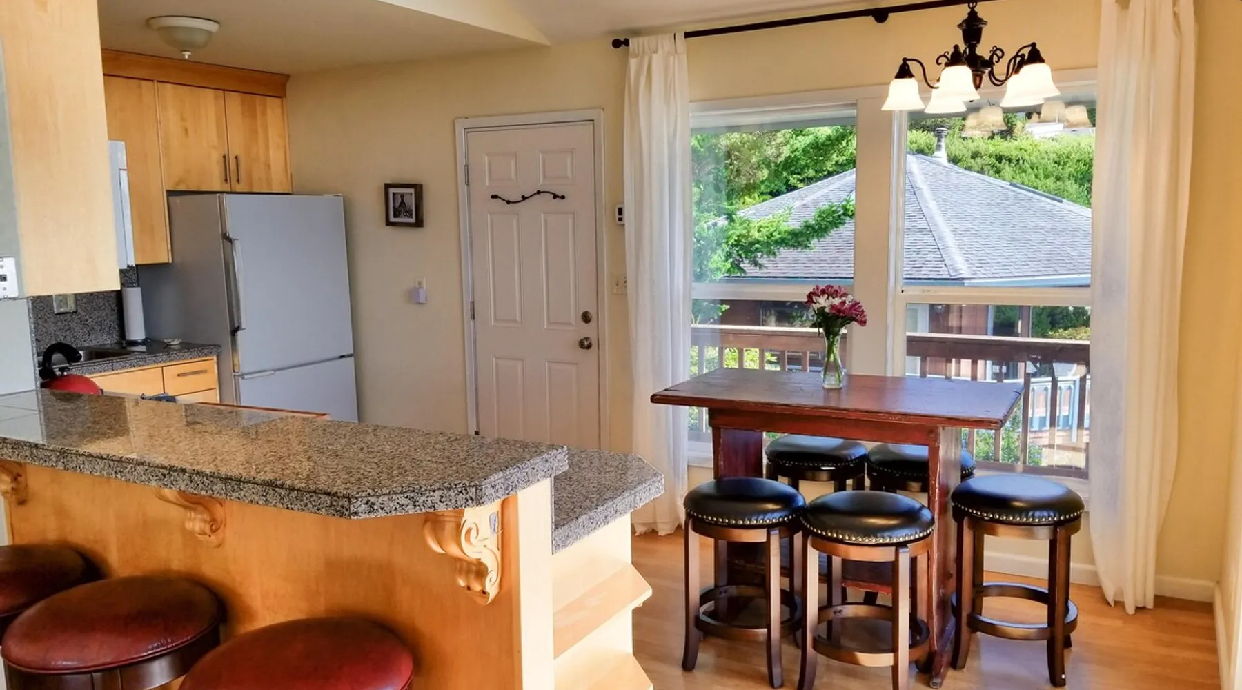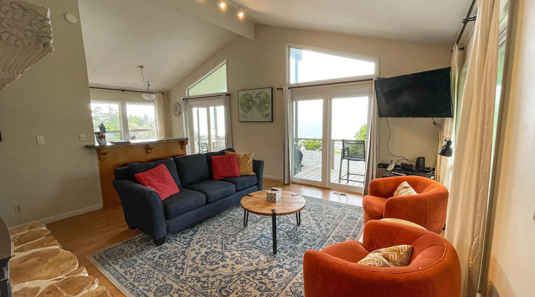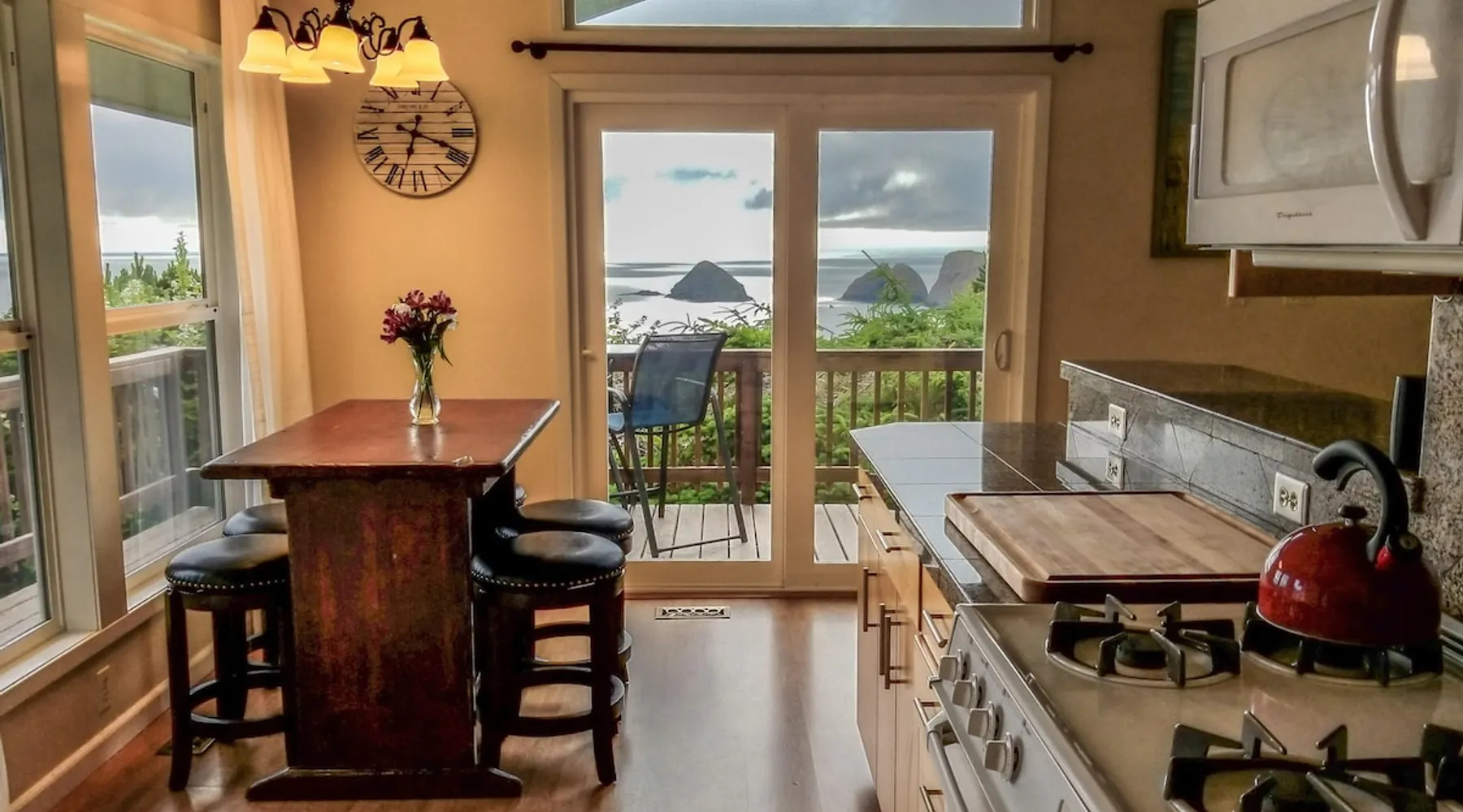 Ocean View home in a quiet neighborhood surrounded by trees in the peaceful town of Oceanside.3 bedrooms and 2 full bathrooms. Sleeps 8! The space Shore Thing Vacation Rentals is pleased to introduce 'Staring Contest', a beautiful family home that boasts stunning ocean views! Located in peaceful Oceanside Oregon, this home’s large glass doors open to a spacious deck that runs the length of the house, with plenty of room for everyone to relax and enjoy the beautiful view of the famed Three Arch Rocks. When you’re ready to explore the beach or go for a morning run, it's just a short 5 minute drive away. This house features 3 bedrooms: 2 bedrooms upstairs on the main floor, each with a queen-sized bed with a full bathroom located just outside the bedrooms. One bedroom downstairs with 2 sets of bunk beds and a full bathroom located right outside the door. The nicely appointed kitchen provides all the necessary tools for preparing tasty meals, and a gas BBQ is available to grill your fresh catch. You and your guests are sure to enjoy leisurely dinners while watching the sun set from the dining room table. When it’s time to stretch out and relax indoors, the comfortable living room is the perfect spot. Crank on the gas log fireplace for a warm, crackling fire and enjoy a movie on the flat screen smart TV and DVD player. This home is just a short drive to downtown Oceanside, where you’ll find 2 cafes and delicious Roseanna's Restaurant. Many hiking opportunities with picture-perfect vistas are nearby: Cape Lookout State Park, Cape Meares Lighthouse and Maxwell Mountain to name a few. Whether you're strolling along the beach, clamming nearby, catching a nap on the deck, or enjoying a fabulous coastal sunset every evening, this ocean view vacation rental surrounds you with serenity. This is perfect spot for a family getaway or a quiet trip with friends. ** Note: Up to 2 dogs are welcome to come! There is a $65 pet fee for the additional cleaning required after your departure. ** Note: Your nightly rate includes damage insurance should anything accidentally break or get ruined during your stay. ** Note: I send out a rental acknowledgment to sign electronically after a booking is made. It is very straightforward and simple, but if you would like a copy of the contract beforehand, just let me know! :-) Registration number: STVR#851-18-00062