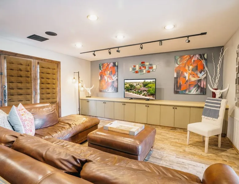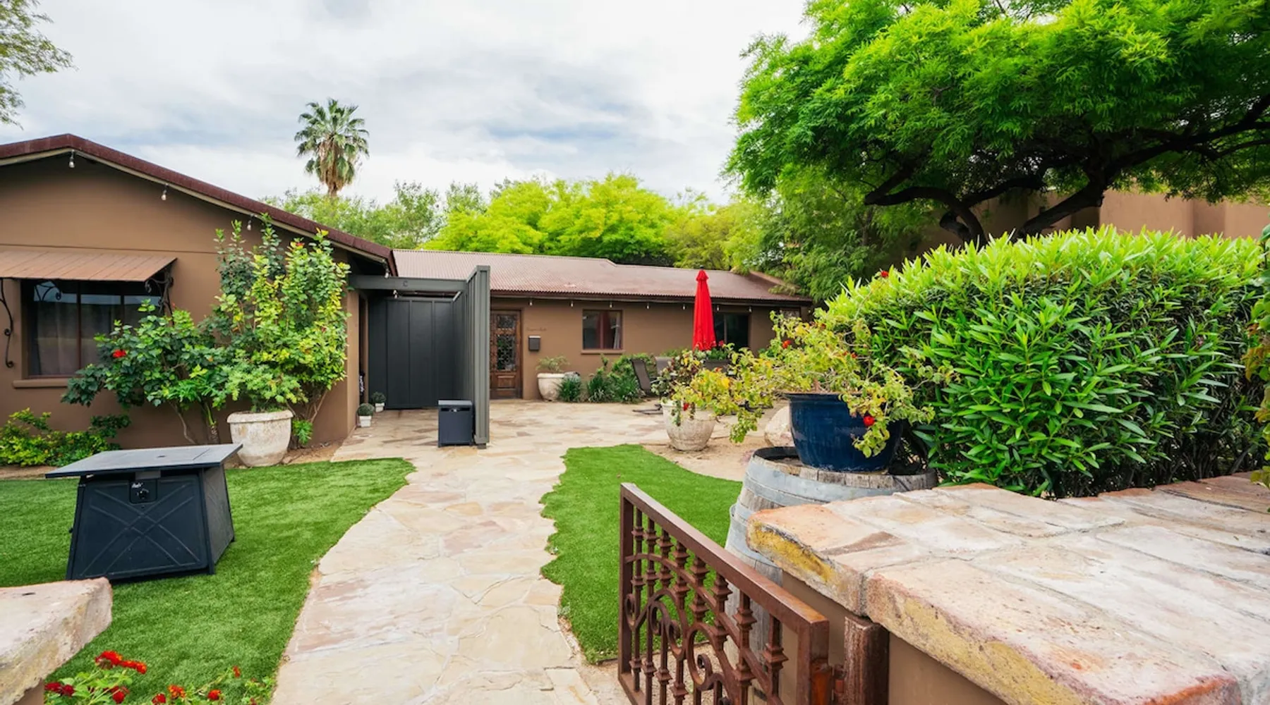 Our Old Town Scottsdale estate has 2 beautifully decorated Vintage homes (4 Vacation Rental Units) on the corner of 1st Street and Goldwater, located in the heart of Scottsdale’s Old Town Arts District. No need to rent a car! Short walk to Many Art Galleries, Shops, Restaurants, Breweries, Wineries and More! Each suite has a private entrance with a beautifully landscaped North facing patio. Access to the Scottsdale Trolley. Downtown main street is just 1 block North. The space Alo Cafe and Cornish Pasty Restaurant & Bar directly across the street! Short walk to the Farmers Market every Saturday during winter months. Walk or Trolley to Scottsdale Fashion Square Mall (All the top brand stores!) Suites professionally decorated in modern southwest décor. This is truly a one of a kind experience in the heart of Old Town Scottsdale - pack your bags and get ready to enjoy an unbelievably unique and amazing stay! ***This listing is part of our West Duplex home which has 2 separate units inside it. This listing you are viewing is for UNIT 3 "The Viognier" - (titled next to the door) of the West Duplex Home. You will receive a welcome message detailing how to enter. Sleeps: 6 Master Bedroom: 1 King Bed / Private office attached (TV) Bedroom 2: Queen Bed Galley Kitchen: with Fridge, Microwave, Stove and utensils to make a great meal! Family Rm/Dining Room: Large sectional with 50 in TV Hall Bath: ¾ Bath with Shower. Free Parking located on Property Living Area: 1109 sq. ft. Guest access Each suite has a private entrance with a door code you will use to enter the unit. This unit sits on the West side of the lot. Other things to note *Standard City of Scottsdale Disclosure Every Listing Must Include: - Non-residential uses, including retail, restaurant, banquet space, event center, or other similar use is prohibited. - All Dwelling units, including Vacation Rentals and Short term rentals shall have a maximum family size of 6 adults (and their related dependent children). - All Dwelling units and any accessory guest houses must be rented or offered for rent together, and may not be rented or offered for rent independently.