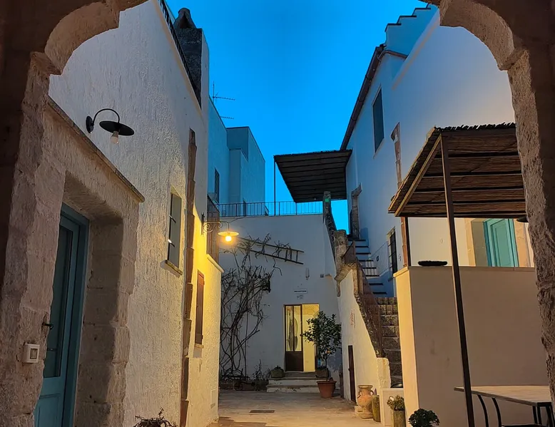 Located on the ground floor, it overlooks the inner courtyard. Suitable for 2/4 people. Very intimate and comfortable, with Salentine countertops on the ground and vaulted stone ceilings left in sight. It has a kitchen with induction stove, living room with sofa/double bed and 39 '' smart TV, room with double bed, closet and nightstands, bathroom with shower. A/C & heat, hot water with solar panels and safe. For outdoor lunch, common area near the swimming pool. Registration Details IT075078C200063010