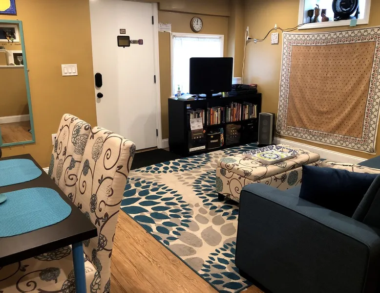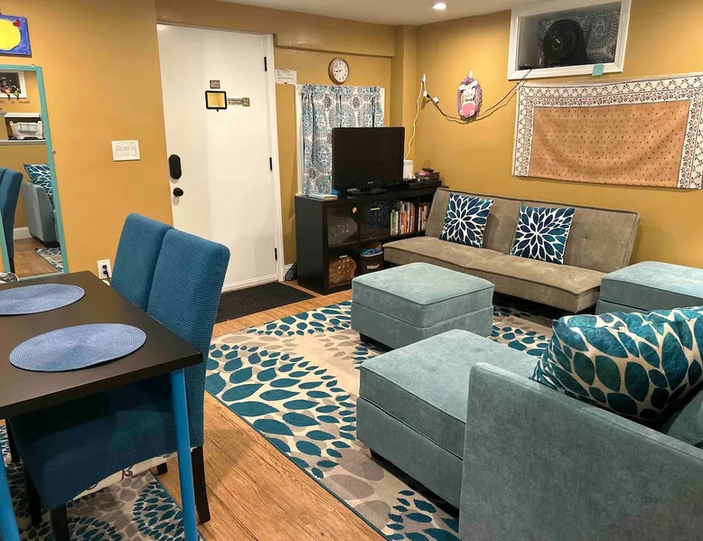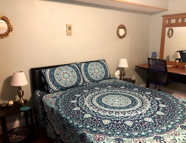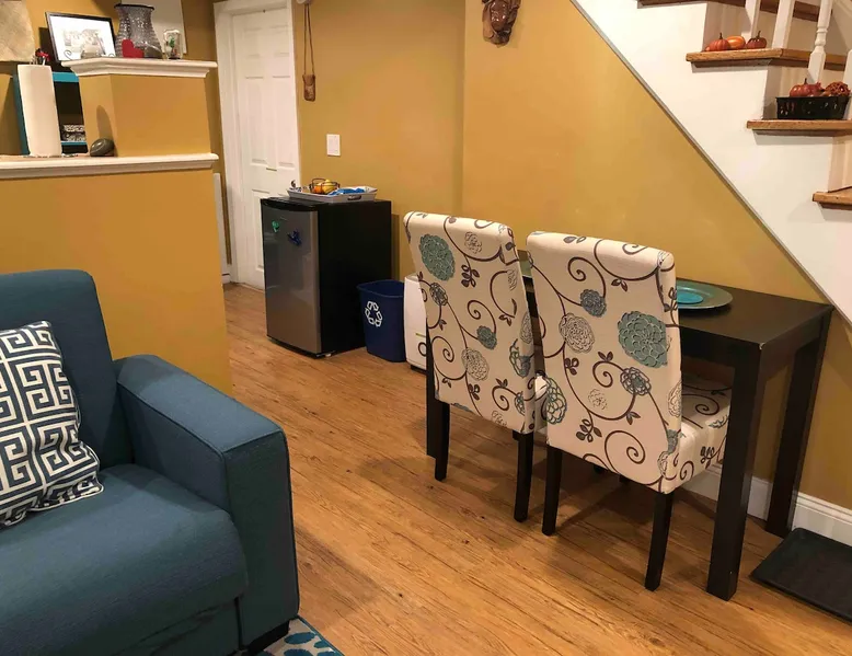 One bedroom unit, with a well decorated open space living room area. Queen bed and queen modular sofa and optional air bed. 15 miles from Logan Airport and located just .2 miles once you exit the highway. Convenient highway access to Boston, Foxboro Stadium, and Cape Cod. Short distance to the Blue Hills hiking trails, shopping mall, shopping centers, and restaurants. Few blocks walk to bus stop to access public transportation into Boston. A diverse community and family friendly! The space There is a small kitchenette with a microwave, electric skillet, rice cooker, mini-refrigerator, and a Keurig coffee maker. Living area features a queen size modular sofa, TV, desk/eating space. (Queen Aerobed also available). Bedroom has a queen bed and closet. There is a full bath with (short step-in) shower. The unit is in the basement of our home. The entrance faces the front of the home to the driveway where one parking space is available for guests. Please see (click) our photos and read their captions for additional information. Guest access The unit has a private entrance accessible by key coded lock for easy guest check-in. The hosts reside upstairs. This downstairs unit is not accessed during your stay. Other things to note The host family lives upstairs. This includes a dog and children so you may hear some play and chatter; the children are in bed relatively early. While they are well behaved, they are children and may be heard playing between dinner and bedtime. Sounds are typical of multi-level homes, though we have some sound-reducing measures. Please communicate any work-times or essential needs for quiet times so we can accommodate within reason.